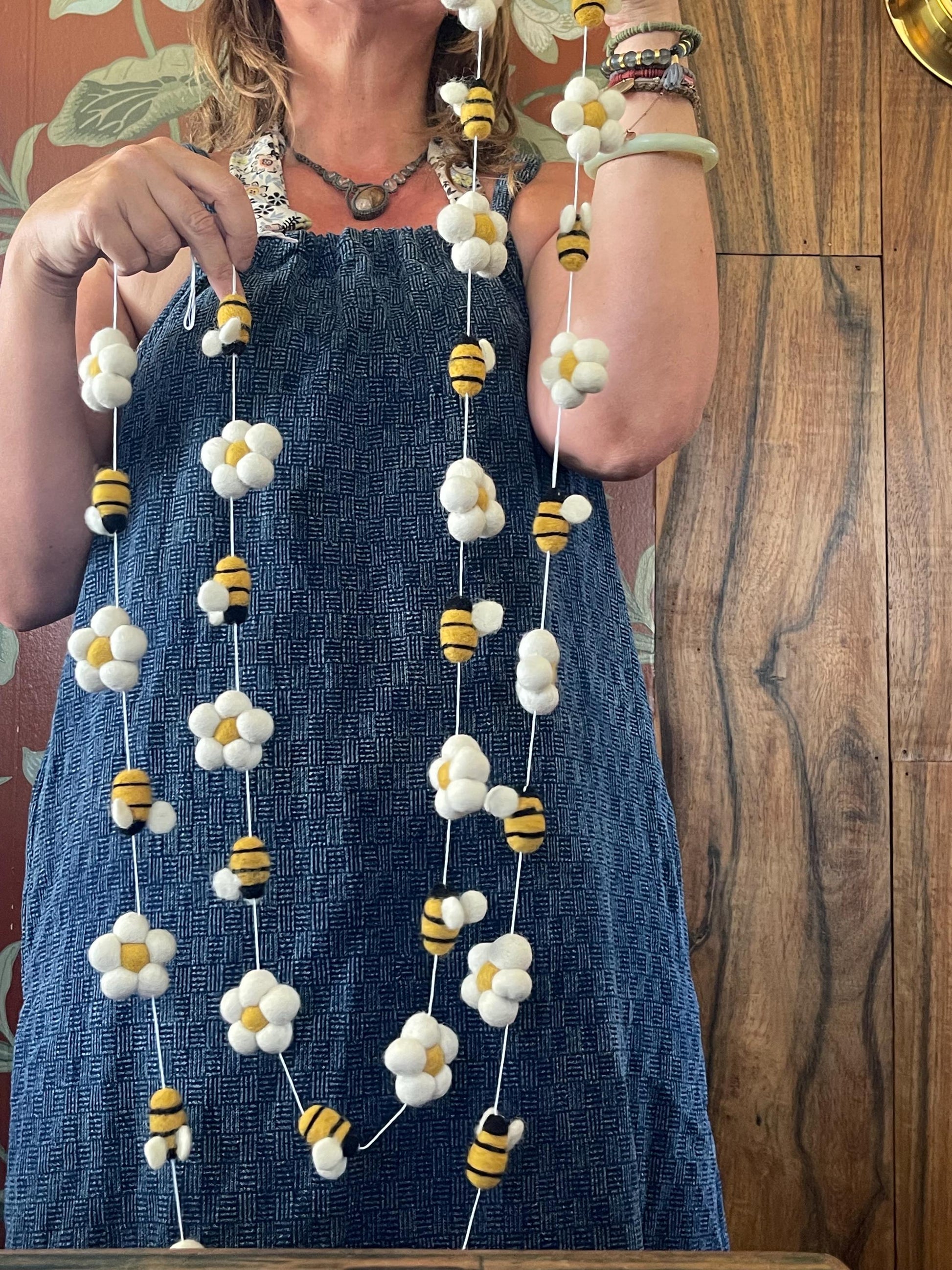 Bee garland for the home, garden, festivals, parties and weddings. Bee decorations. Flower garlands. Boho decorations for the home.