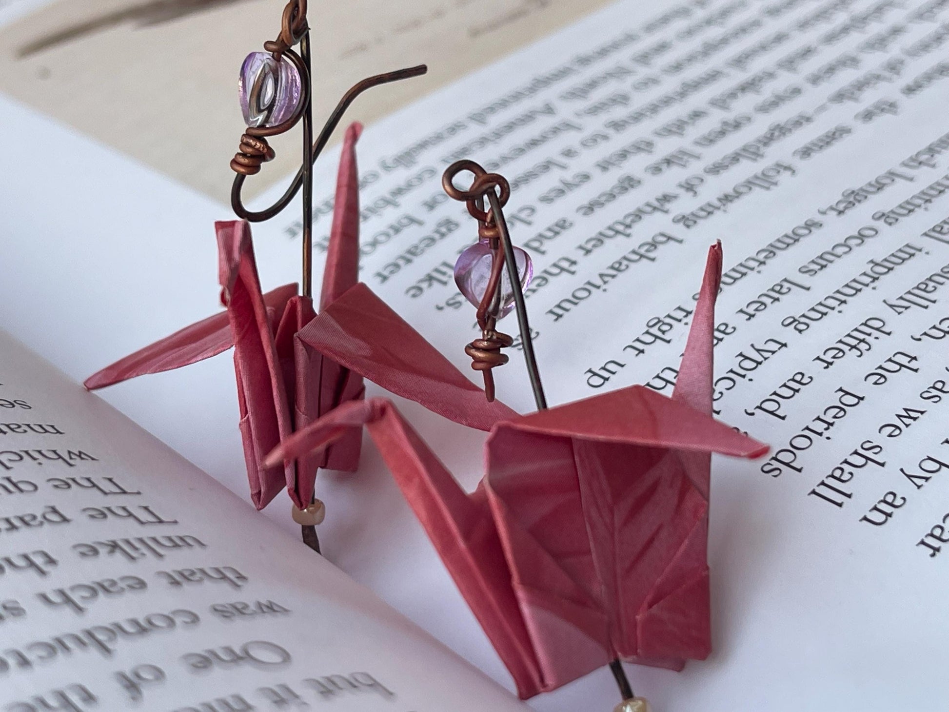 Bird origami earrings on recycled metals. Eco friendly jewellery. Bird earrings. Handmade bird jewellery. Pink birds. Ethical jewellery.