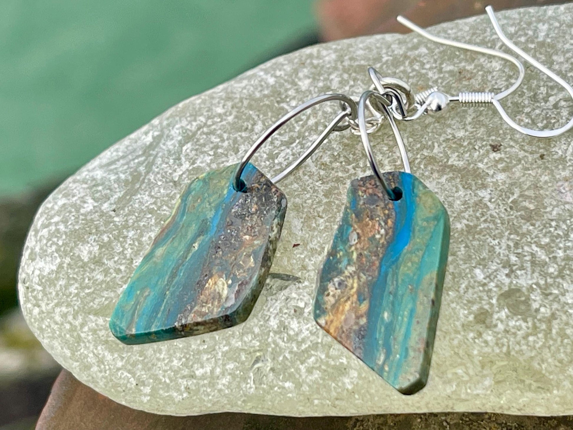 Blue opal nugget earrings on recycled sterling silver. Handmade unusual earrings. Boho earrings. Uniqie jewellery.