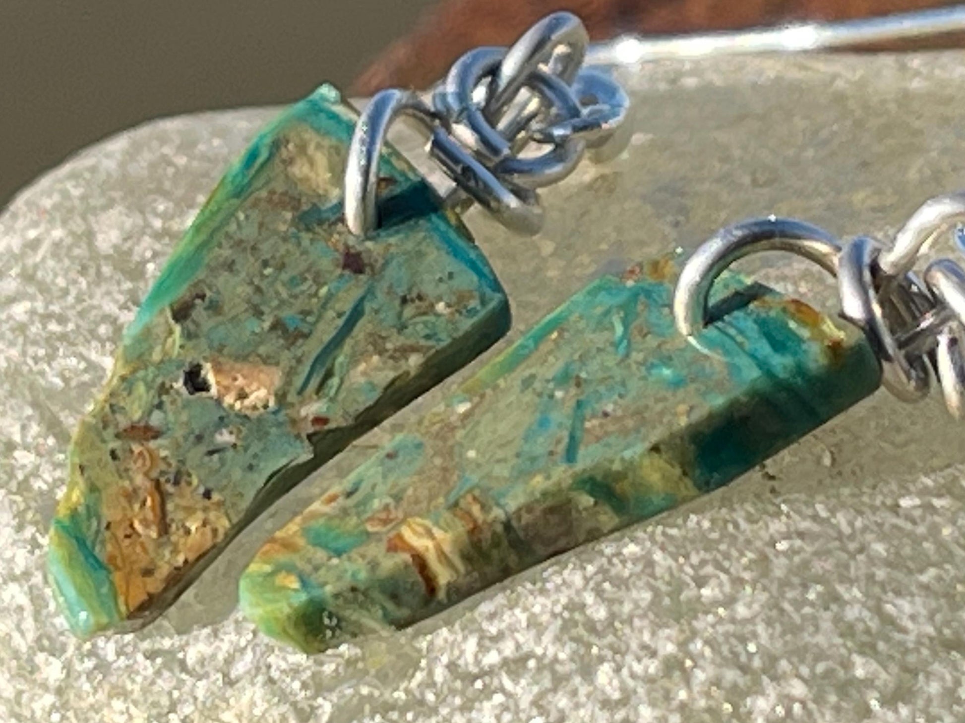 Blue opal nugget earrings on recycled sterling silver. Handmade unusual earrings. Boho earrings. Uniqie jewellery.