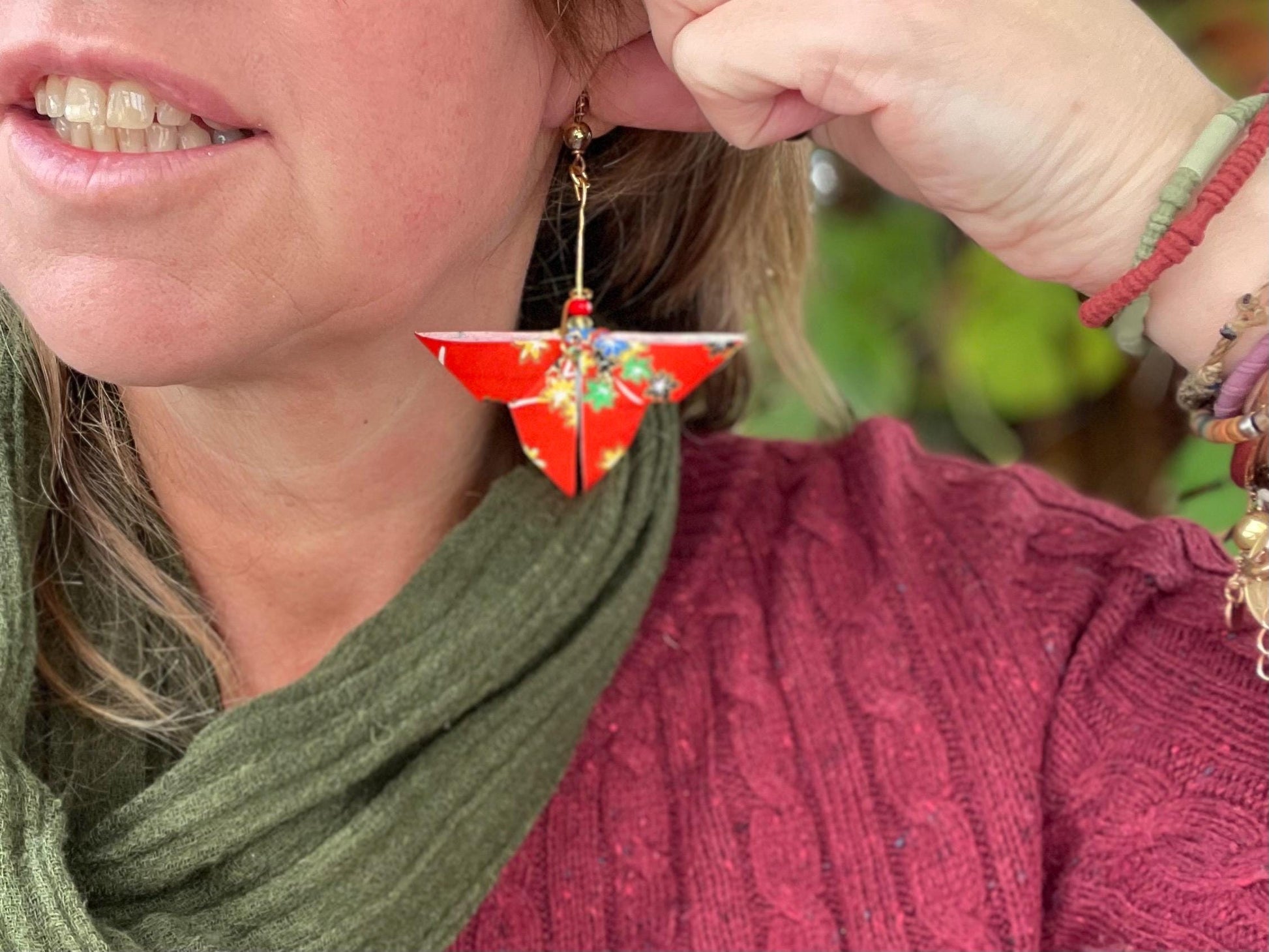 Butterfly origami earrings on recycled metals & vintage beading. Eco friendly jewellery. Butterfly earrings. Handmade butterfly jewellery.