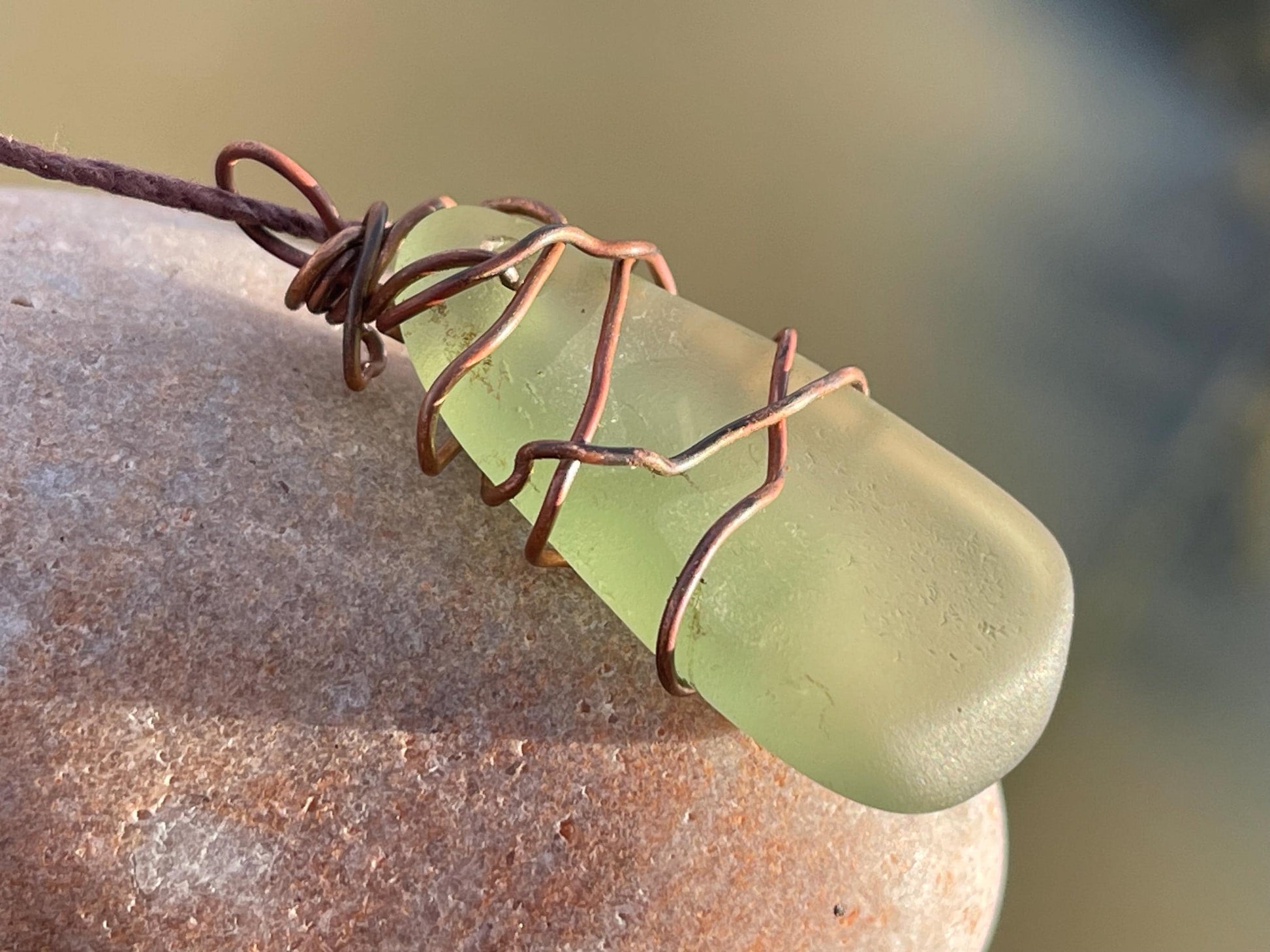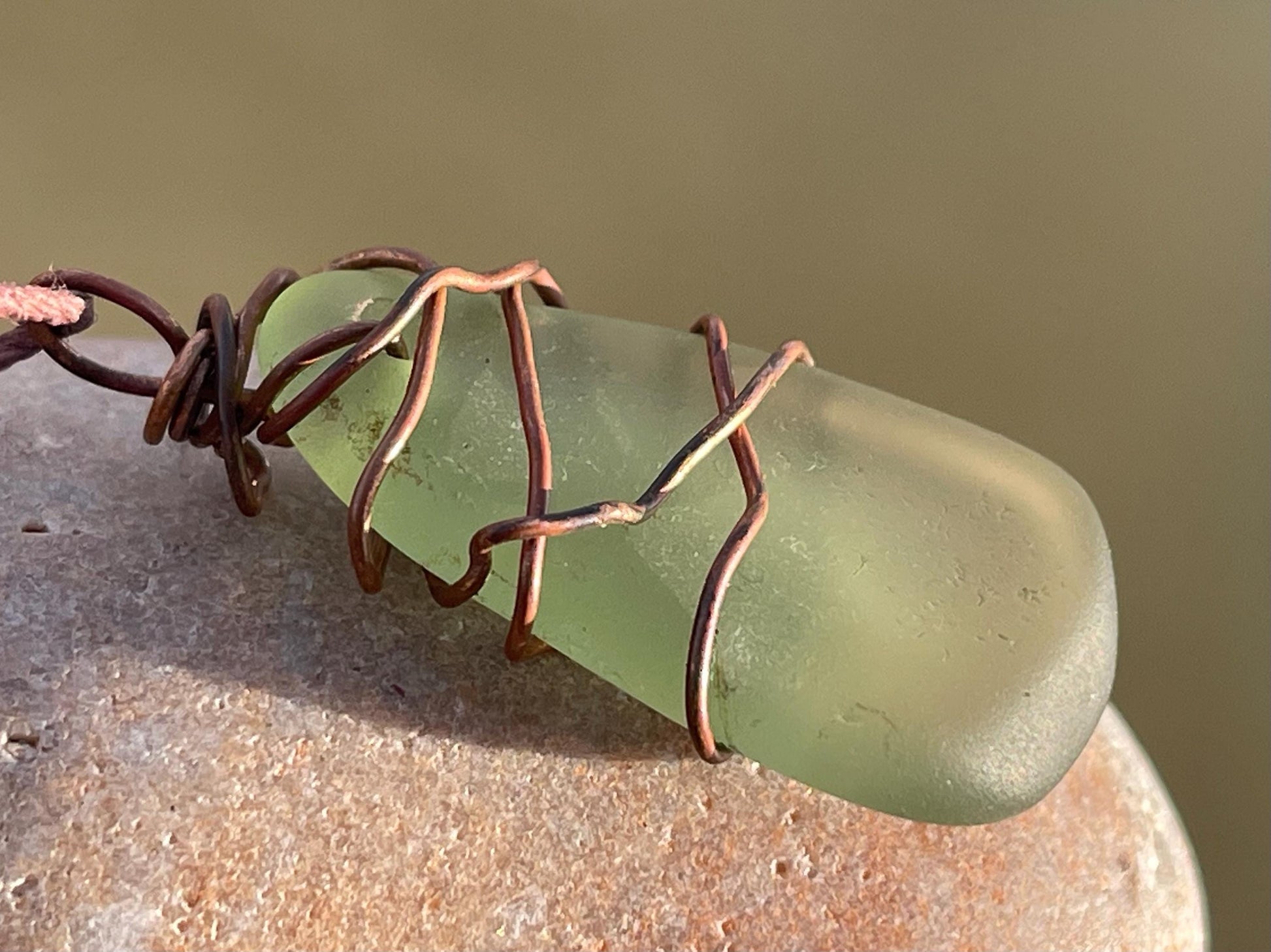 Rustic green sea glass necklace. Washed up on the beach and made into something new :)