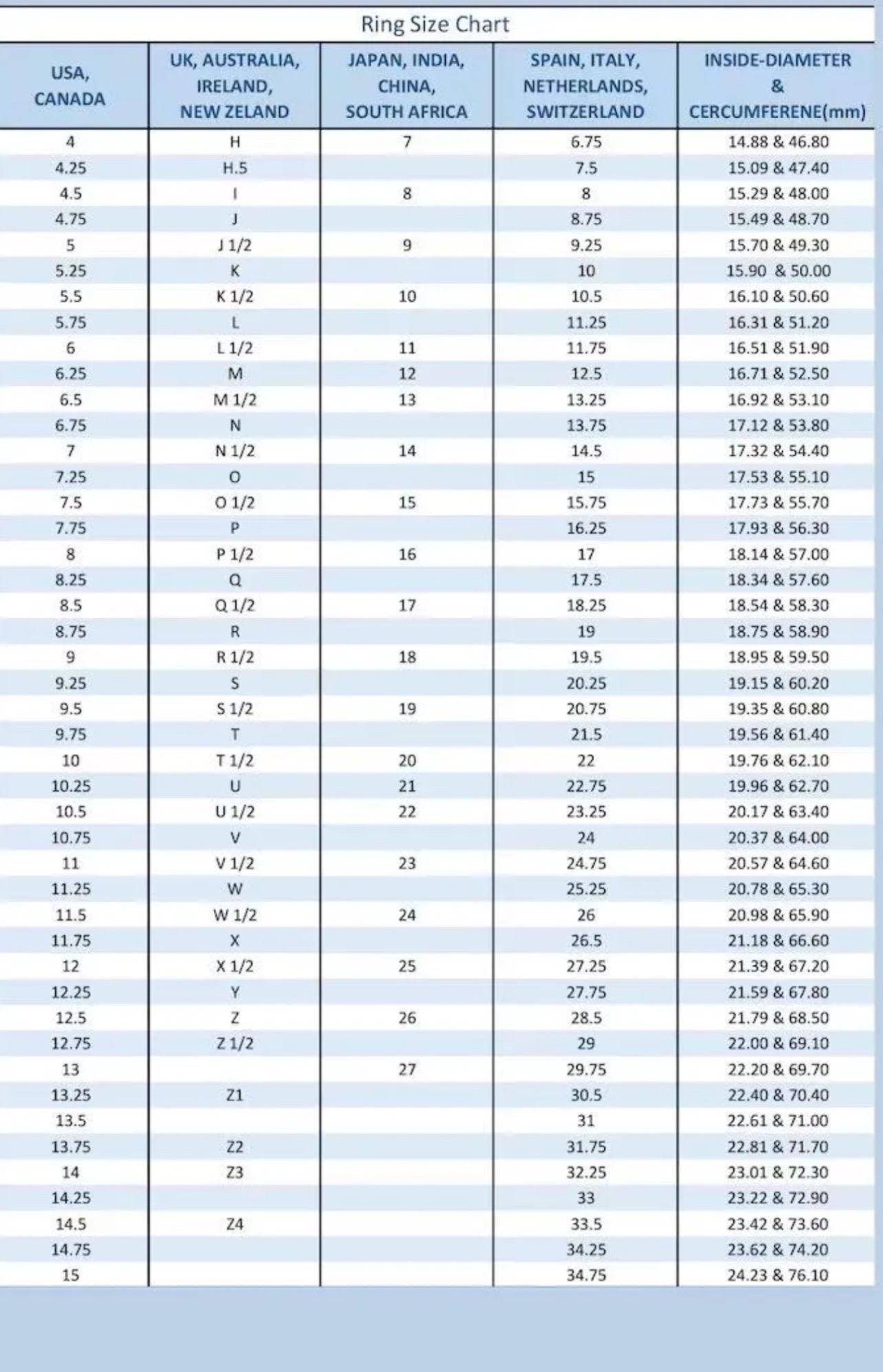 To work out your ring size Take a length of floss or string and wrap it around the base of your finger. Mark where the floss or string first overlaps with a pen. Stretch the length of string out along a ruler or measuring tape, and take down the length in millimetres. You can then scroll left (within my product pictures) to see my ring size chart and find out what size you are. Easy!