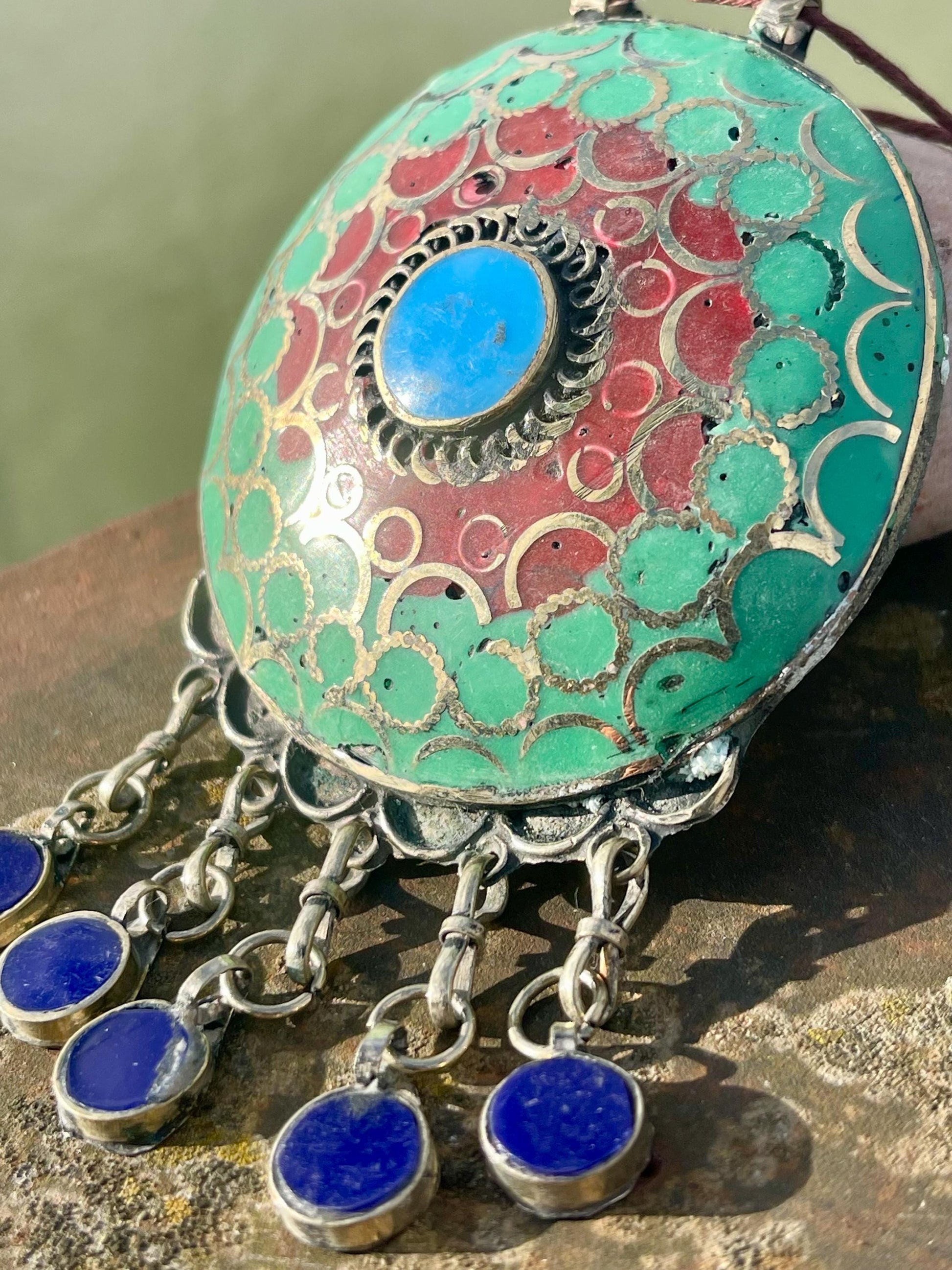 Gypsy jewellery. Very large statement necklace. Vintage jewellery, ethical jewellery, red and green pendant, boho necklace, unique necklace
