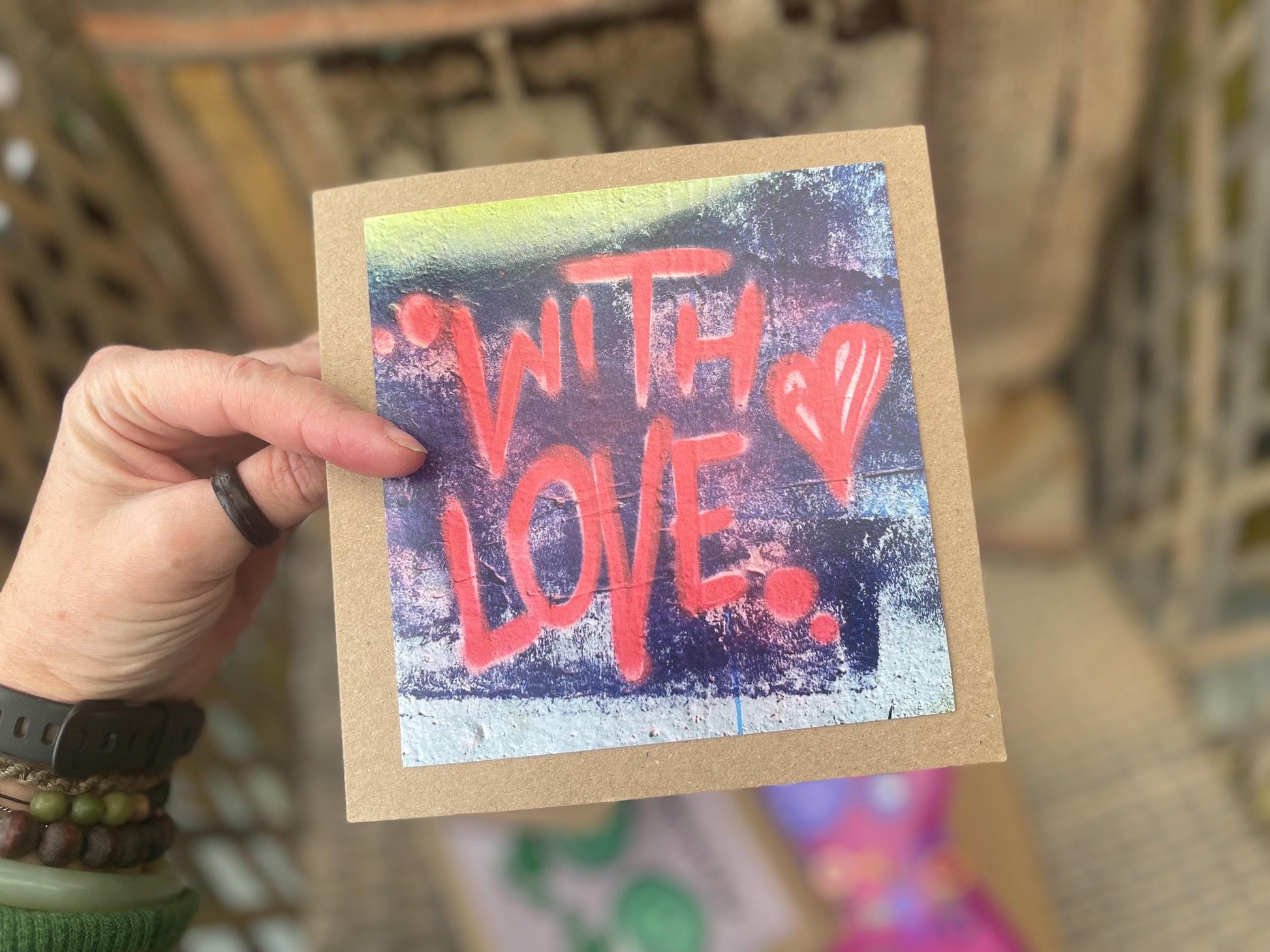 Handmade card, recycled card, anniversary card, birthday card, eco card, love card, romantic card, I love you card graffiti card, funky card