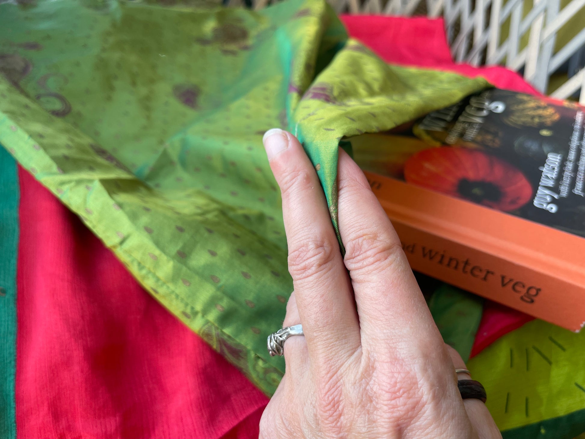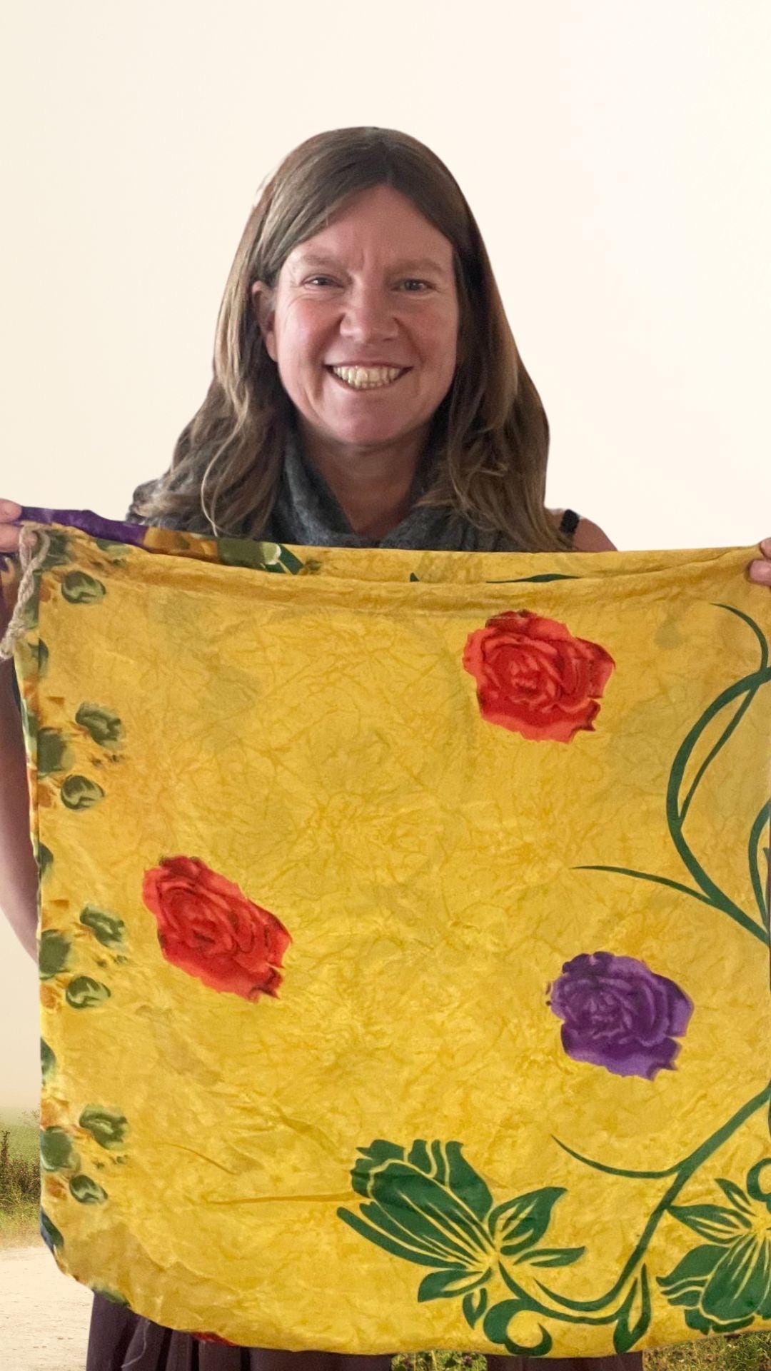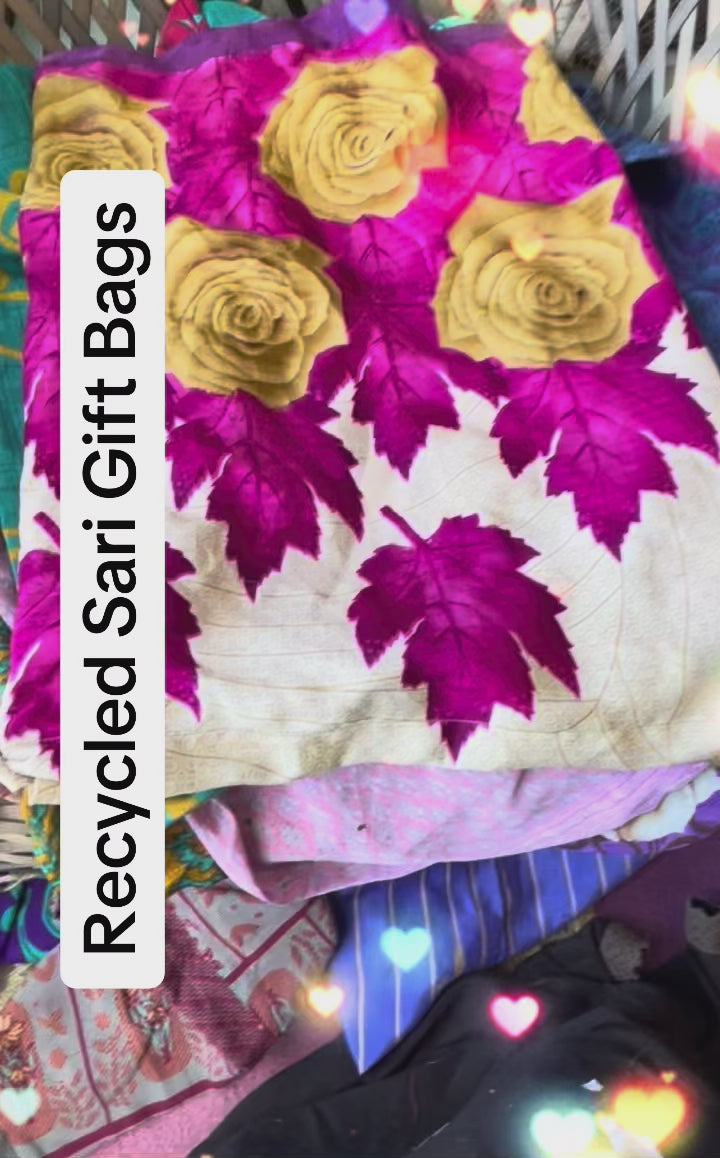 Recycled LARGE sari gift bags. A mix of colours in each order. Sizes vary but it give you a guide, the bags are approximately 32 x 40 cms, or 48 x 48 cms.