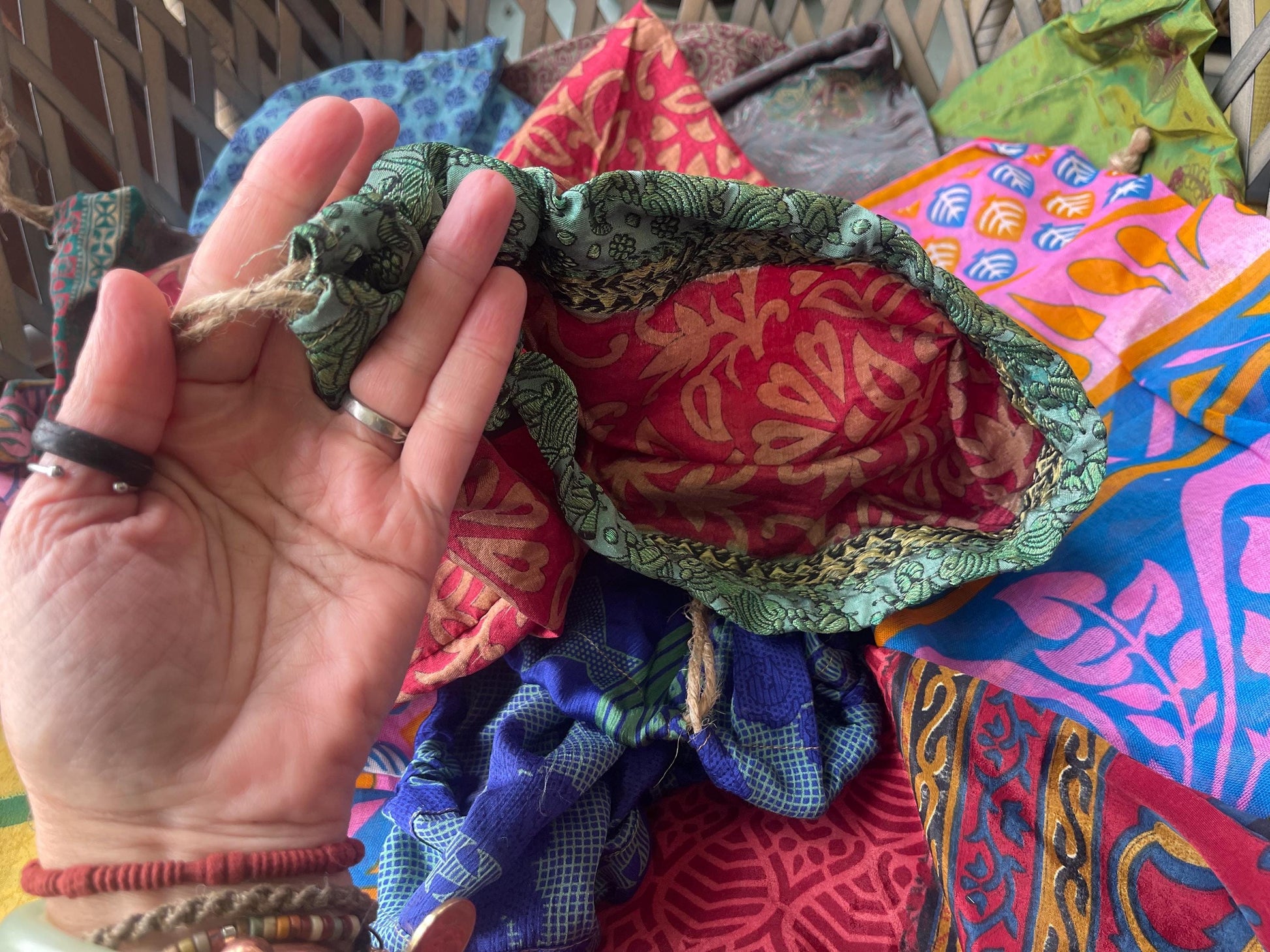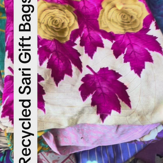 Large recycled sari bags. Alternative eco friendly wrapping option. Recycled bags for gifts. Recycled gift bags. Ethical draw string bags.