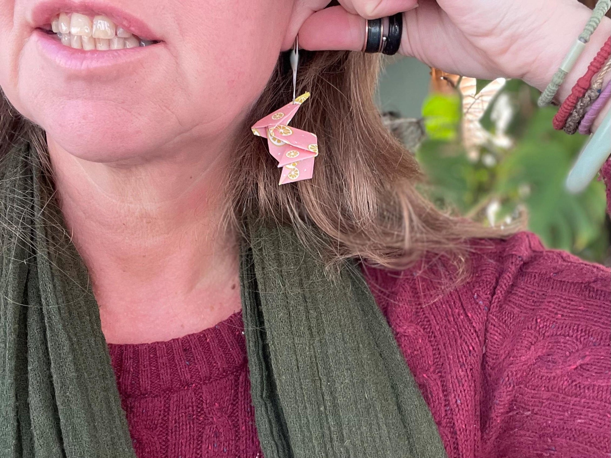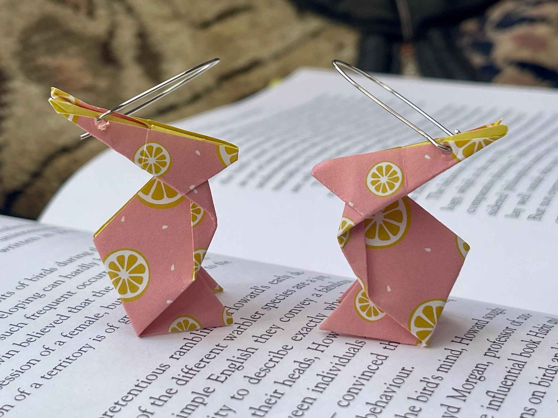 Handmade origami (paper) rabbits hosted on recycled sterling silver. A beautiful unique gift for yourself or a loved one.