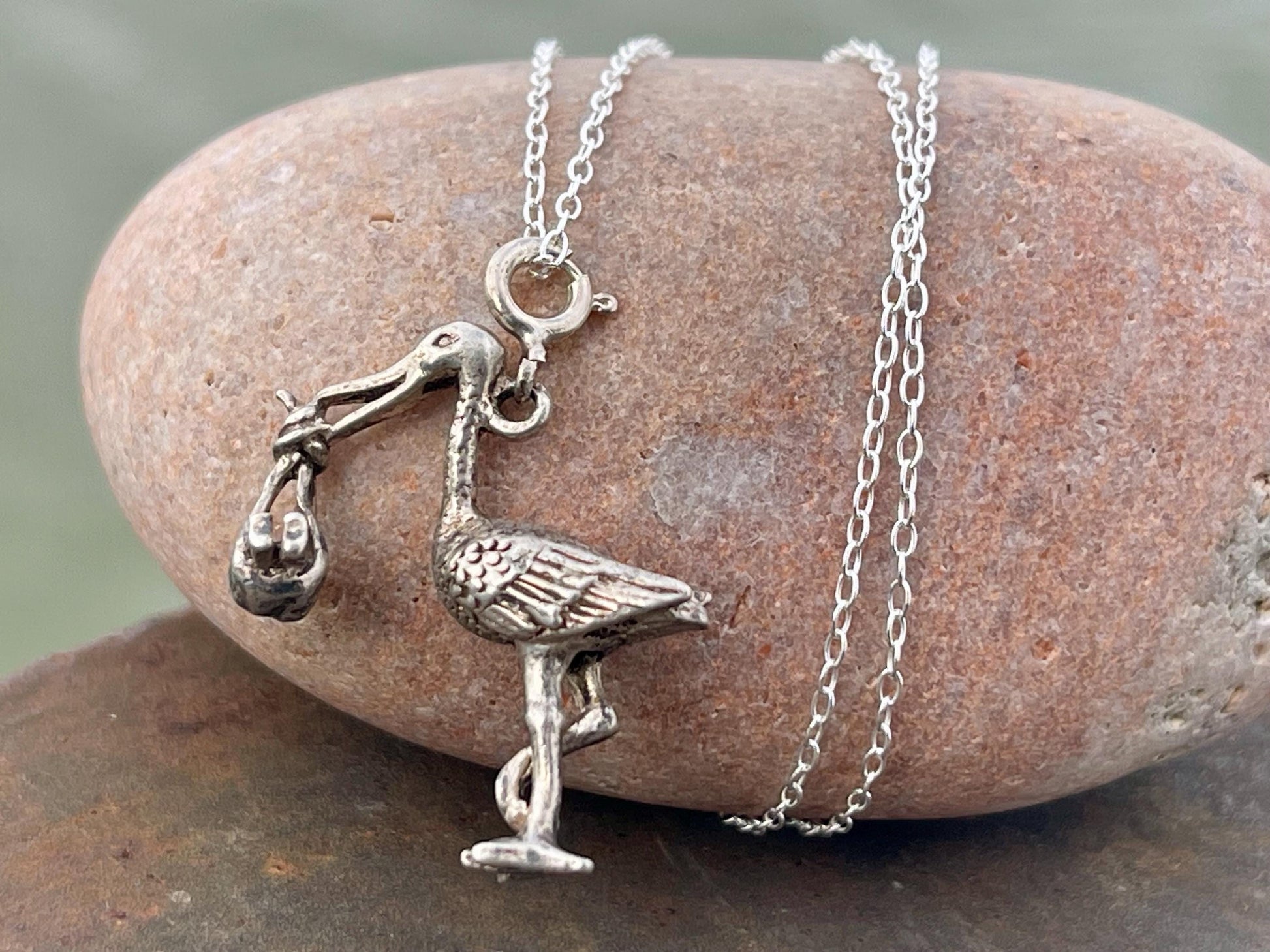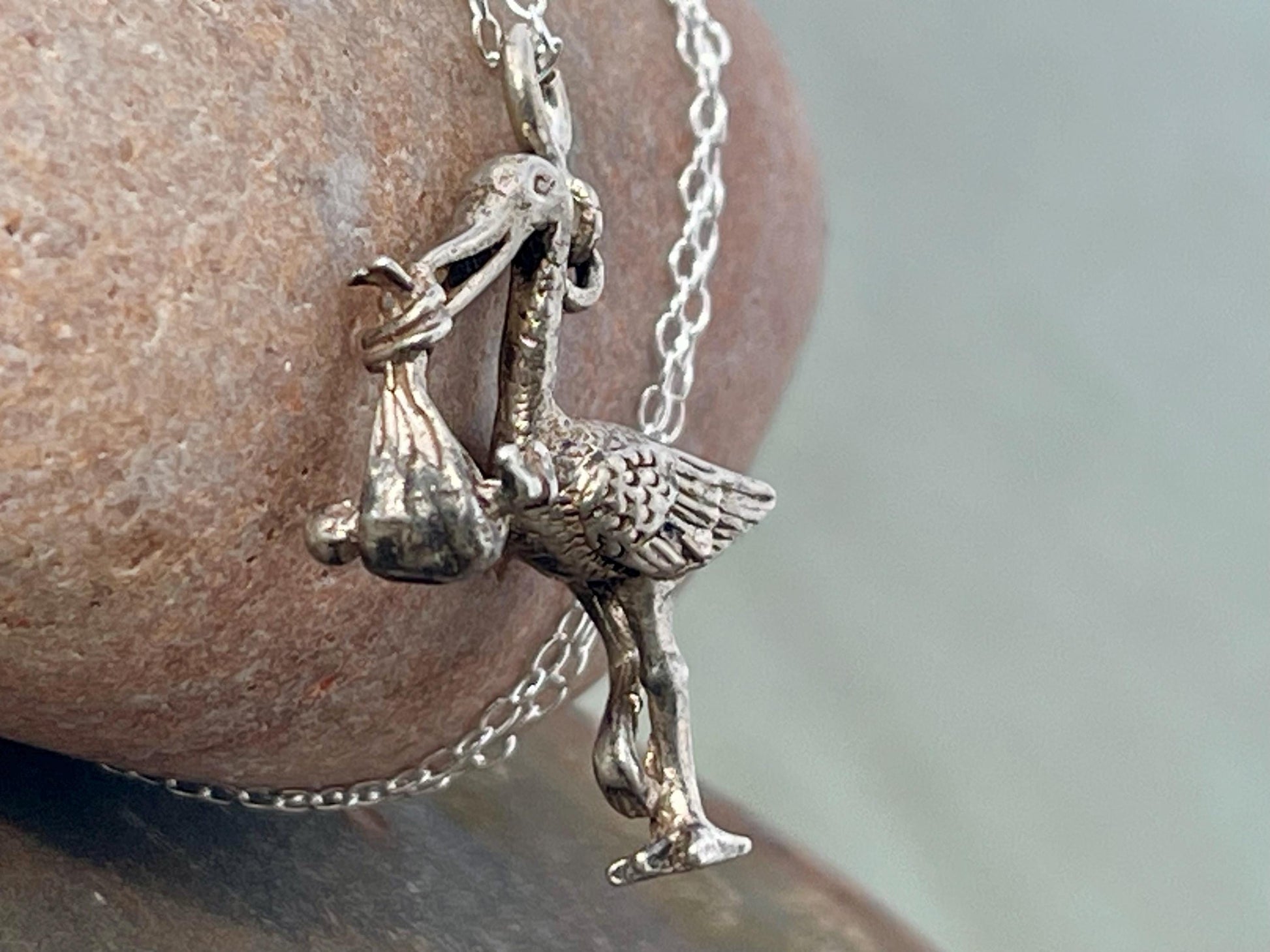 Recycled sterling silver stalk necklace. Unique jewellery, eco friendly necklace, new baby gift. Stalk and baby necklace. Ethical jewellery.