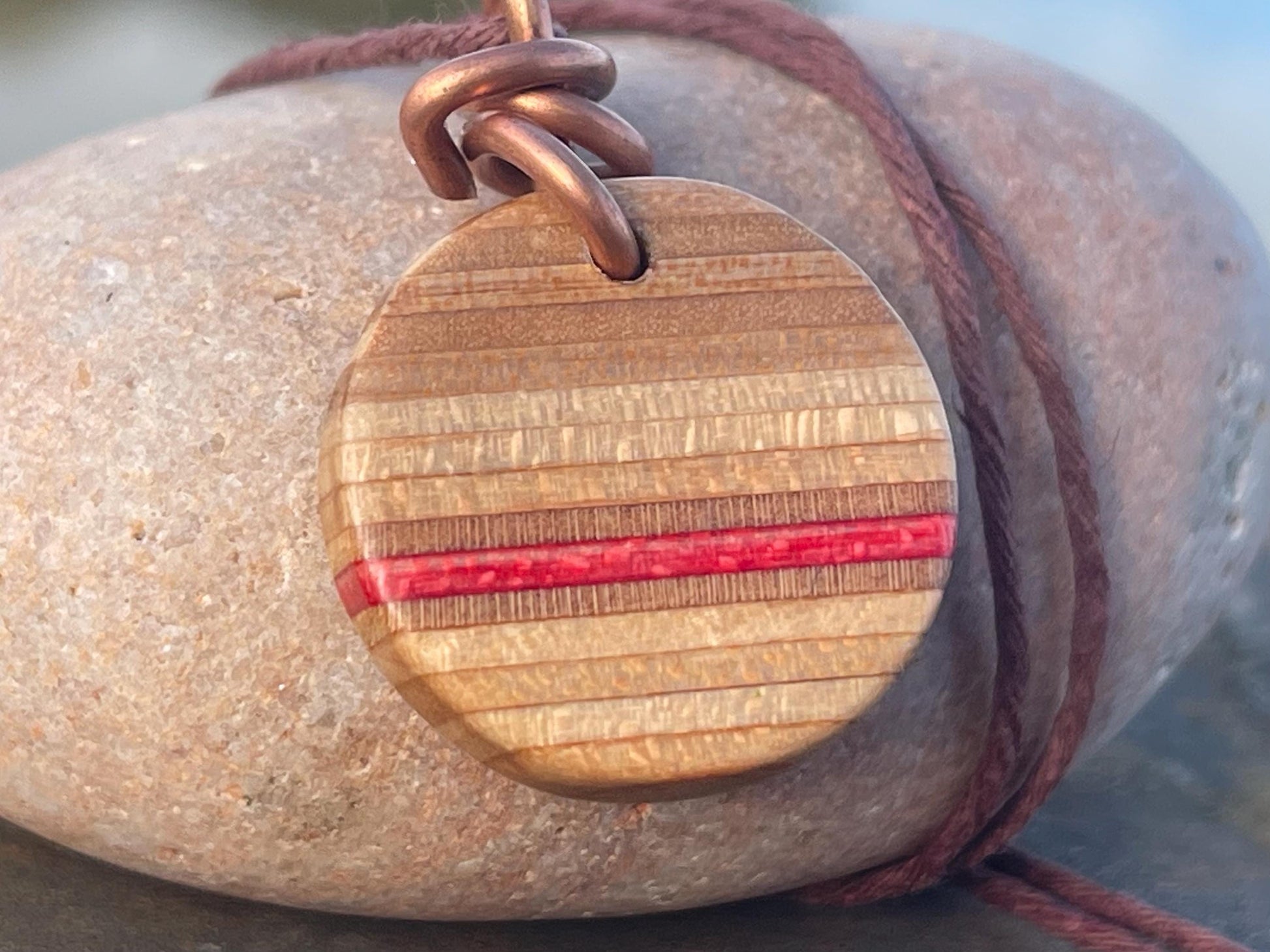 RED Handmade pendant made from old skateboards. Skateboard necklace. Unique gifts for men. Sustainable jewellery. Eco friendly jewellery.