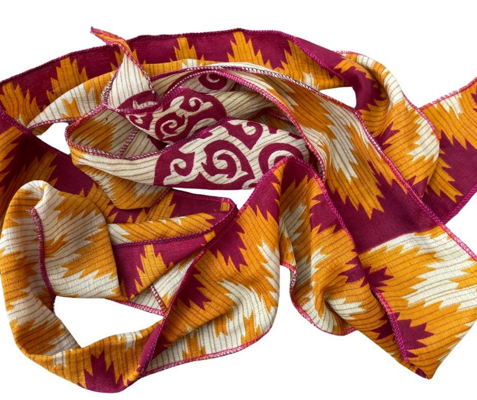 Recycled Indian sari remnants, transformed for you to use in a variety of ways and designed to tie at your preferred length.