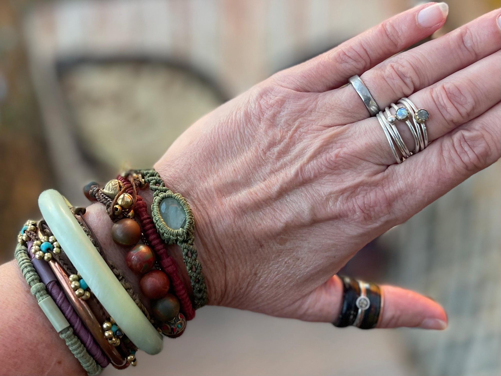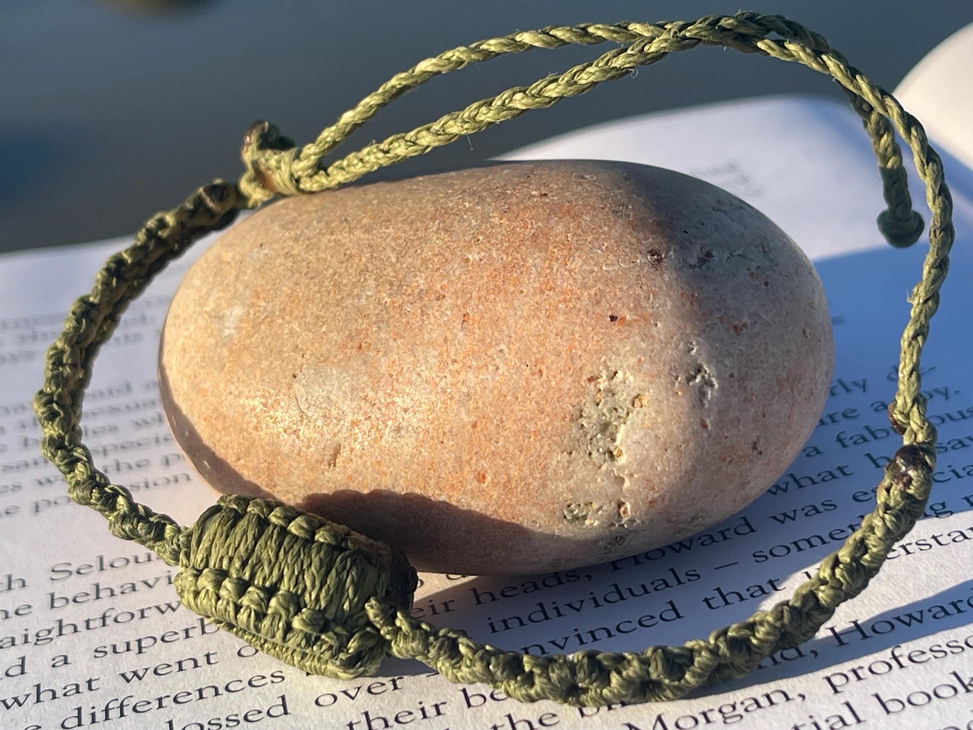 Natural ethically sourced moss agate. A truly unique piece, macrame wrapped and adjustable, so you can tie at your preferred length to suit your wrist size.