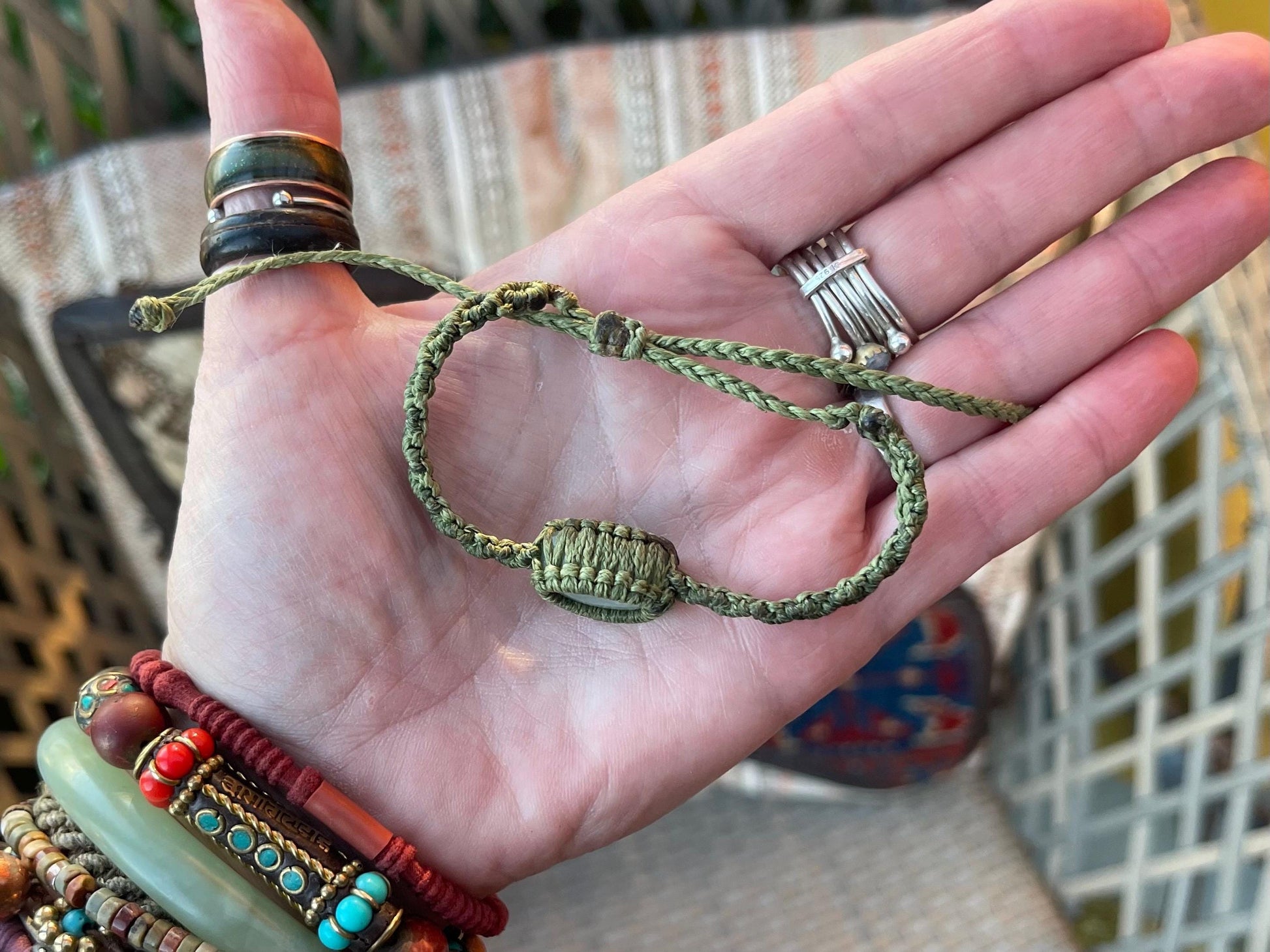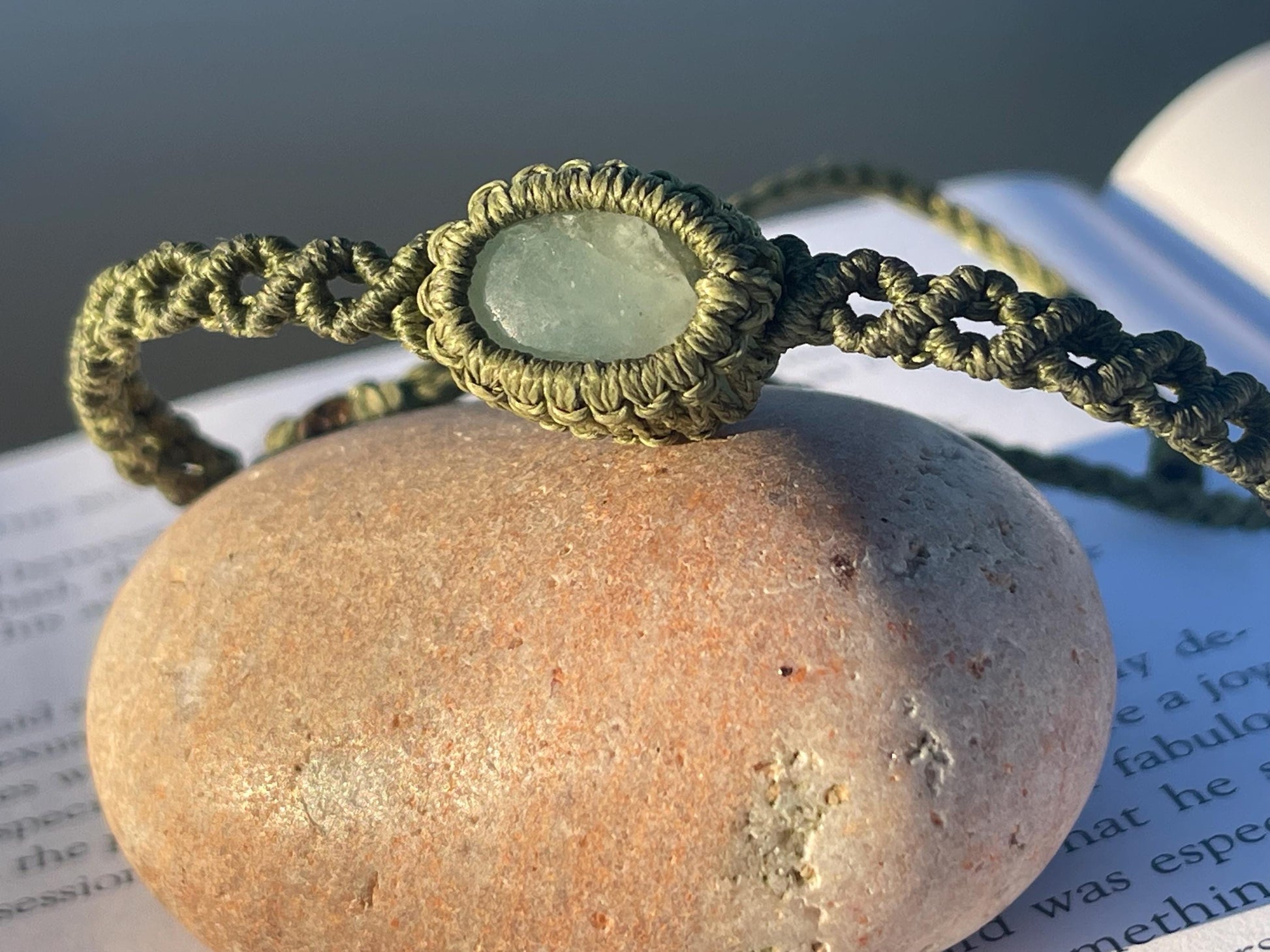 Stunning macrame wrapped miss agate bracelet, ethical jewellery, unusual jewellery, macrame jewellery. Green macrame bracelet. Boho.