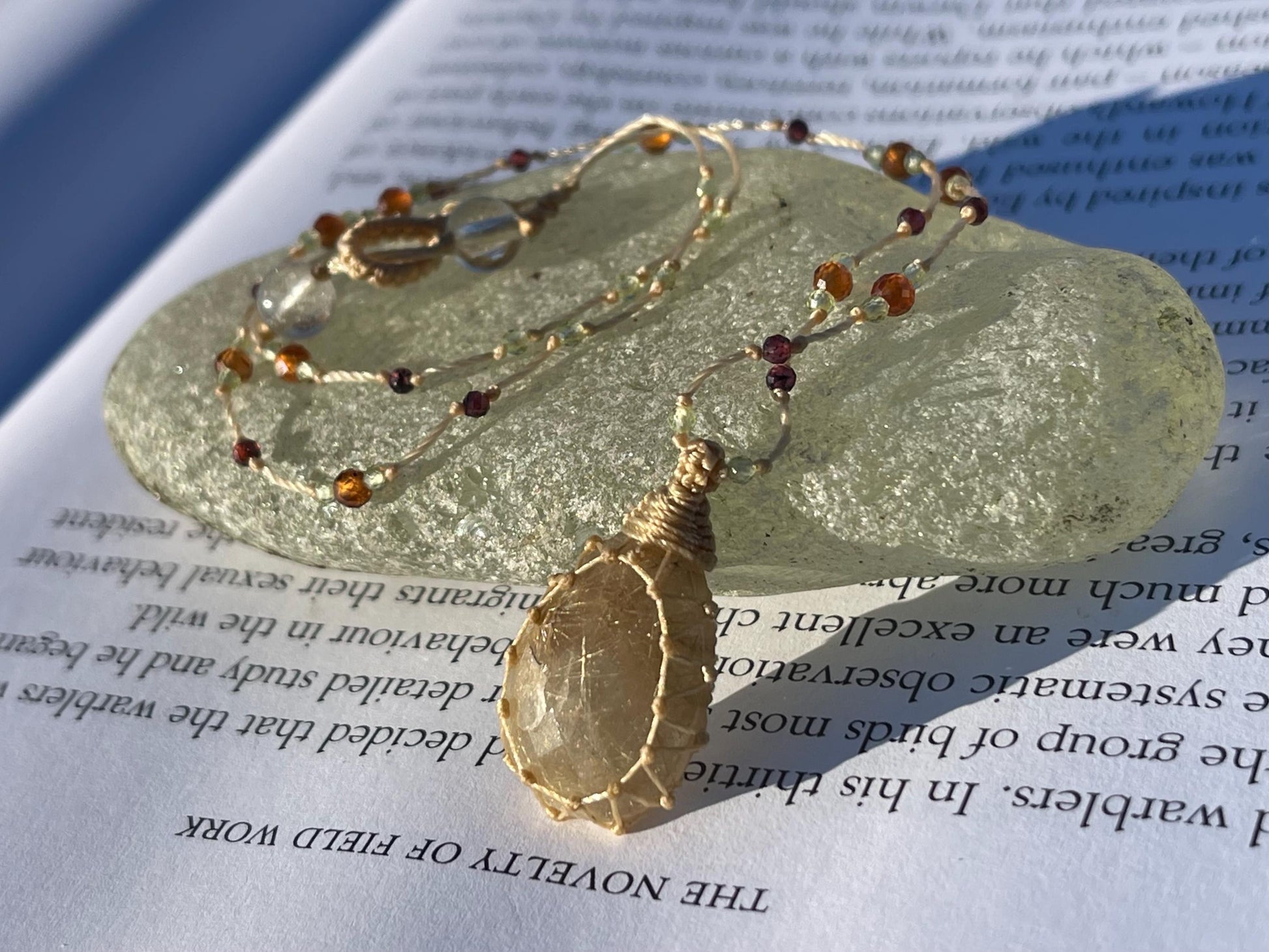 Stunning rutile quartz necklace. Beautiful macrame pendant. Handmade gemstone necklace, boho jewellery. Macrame jewellery. Unique jewellery.