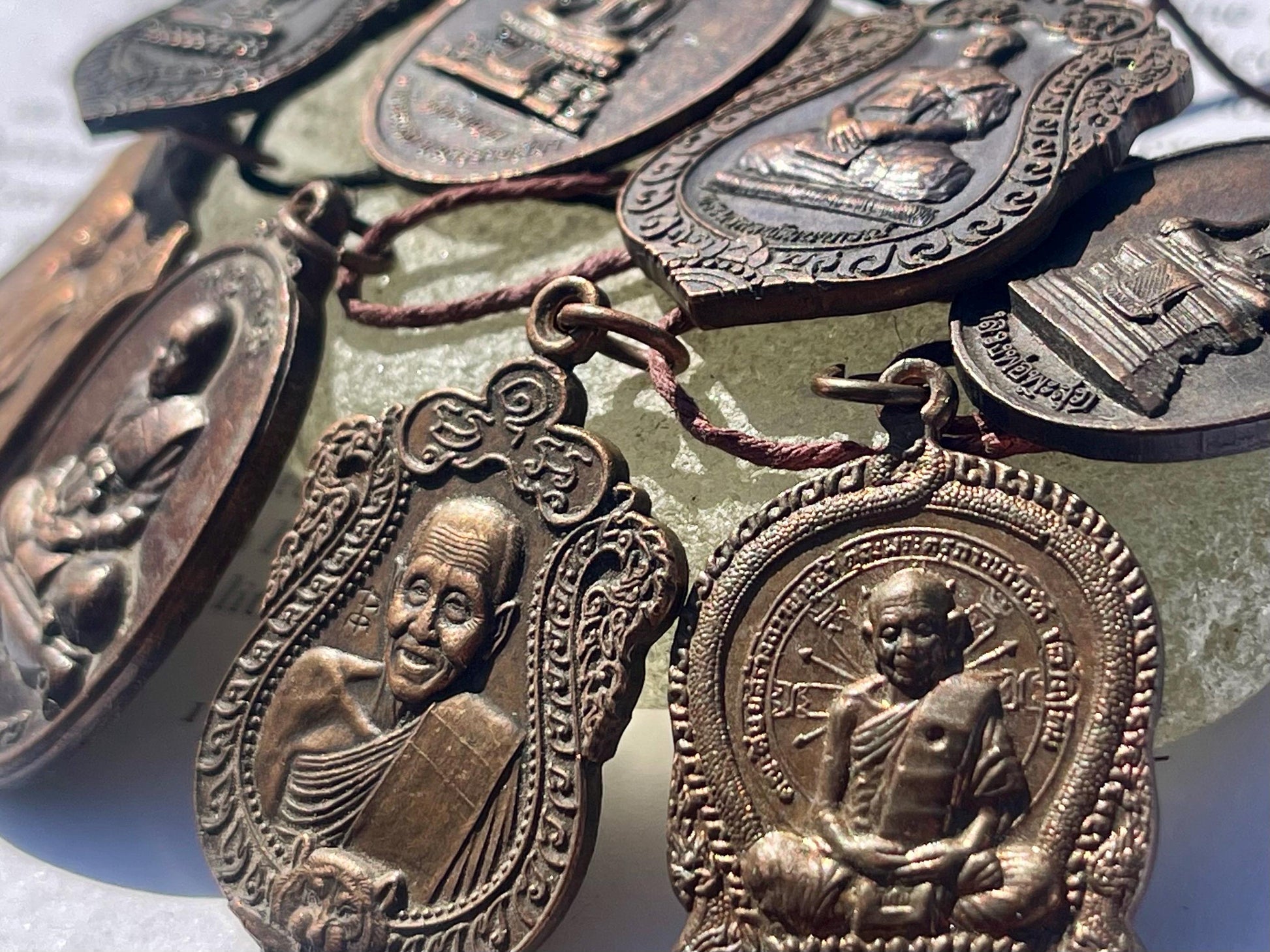 These amulets are often worn or carried as sacred objects believed to provide protection, luck, and blessings. Originally from Buddhist temples and believed to have been blessed by monks. Sourced by myself and family in Thailand.
