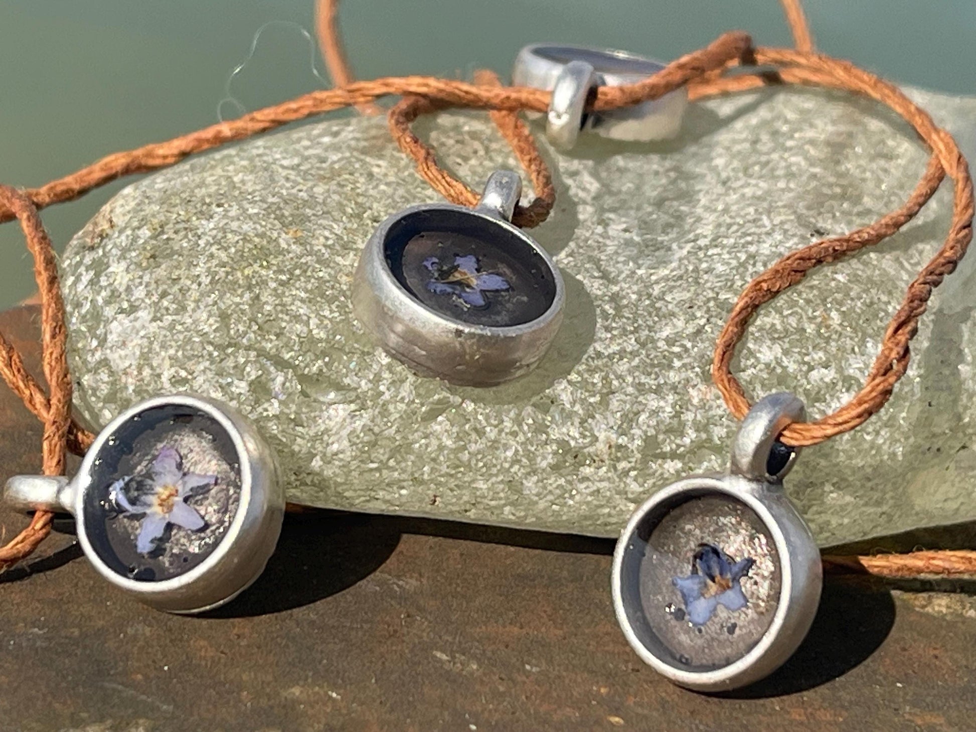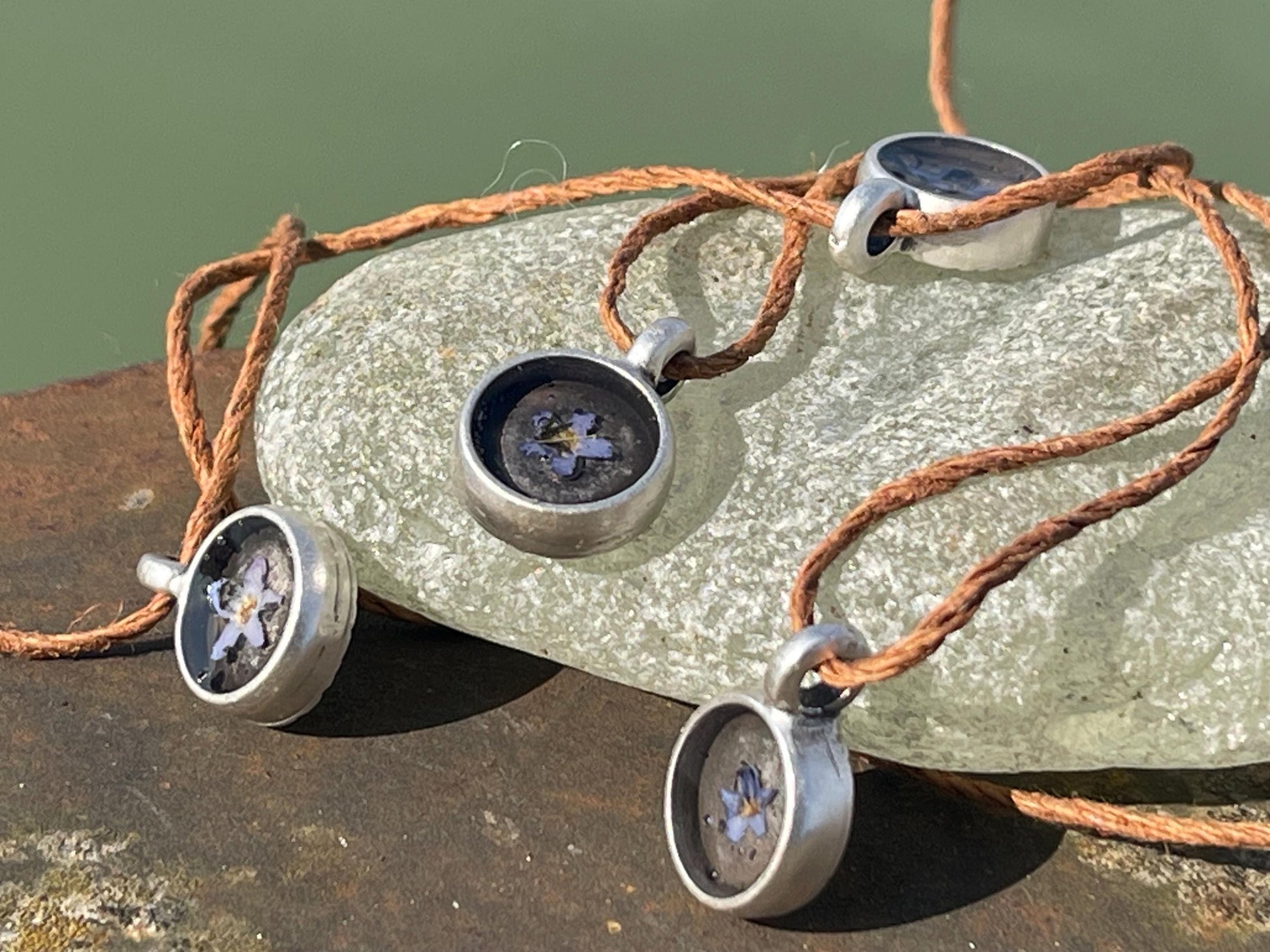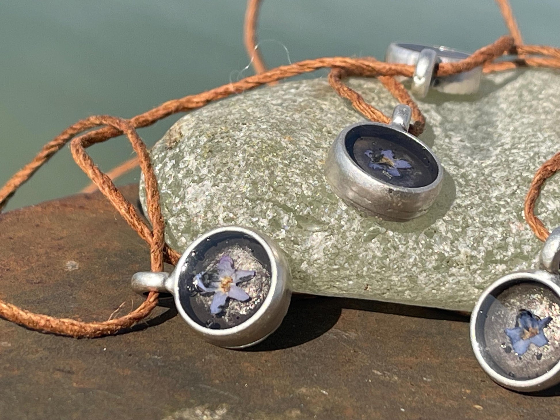 Forget-me-not boho necklace. Handmade gift for her, flower pendant, ethical gift. Ethical jewellery, handmade necklace, flower necklace