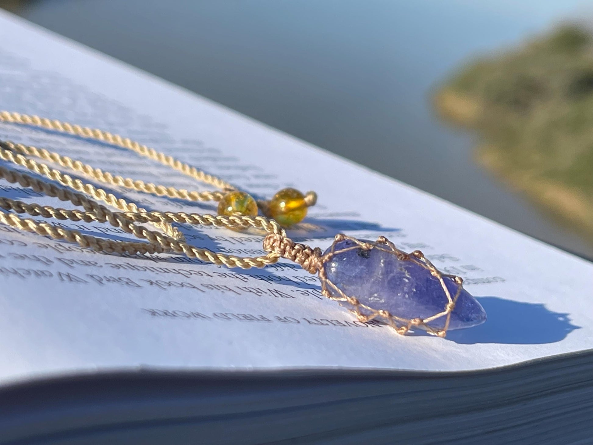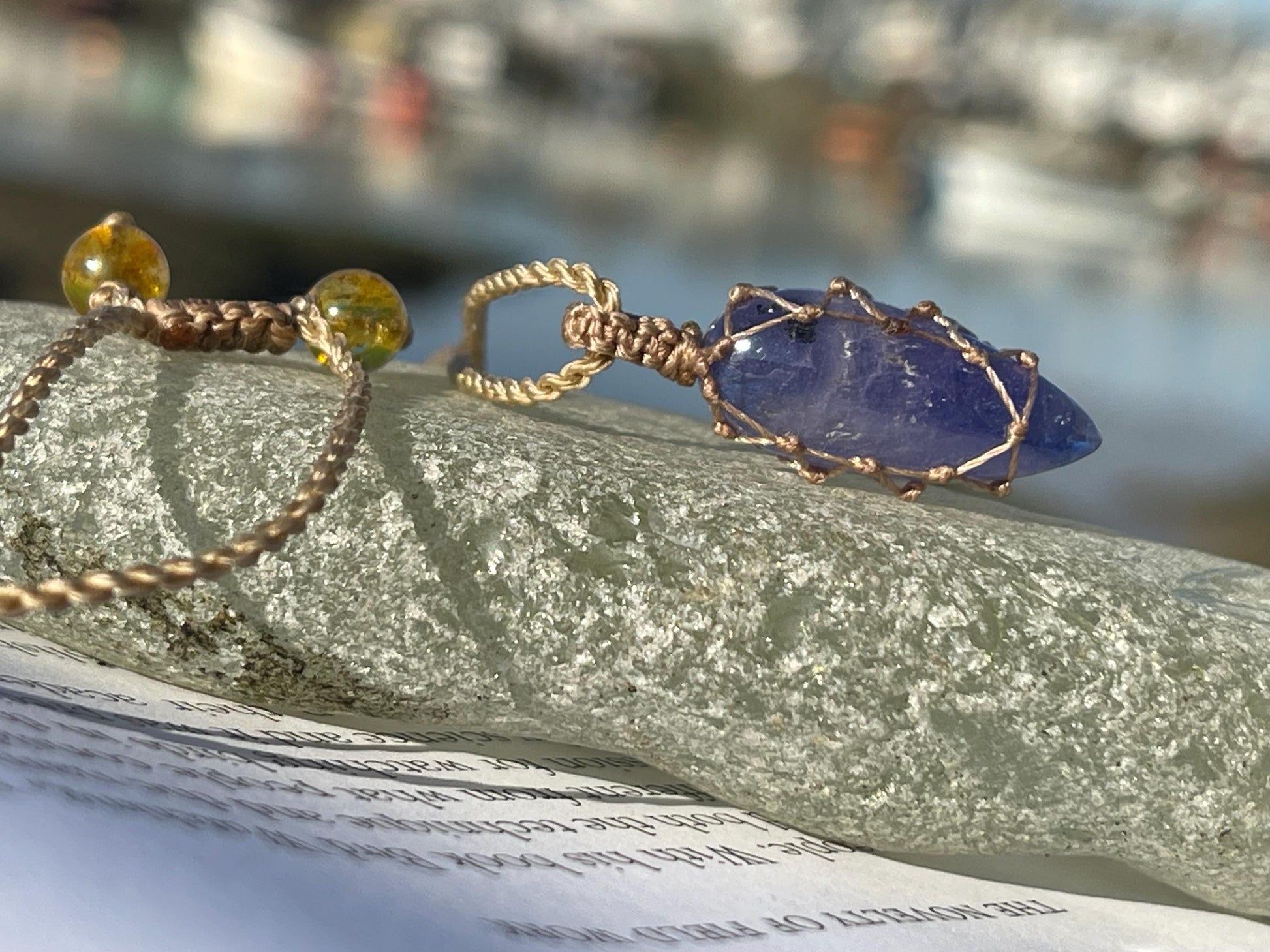Stunning macrame tanzanite necklace on an adjustable cord. Handmade gemstone necklace, boho jewellery. Macrame jewellery. Unique necklace.