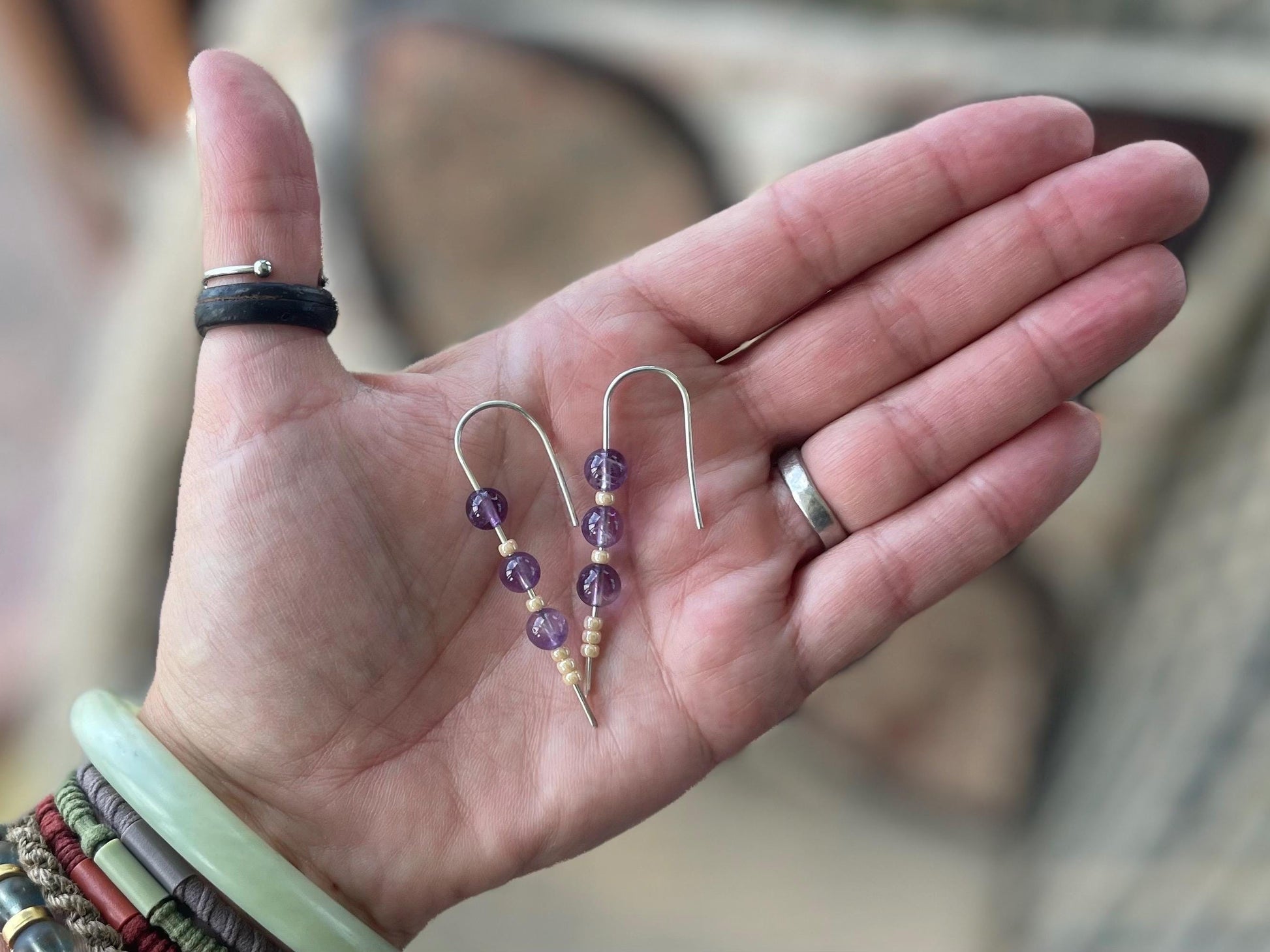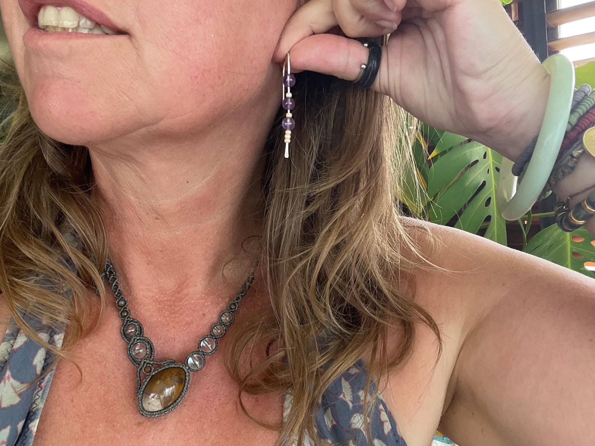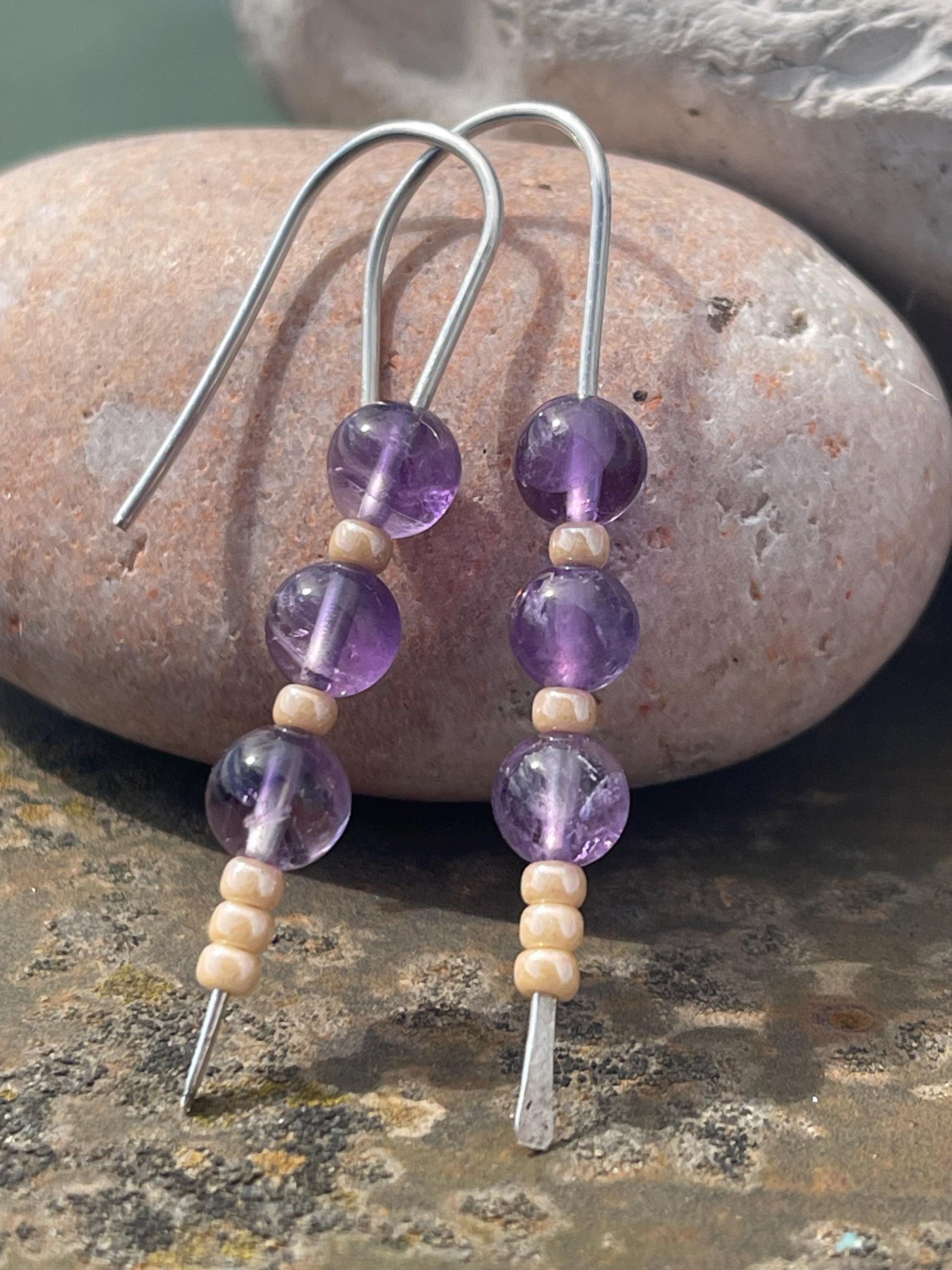 Amethyst & recycled sterling silver handmade earrings. Handmade amethyst jewellery. Artisan earring. Unique jewellery. Eco friendly earrings
