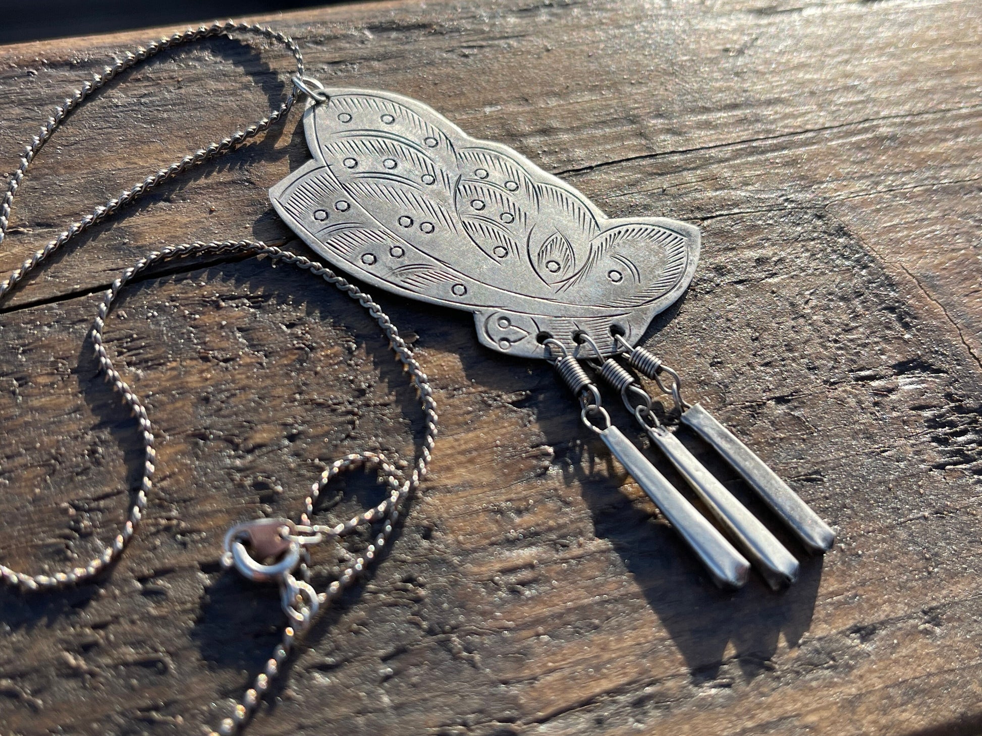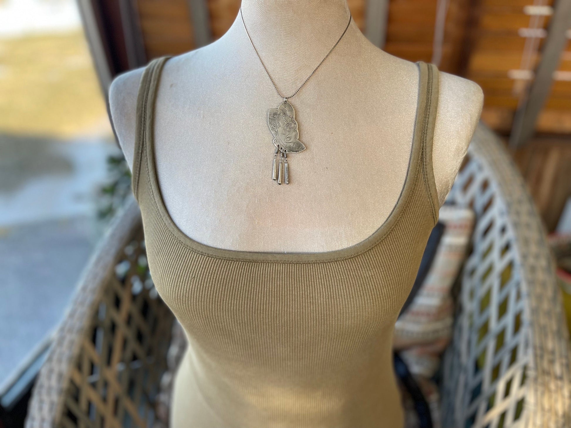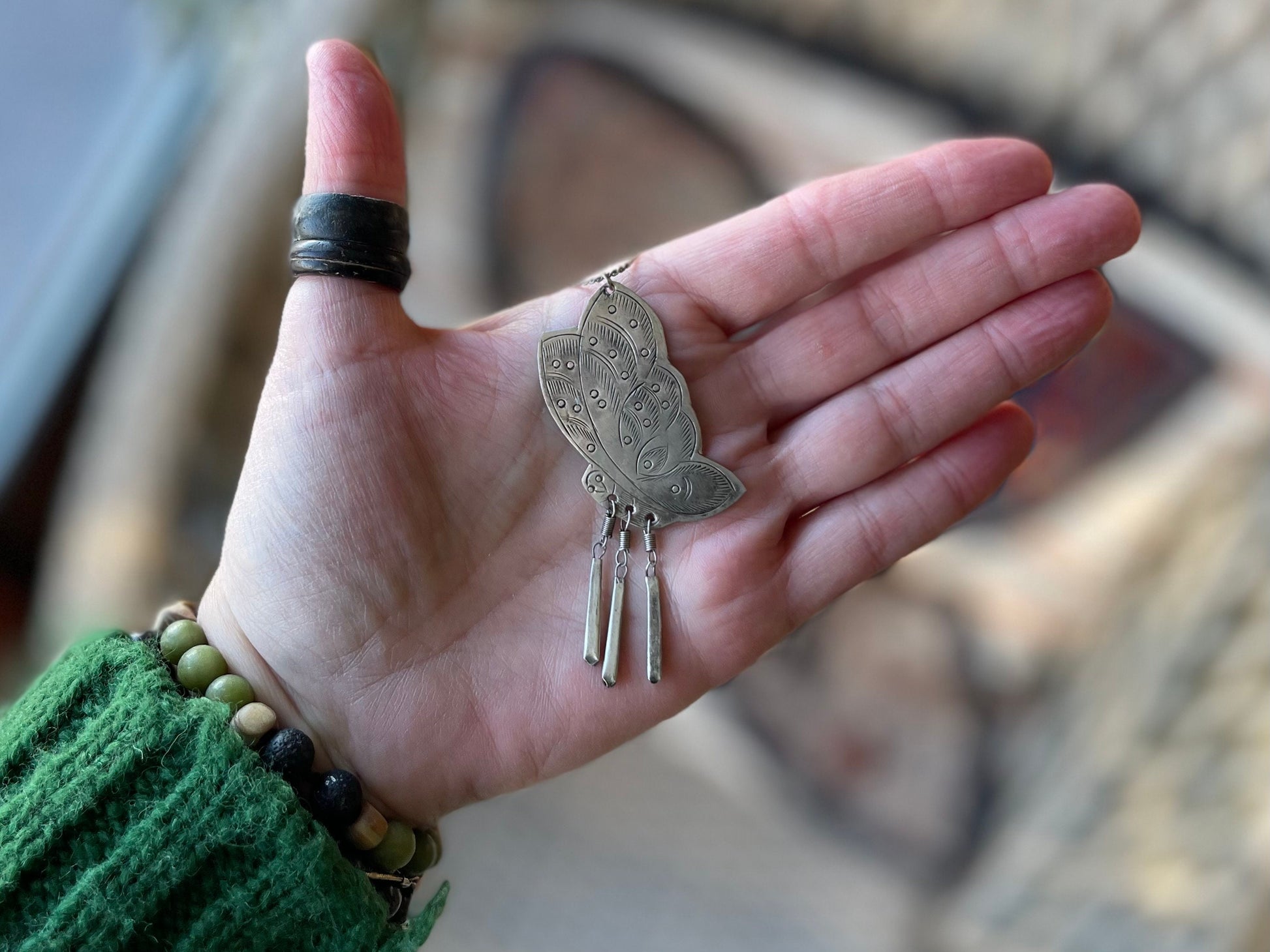 Butterfly necklace, hippy necklace, butterfly pendant, pre loved gift for her. Unusual necklace, butterfly jewellery, bohemian necklace