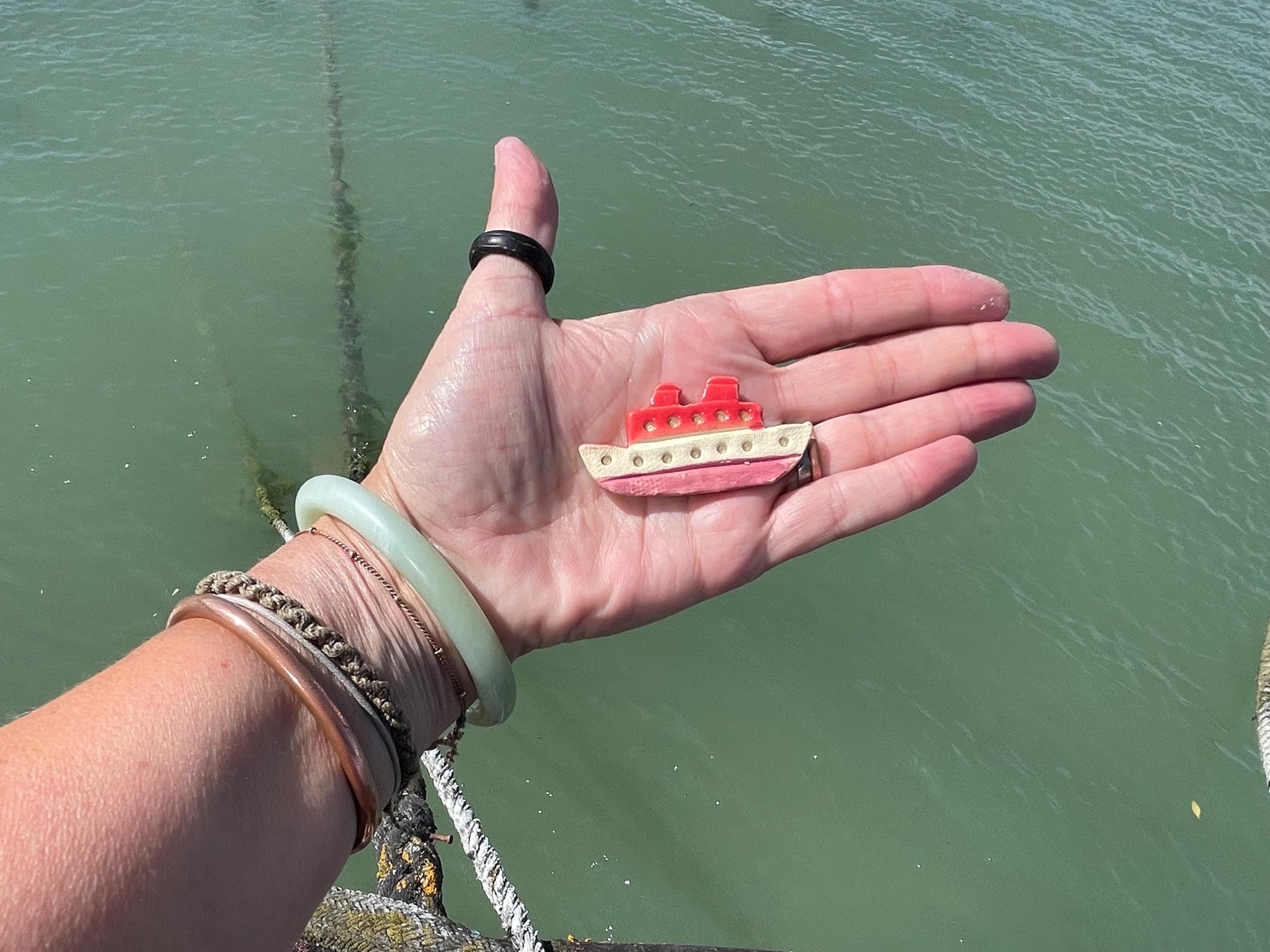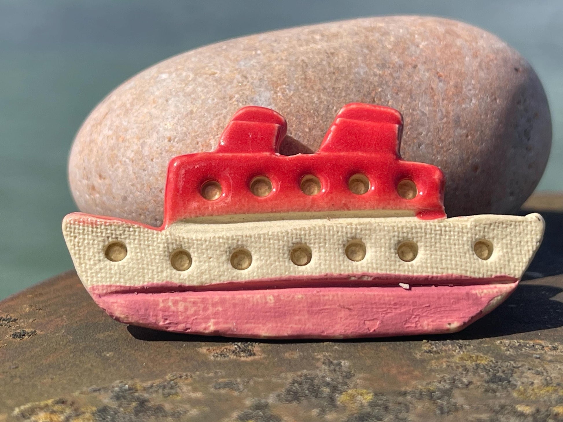 Ceramic boat brooch. Recycled brooch, handmade eco friendly jewellery, ethical jewellery, gift for sailor. eco gifts, boho jewellery