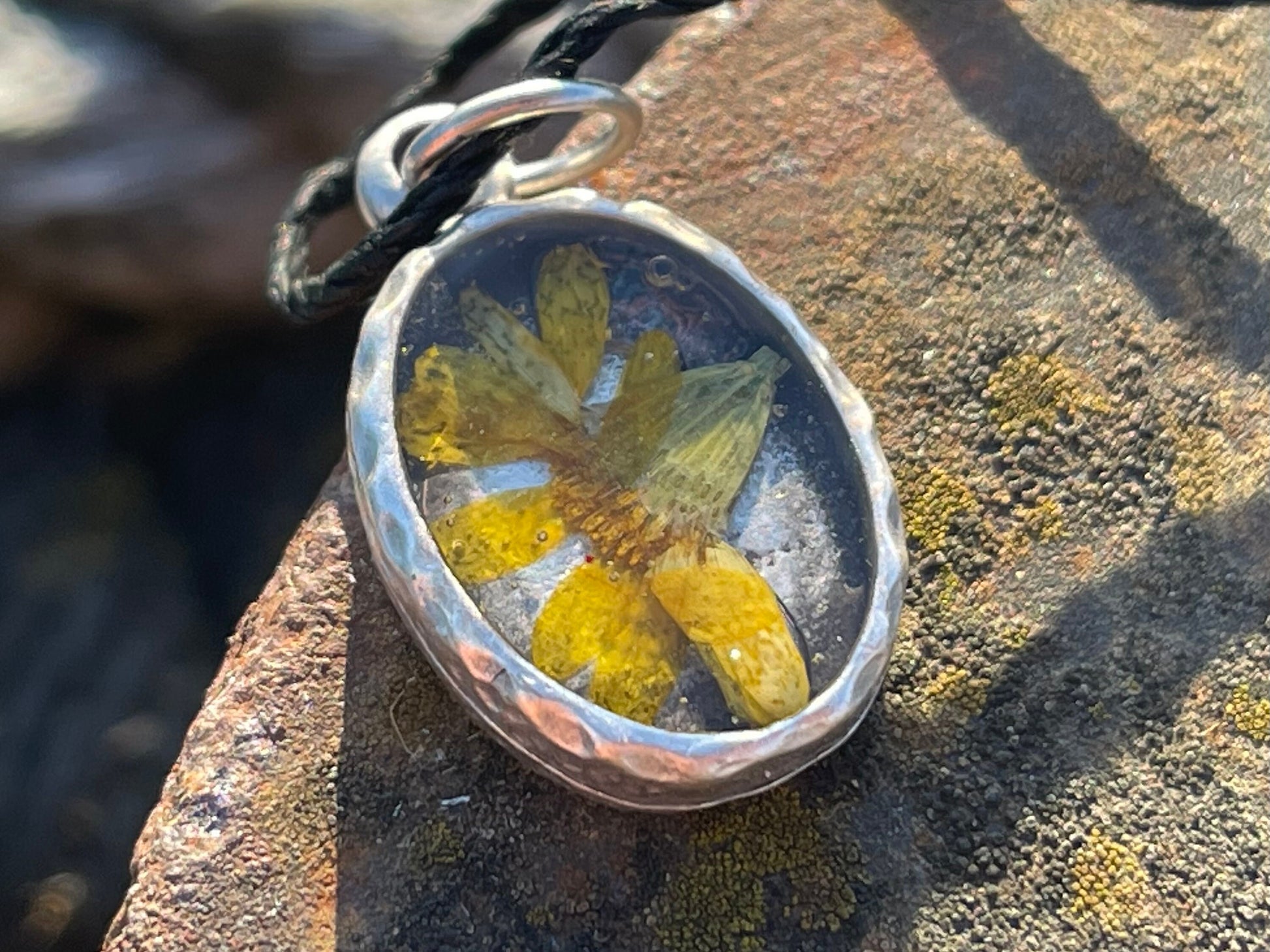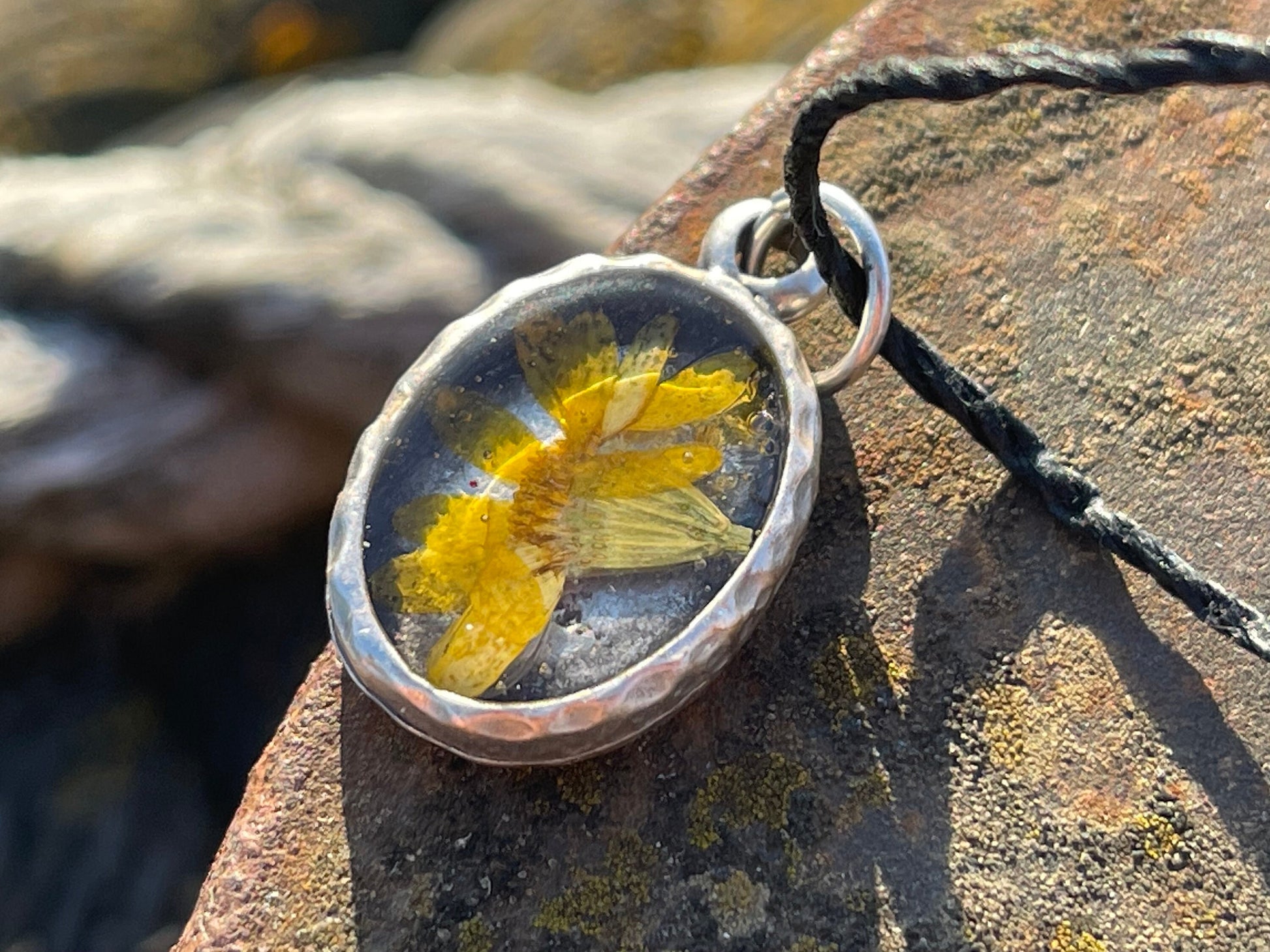 Hand pressed yellow chamomile necklace. An ideal gift for yourself or a loved one.
