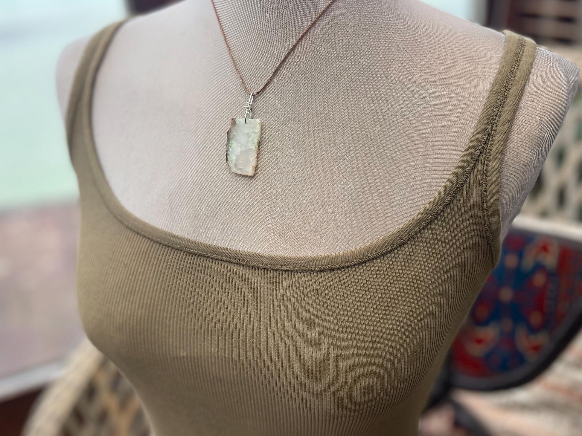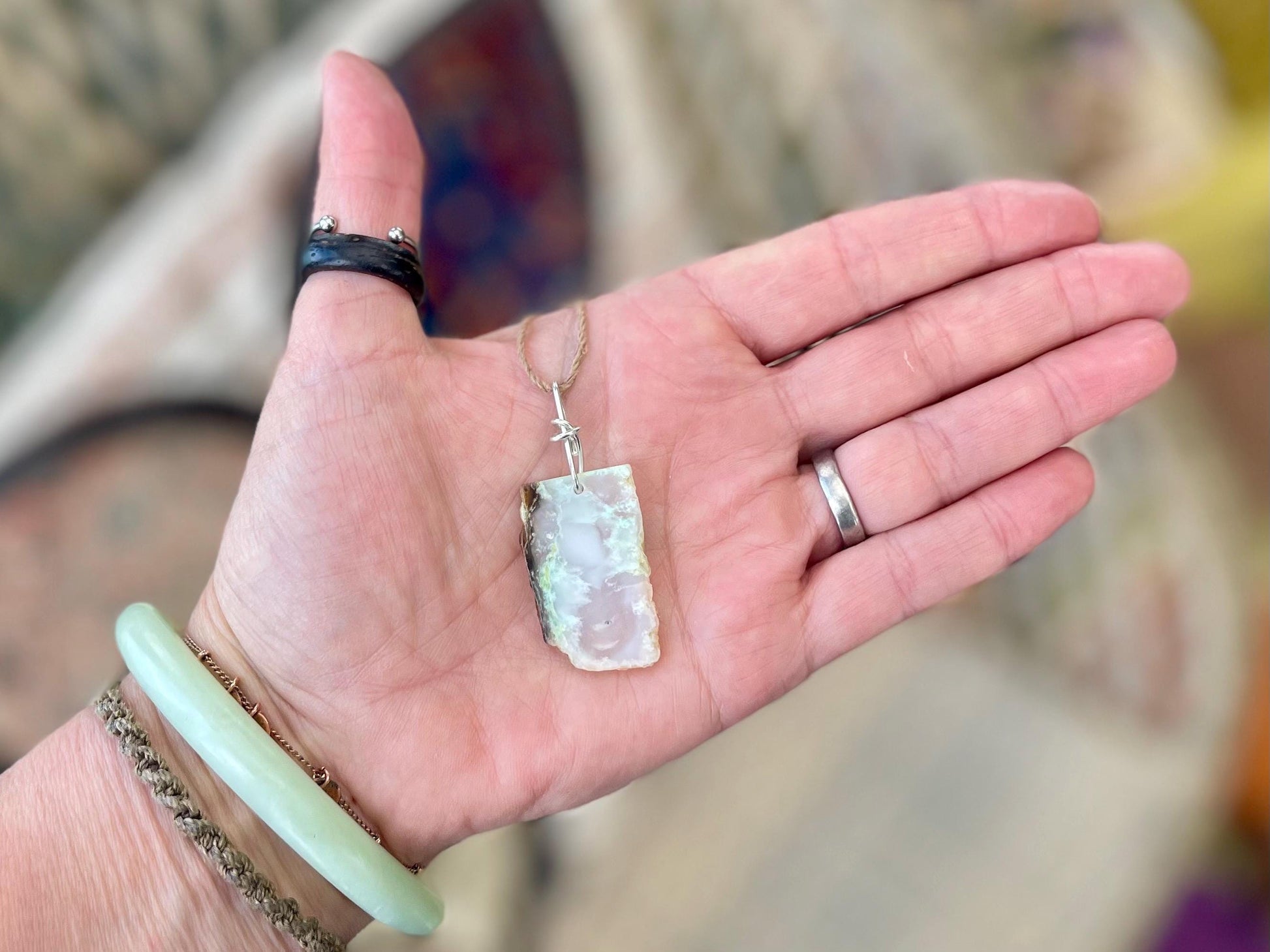 Absolutely stunning ethically sourced chrysocolla gemstones, shaped, drilled and hung on high quality recycled sterling silver. I have hung the piece on sustainable hemp, left loose for you to tie at your preferred length.