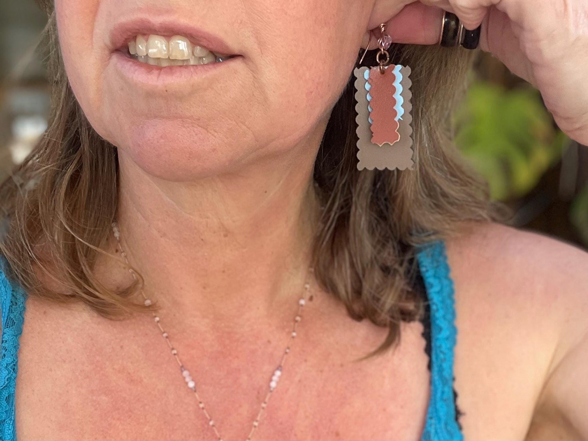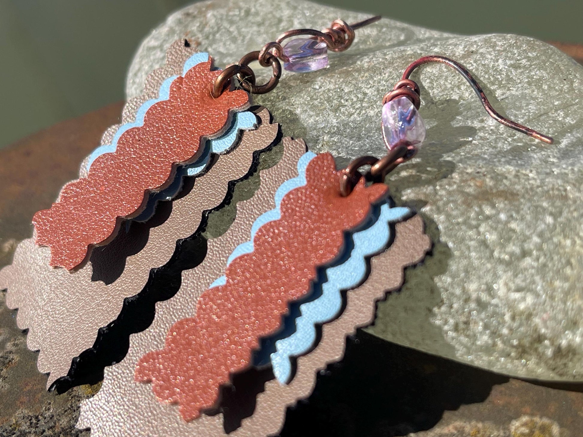 Eco friendly earrings made with sustainable cactus leather. Cruelty free, ethical, sustainable earrings. Eco friendly jewellery.