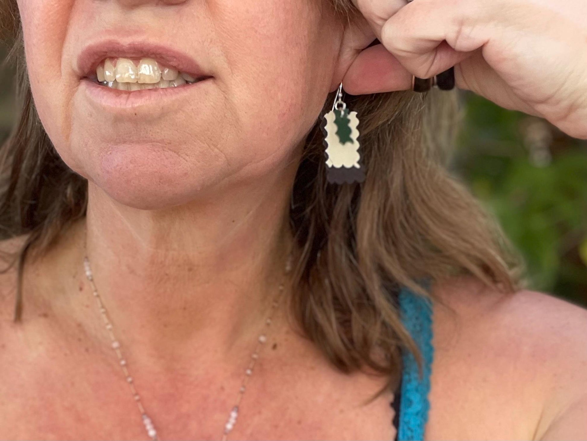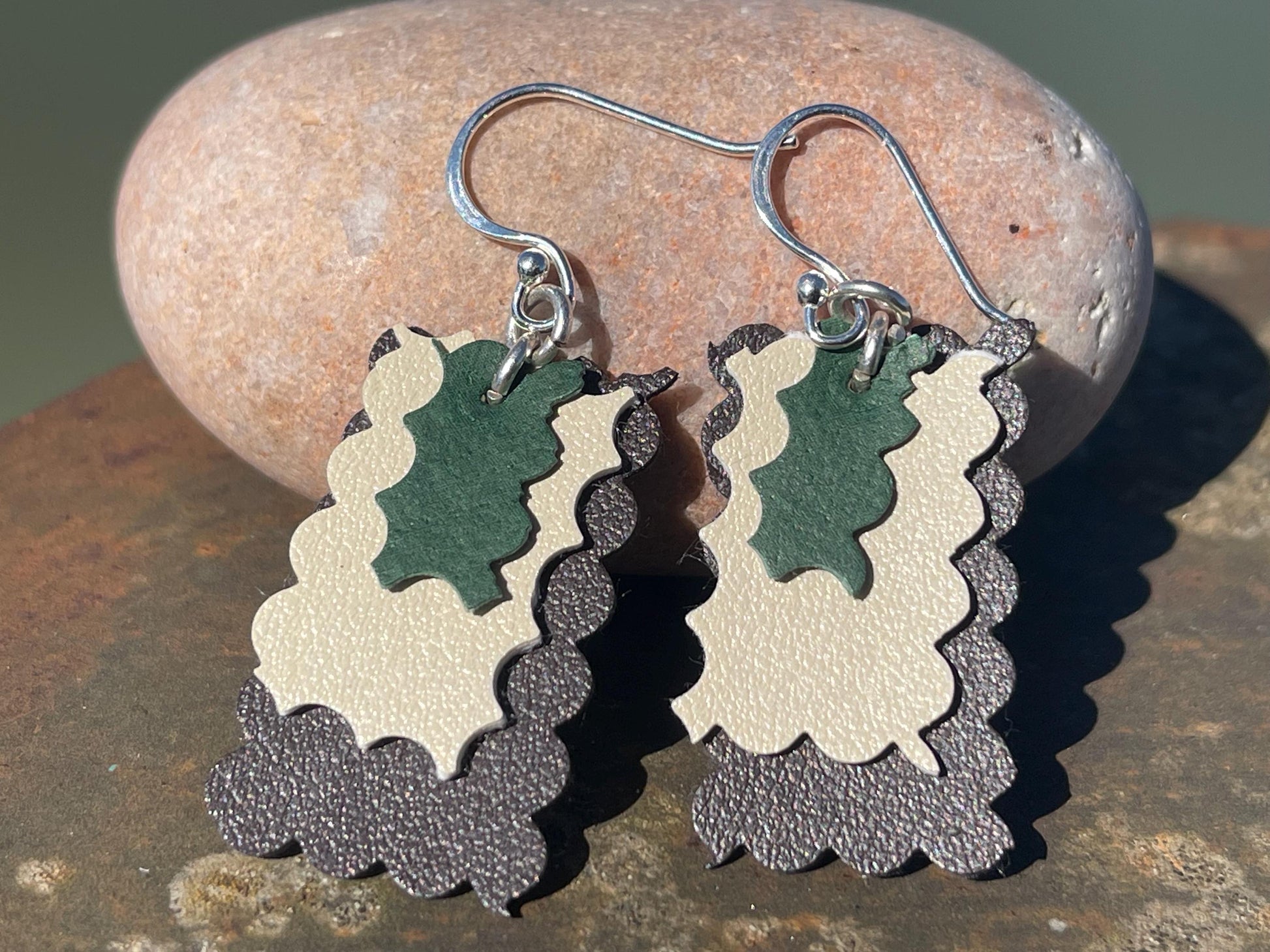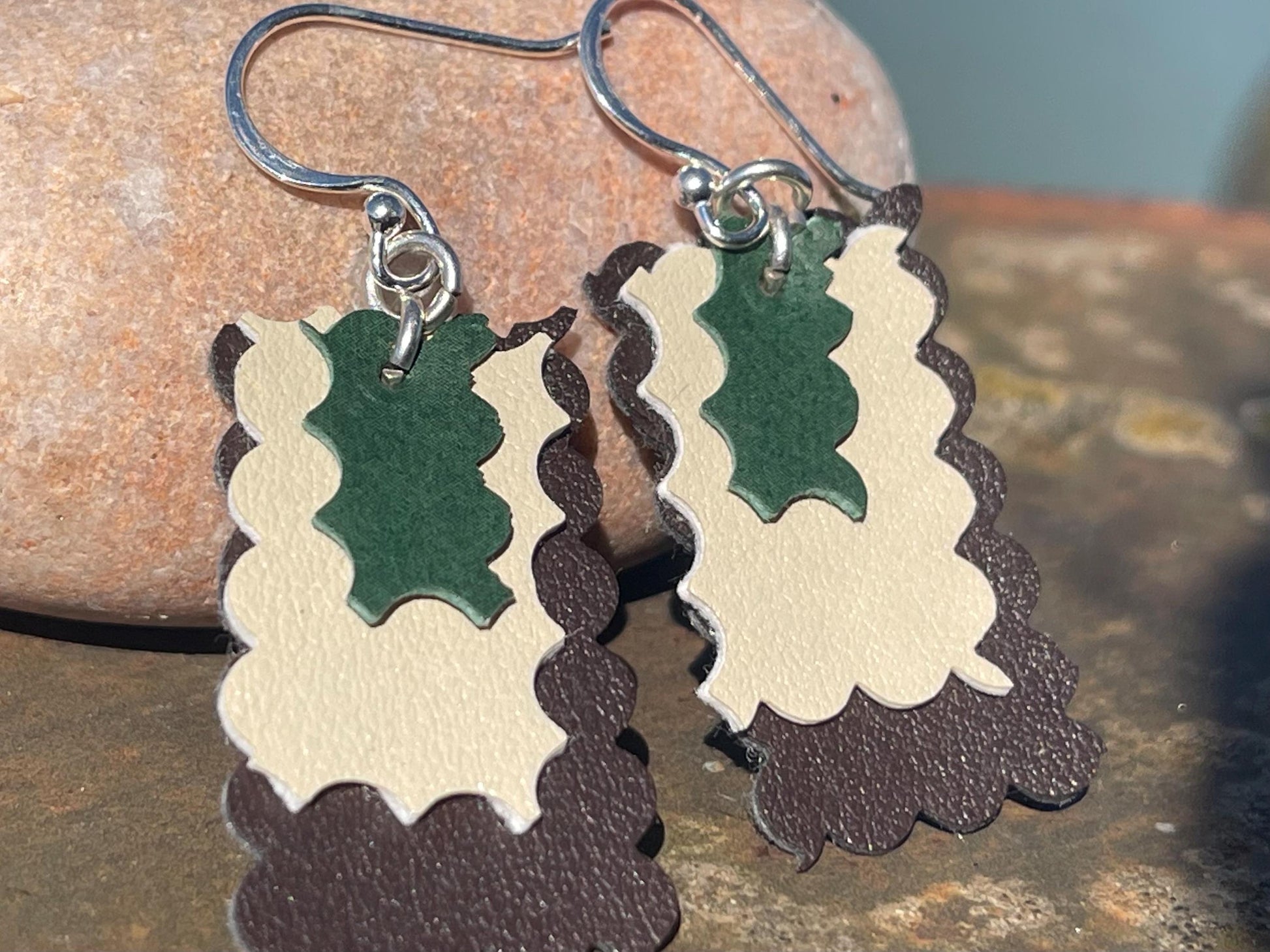 Eco friendly earrings made with sustainable cactus leather. Cruelty free, ethical, sustainable earrings. Eco friendly jewellery.