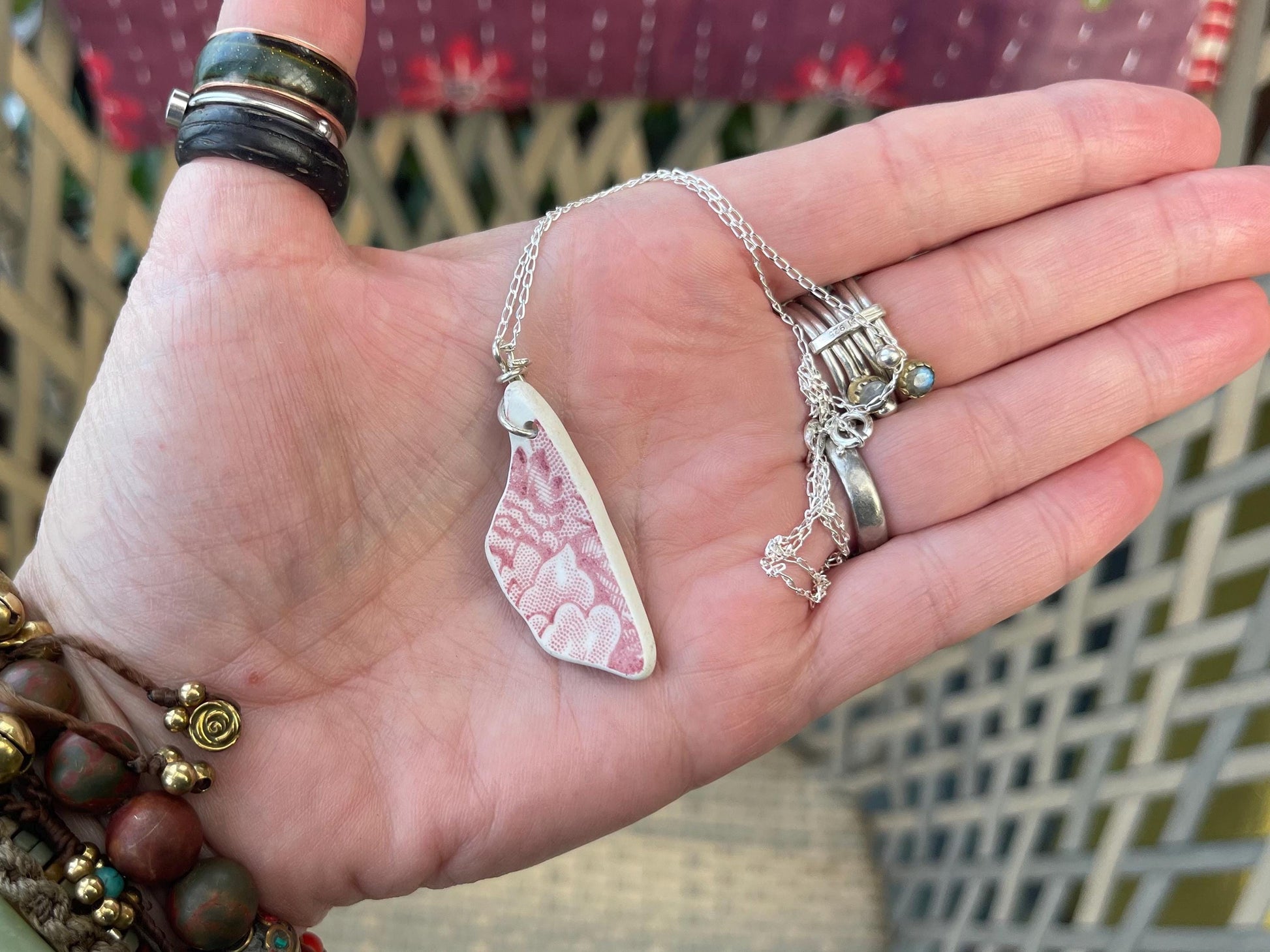 Beautiful recycled sea ceramic necklace. Washed up on the beach in Cornwall, drilled by me and made into something new :)