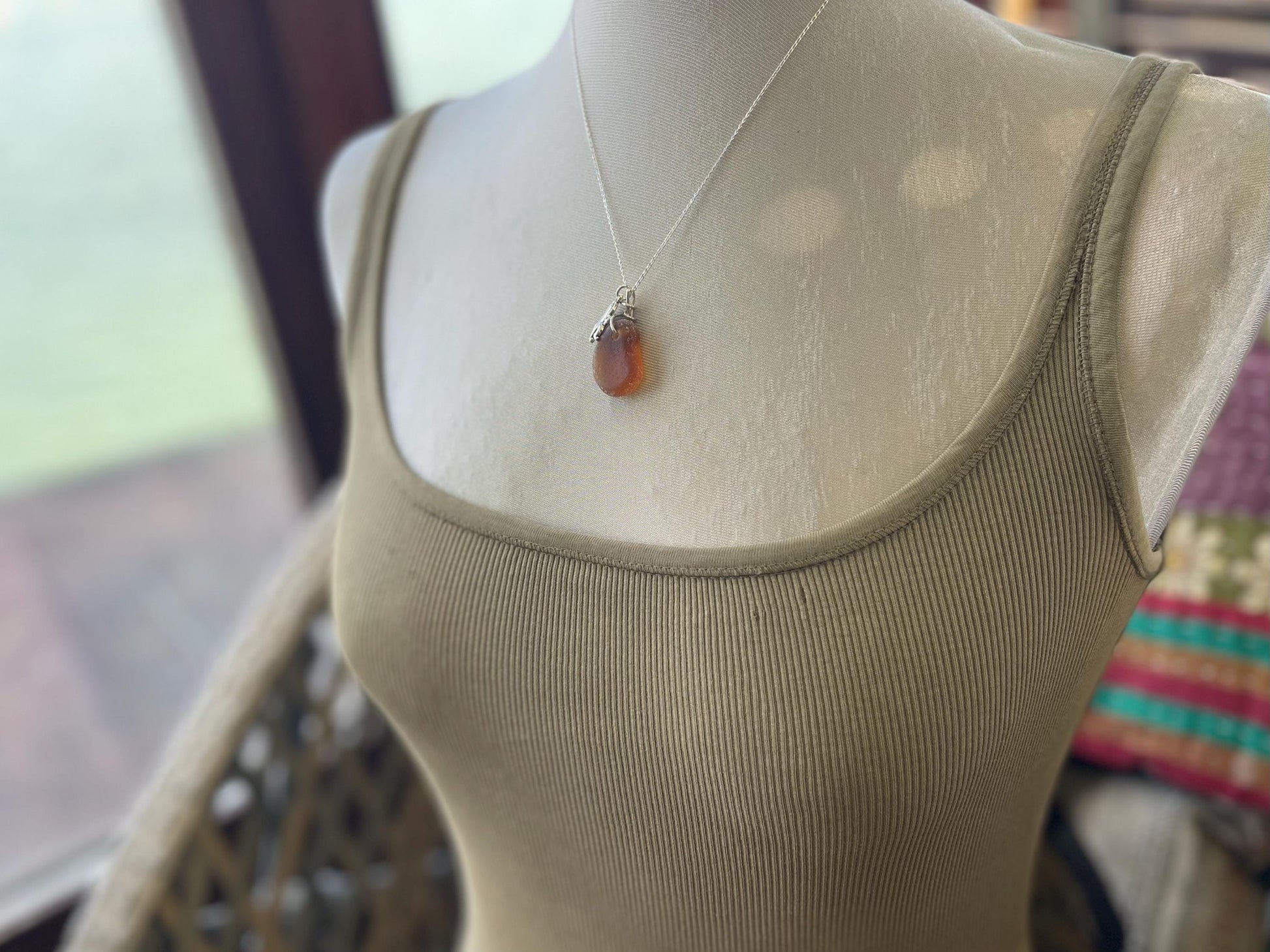 Beautiful recycled orange sea glass necklace. Washed up on the beach in Cornwall, drilled by me and made into something new :)