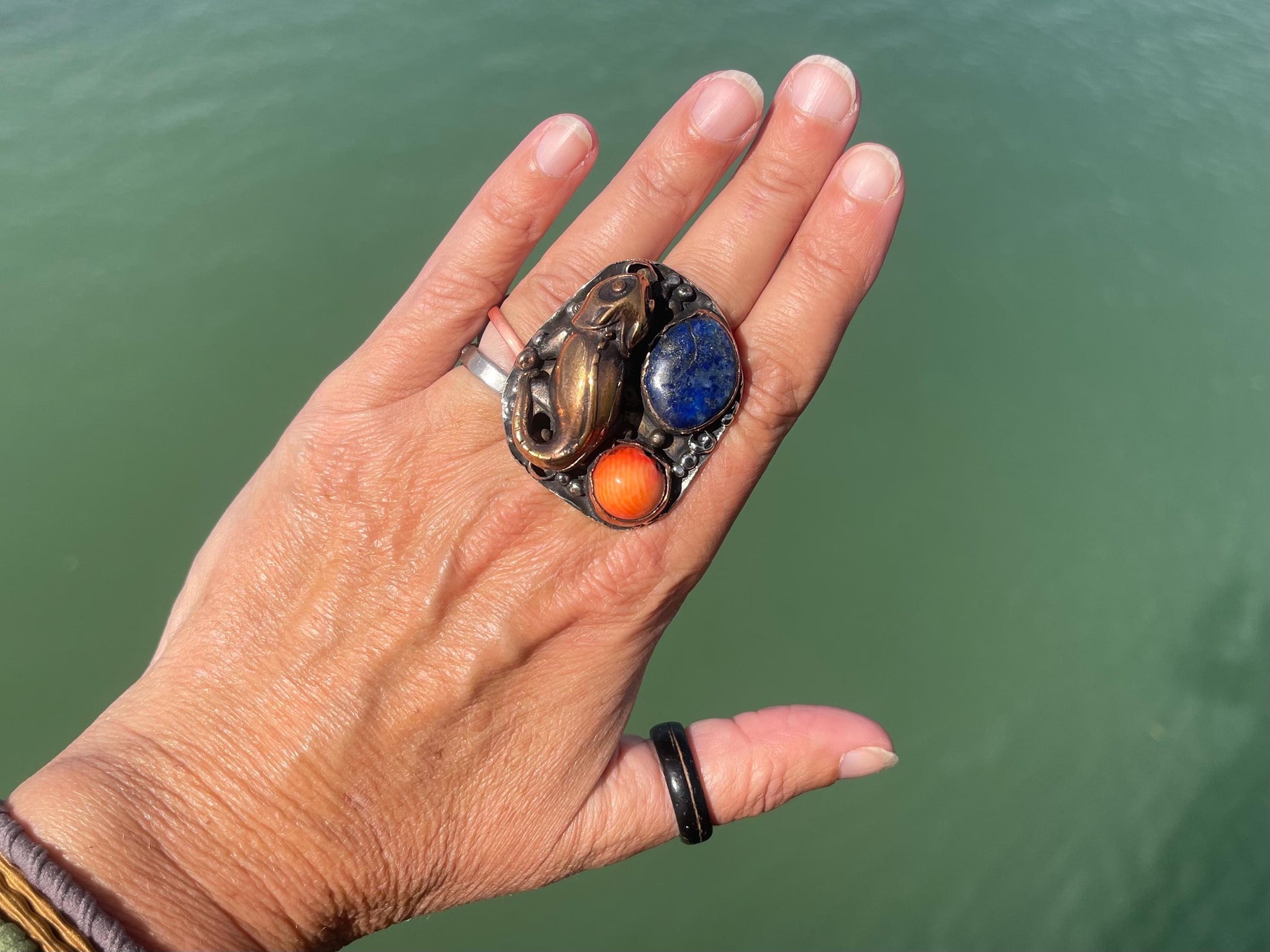 Fabulous vintage ghecko ring, lapis ring, boho vintage jewellery, ethical jewellery, gypsy ring. Gypsy jewellery, statement jewellery