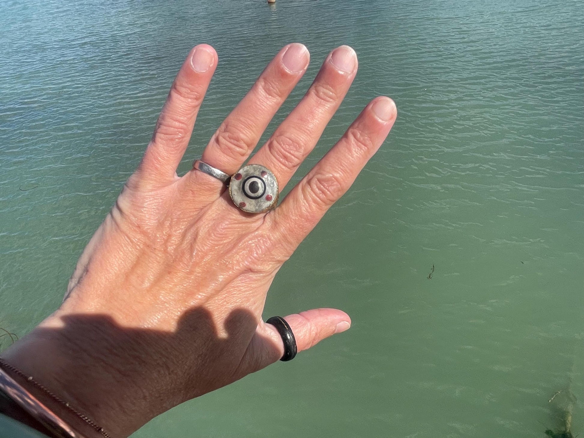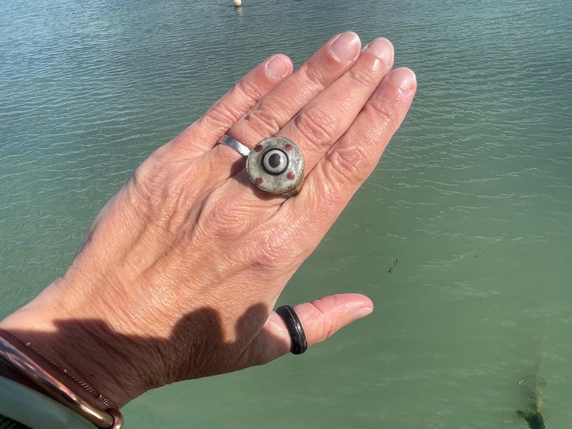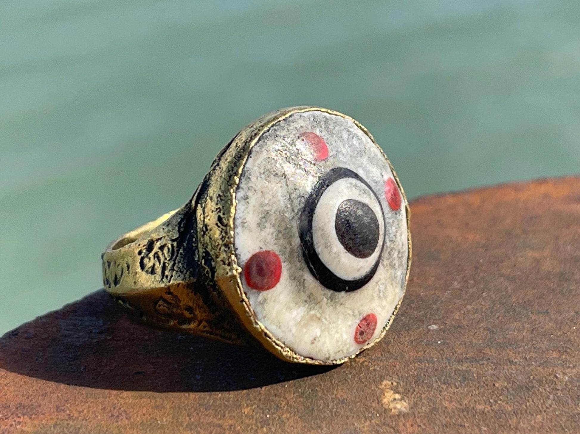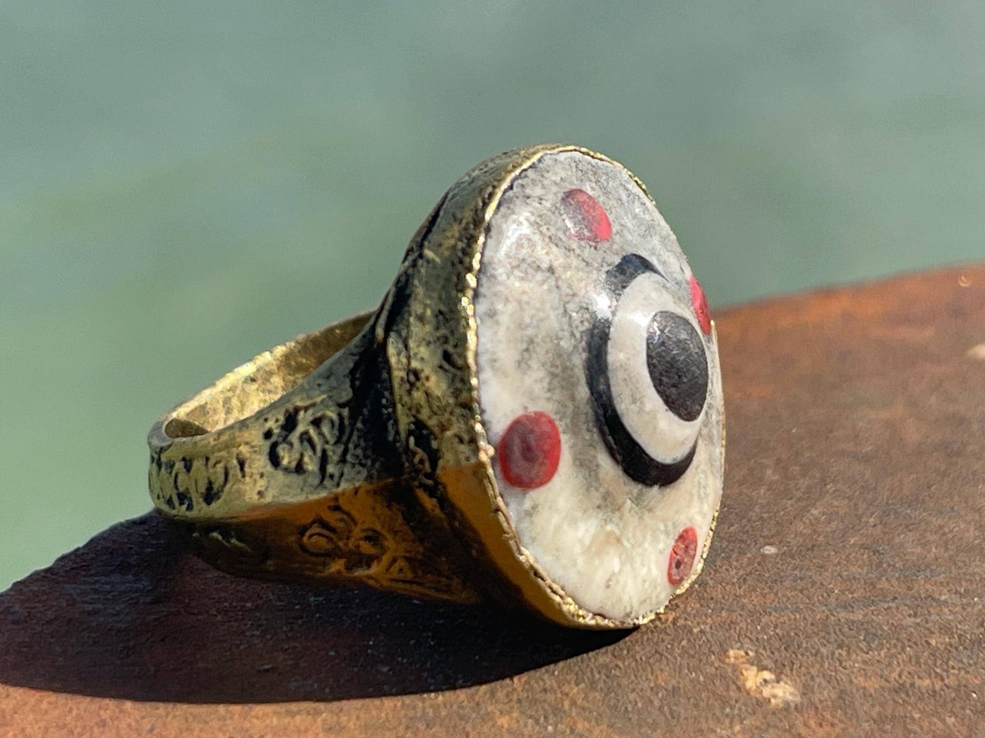 Fabulous vintage ring, large white ring, boho vintage jewellery, ethical jewellery, gypsy ring. Gypsy jewellery, statement jewellery