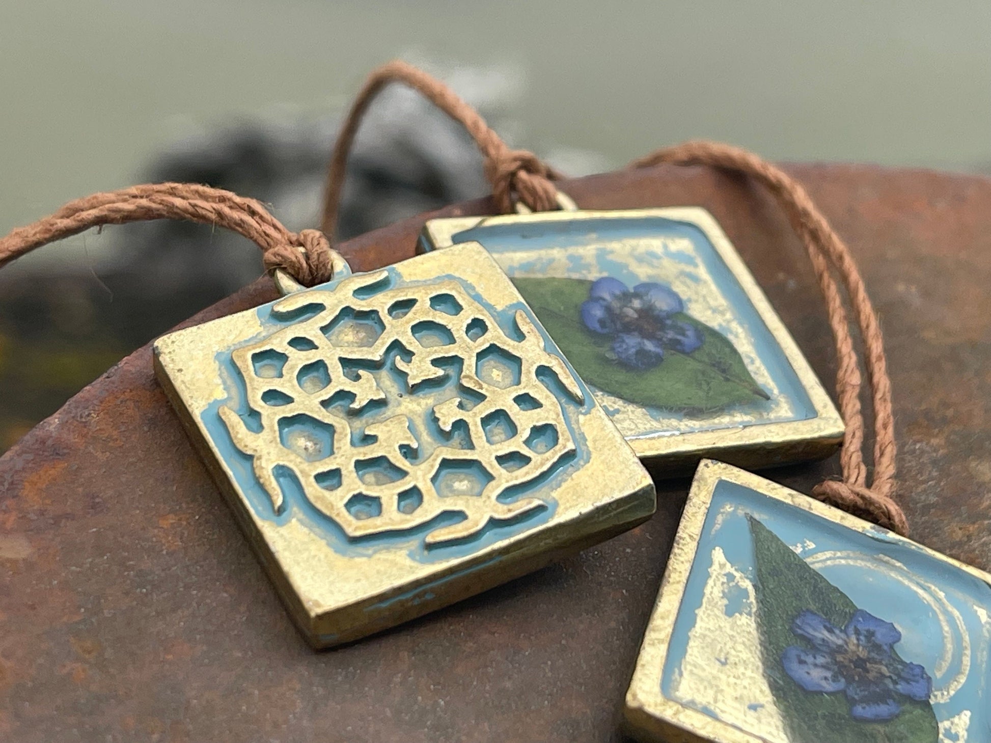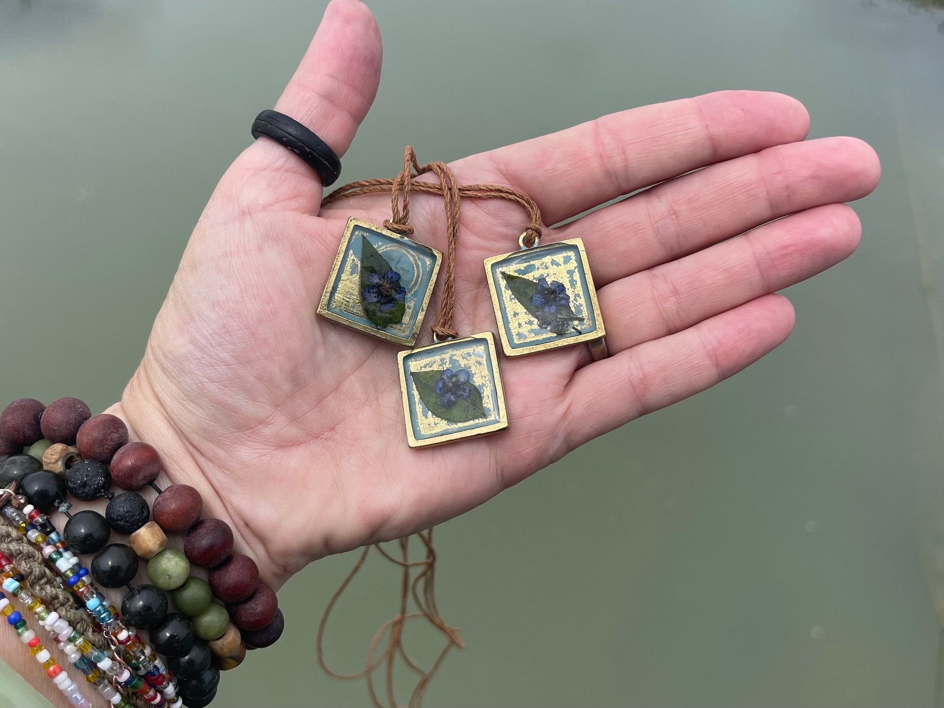 Green Alkanet necklace. Flower necklace, flower pendant, handmade jewellery, unique necklace, unique jewellery, boho necklace, gift for her