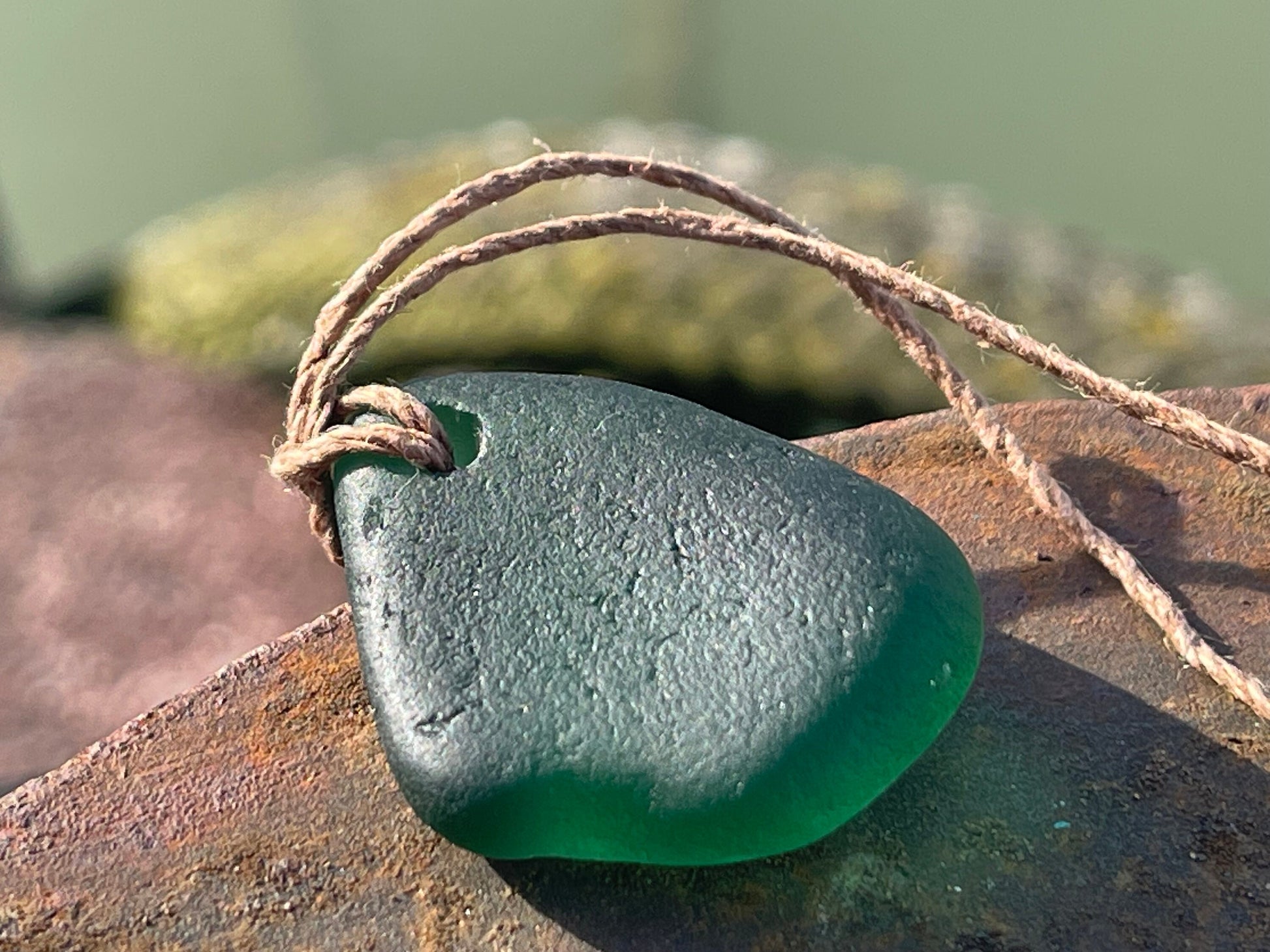 Green sea glass necklace. Recycled necklace, gift for him. Ethical jewellery. Sea glass pendant. Eco friendly necklace, boho surf jewellery