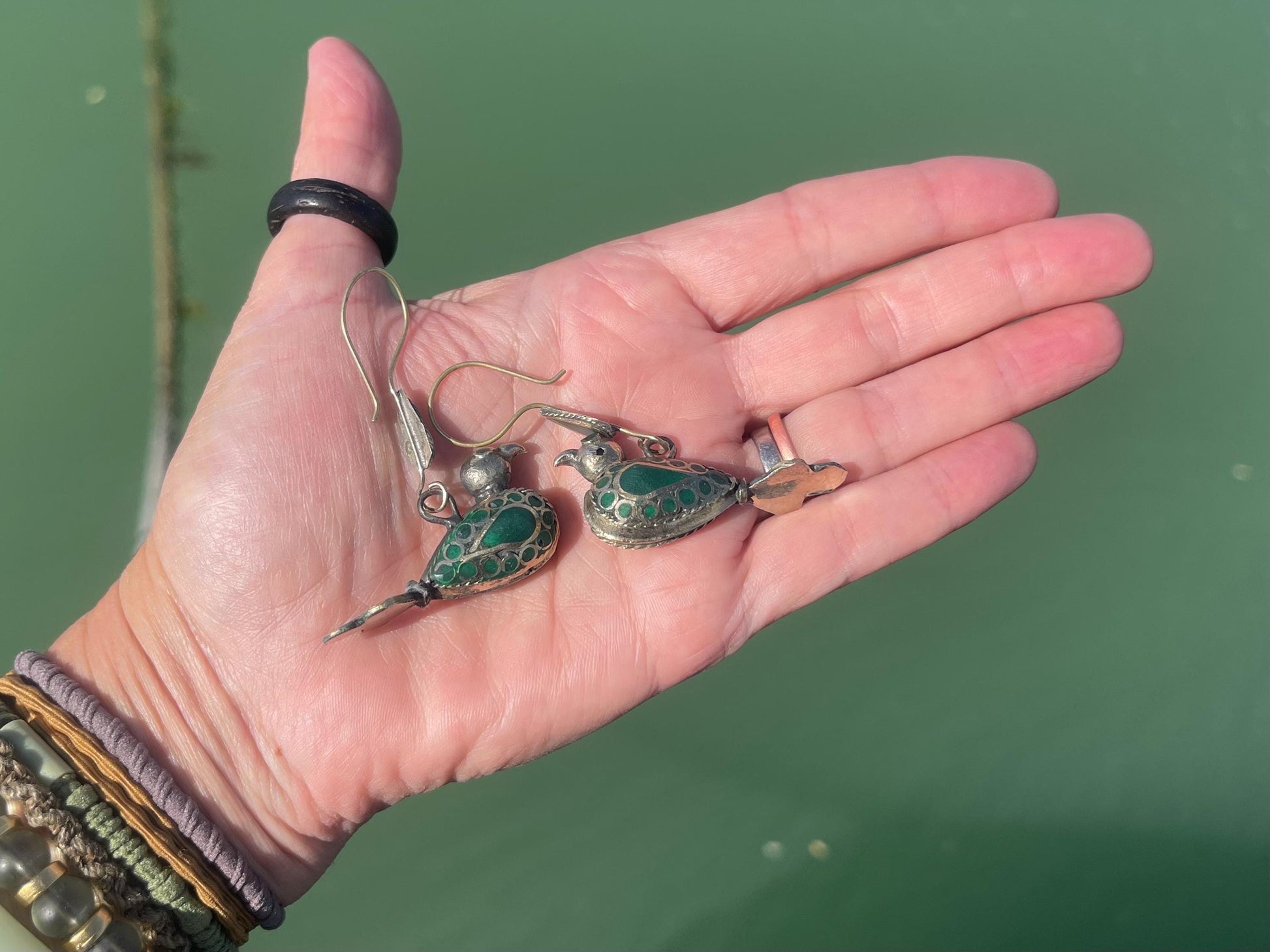 Gypsy jewellery, vintage bird earrings, silver bird earrings, vintage bird jewellery, ethical jewellery, gypsy earrings, unusual gift ideas