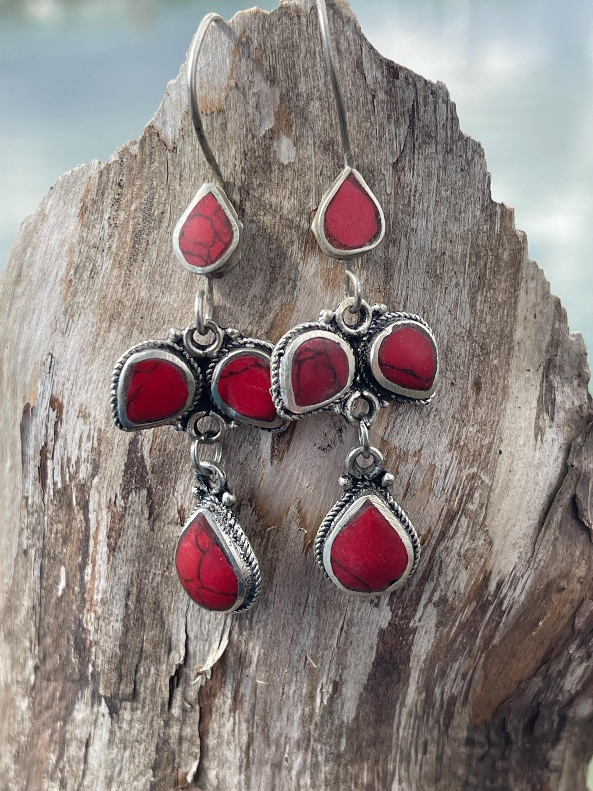 Gypsy jewellery, vintage teardrop earrings, red jewellery, ethical jewellery, gypsy earrings, romantic gifts, eco friendly jewellery