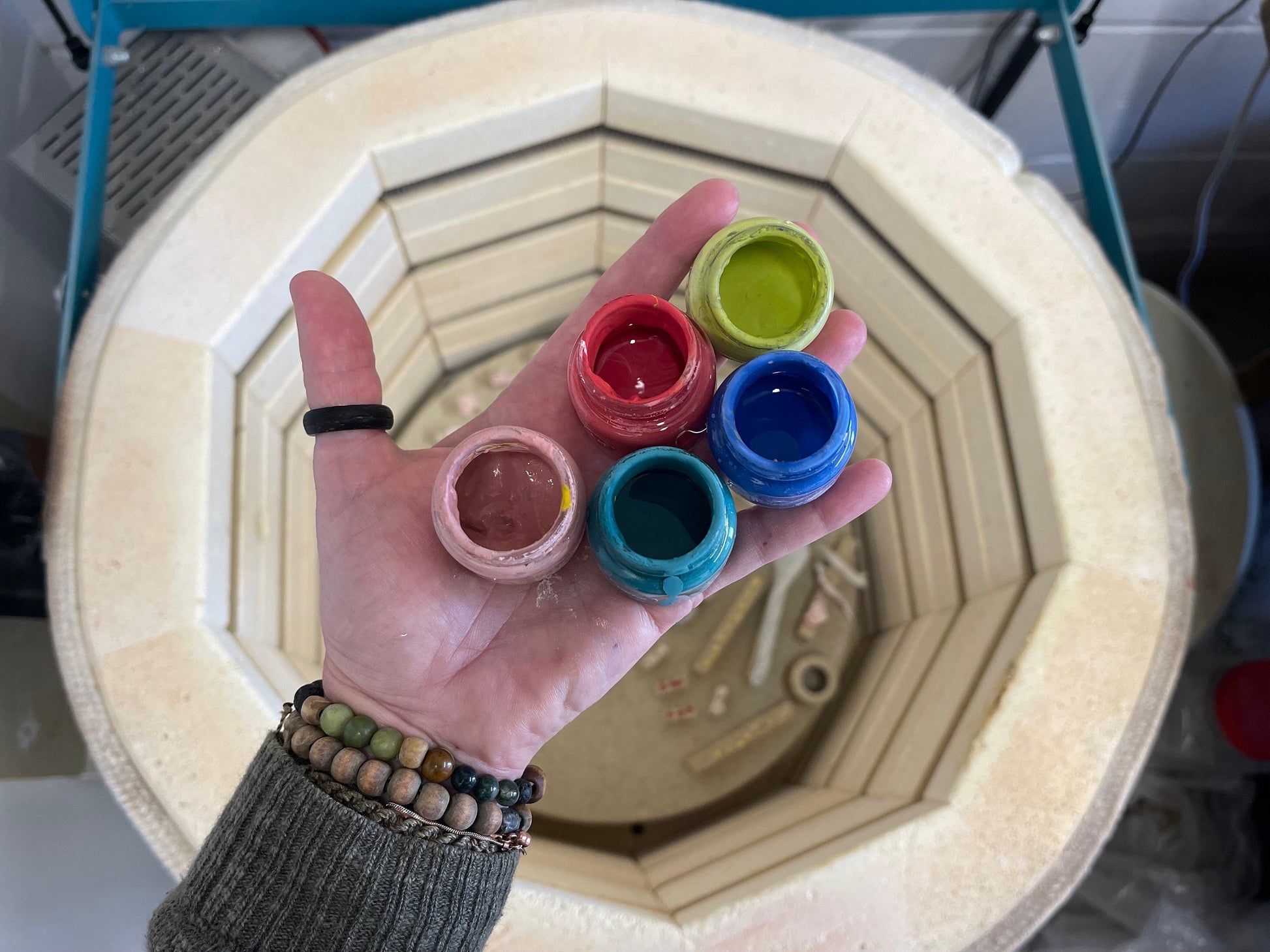 The paints used are all second hand and I fire the clay only when there is spare space in a colleagues kiln (thanks to the Crafty Potter!!).