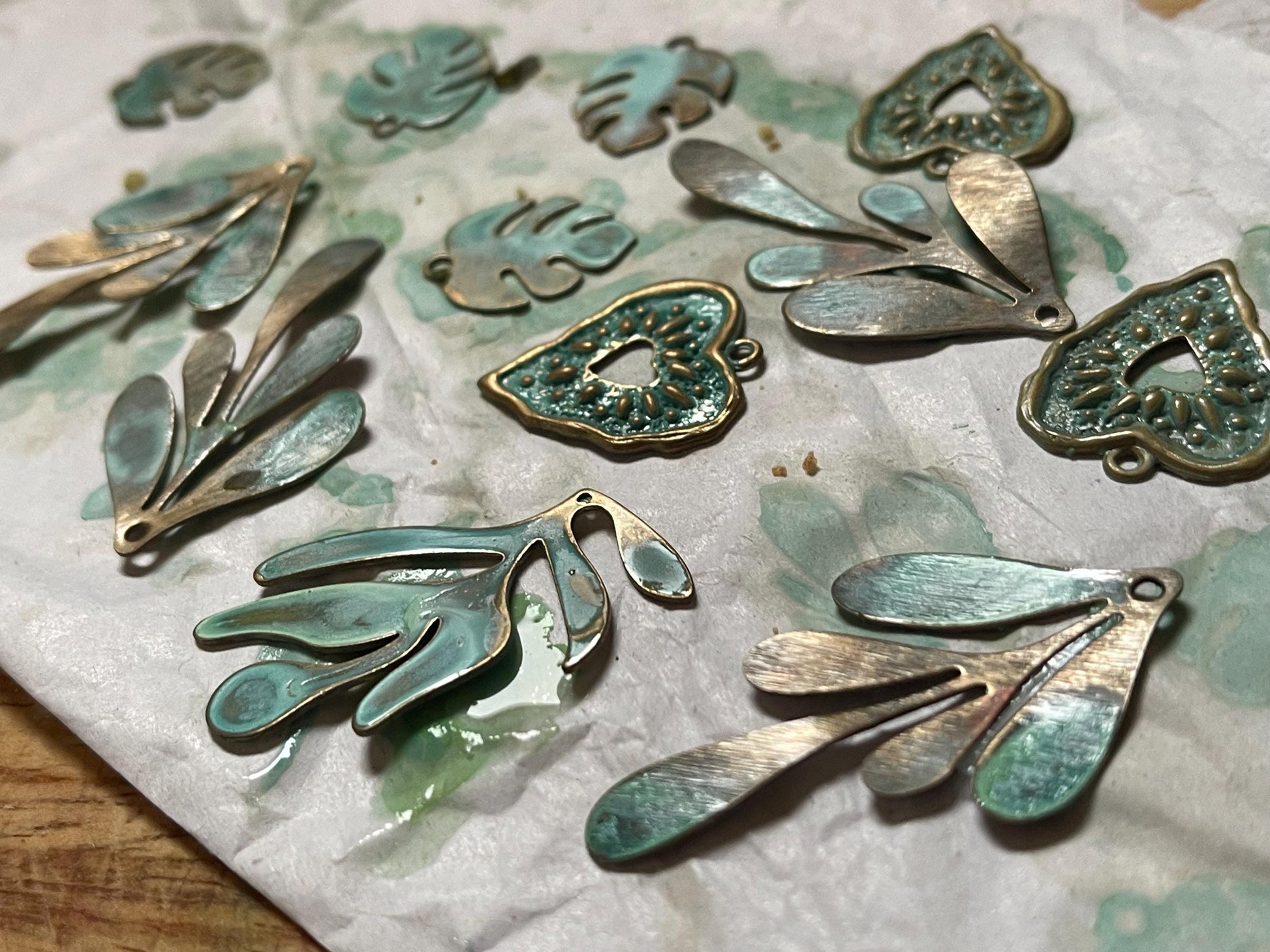 Handmade patina earrings. Rustic earrings, unusual earrings, unusual gift for her, blue earrings, boho earrings, large statement earrings.