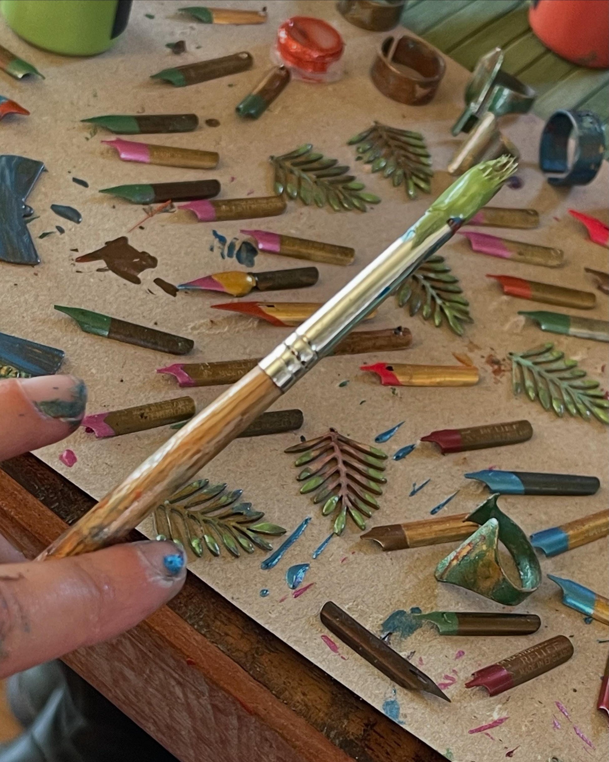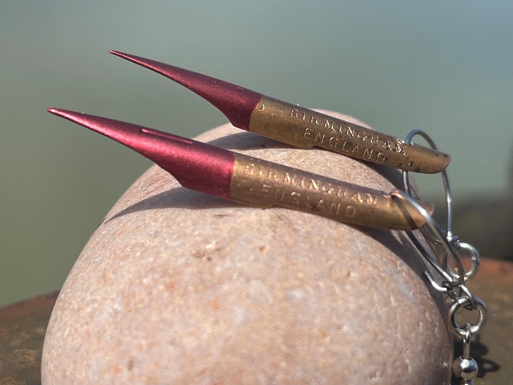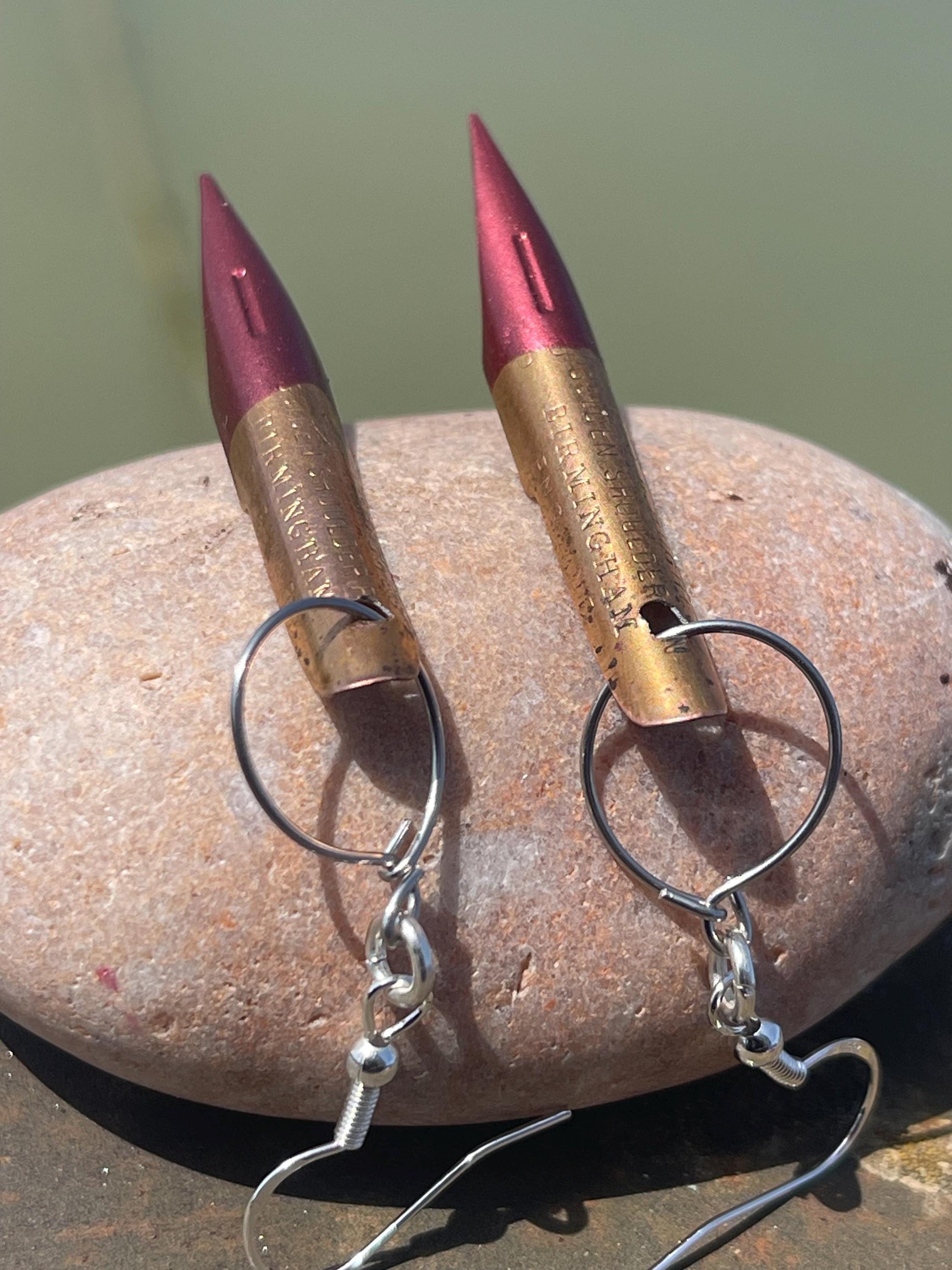These earrings are made from old pen nibs which I have painted and hung on recycled sterling silver.