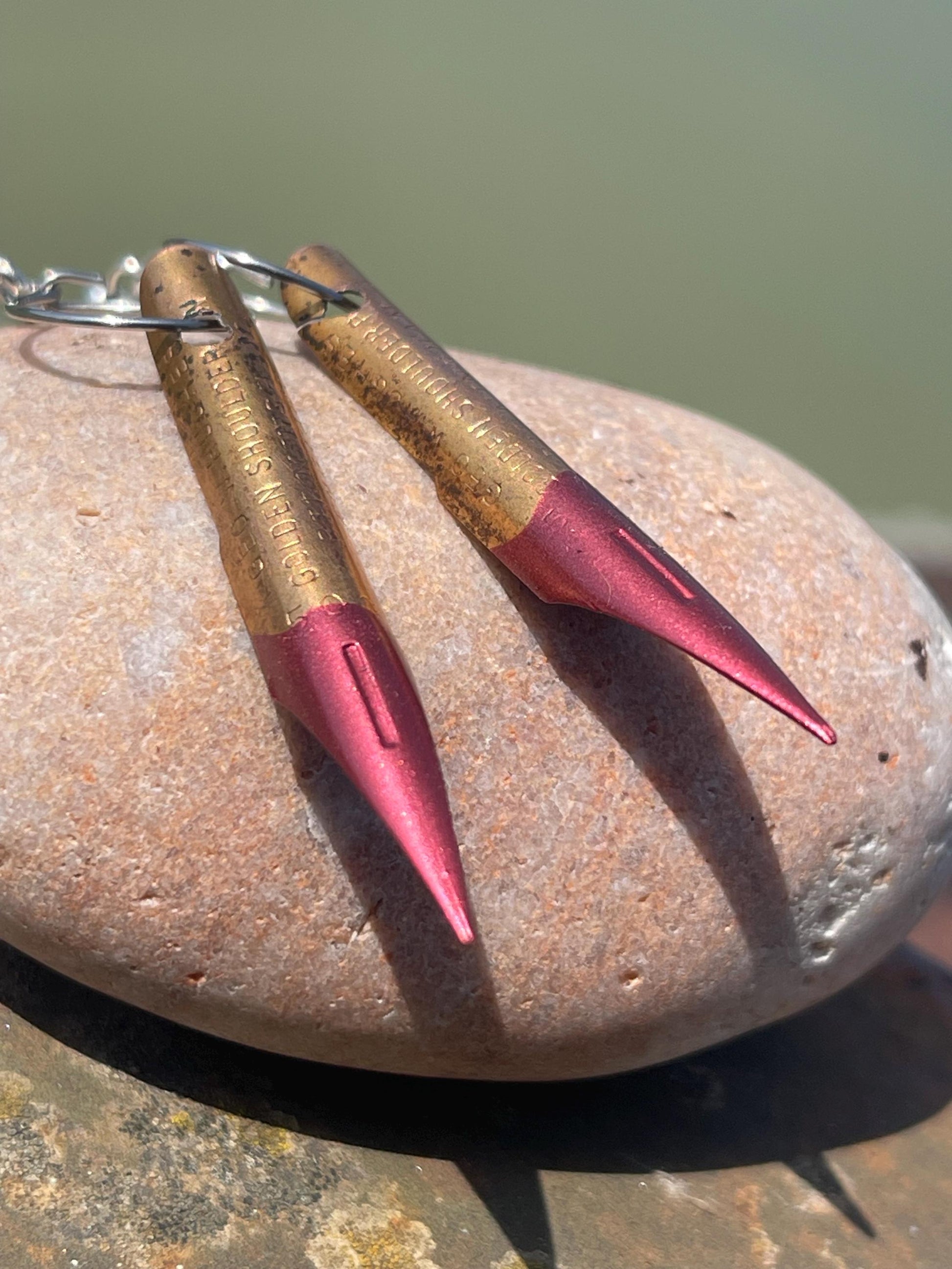 Pen nib earrings. Gift for a writer. Gift for a poet. Gift for book lover. Recycled jewellery. Eco friendly jewellery. Ethical jewellery.
