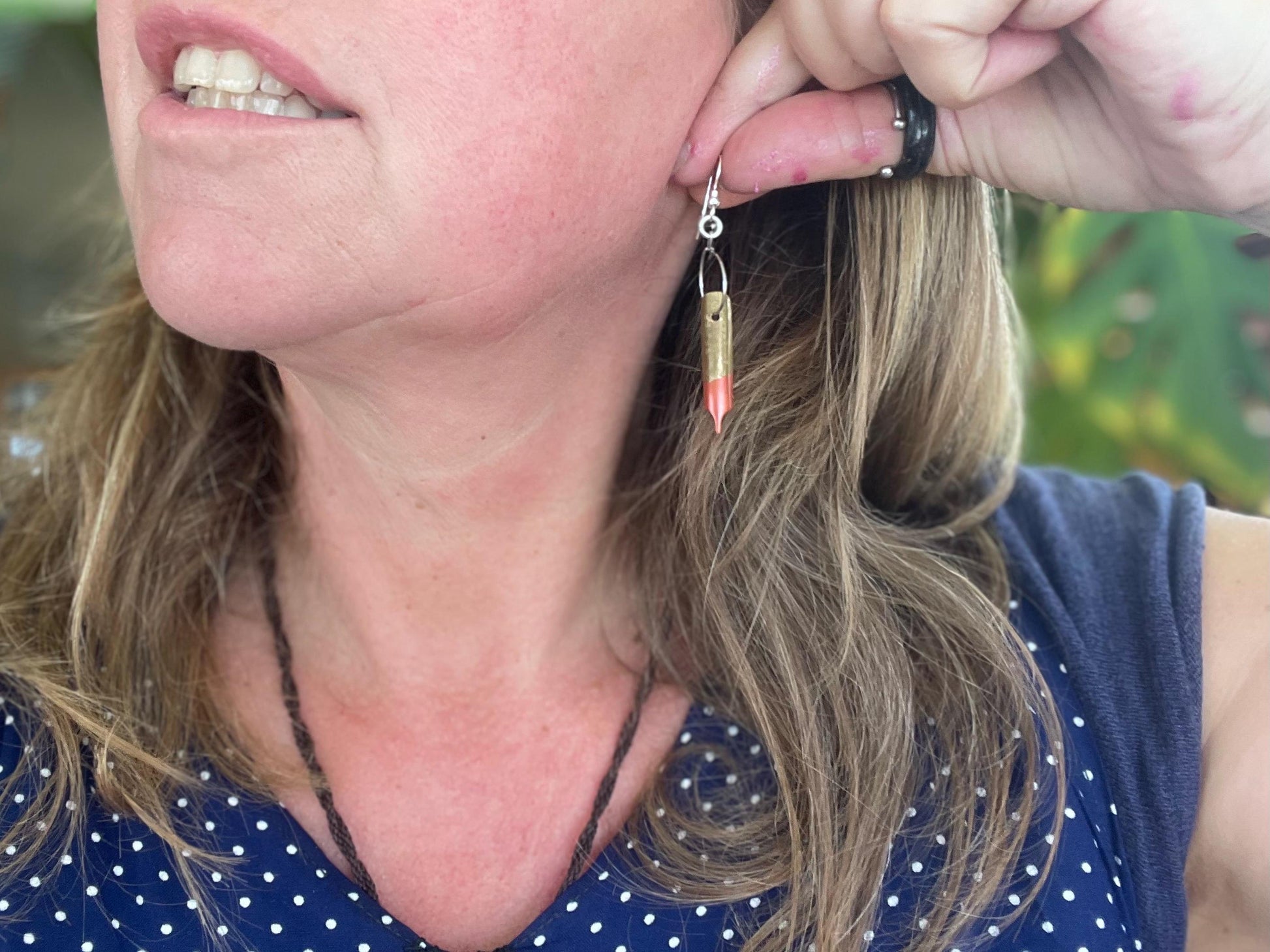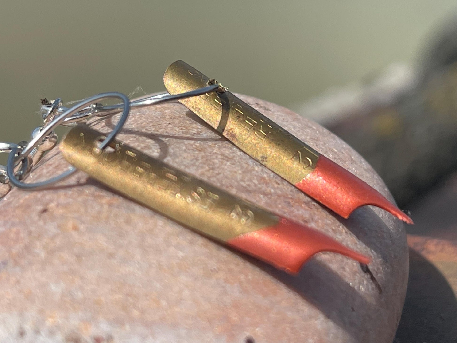 These earrings are made from old pen nibs which I have painted and hung on recycled sterling silver.