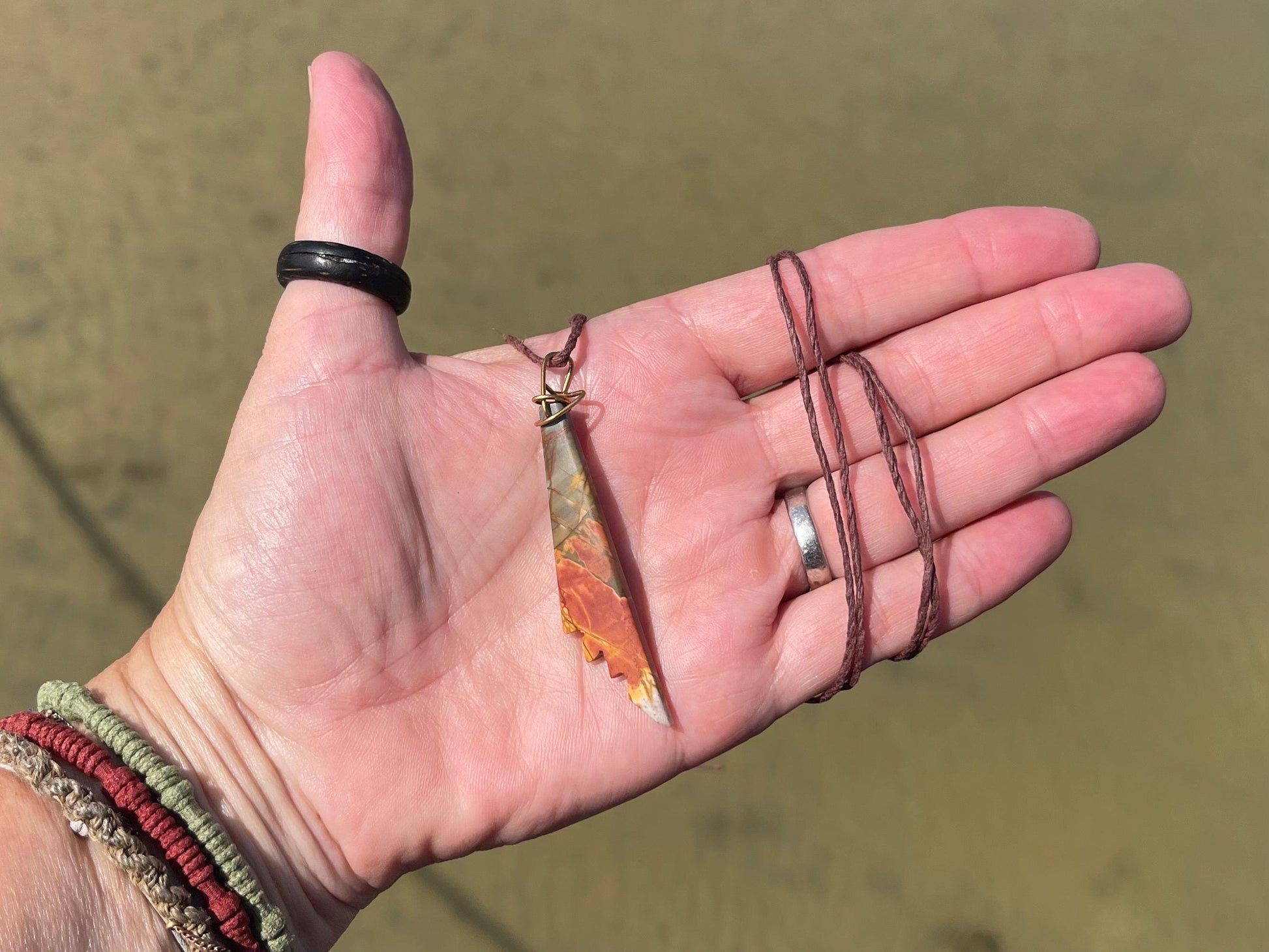 Picasso jasper gemstone pendnat. Ethical jewellery, orange gemstone necklace. Stunning unique jewellery. Unique gifts. Unique necklaces.