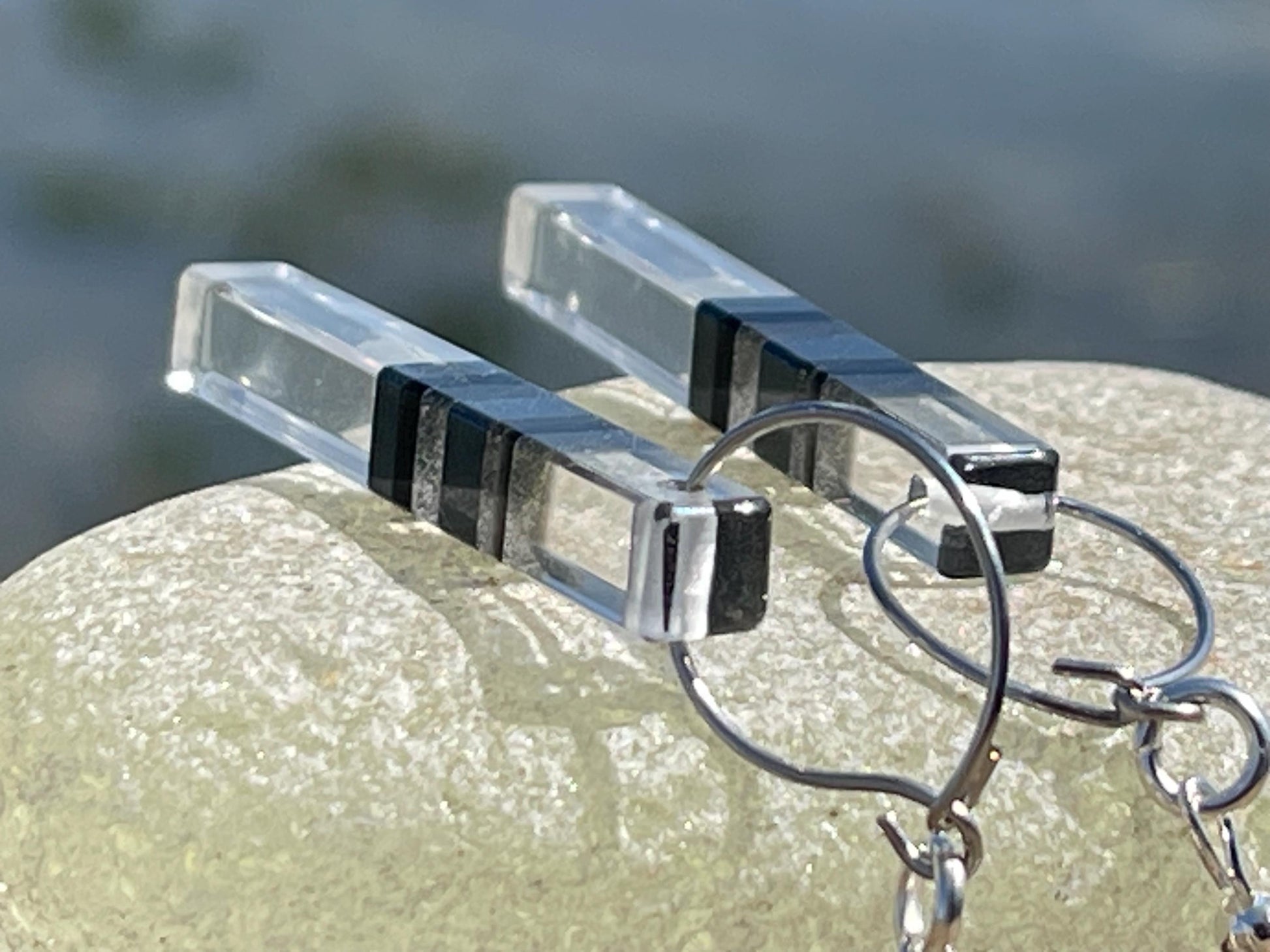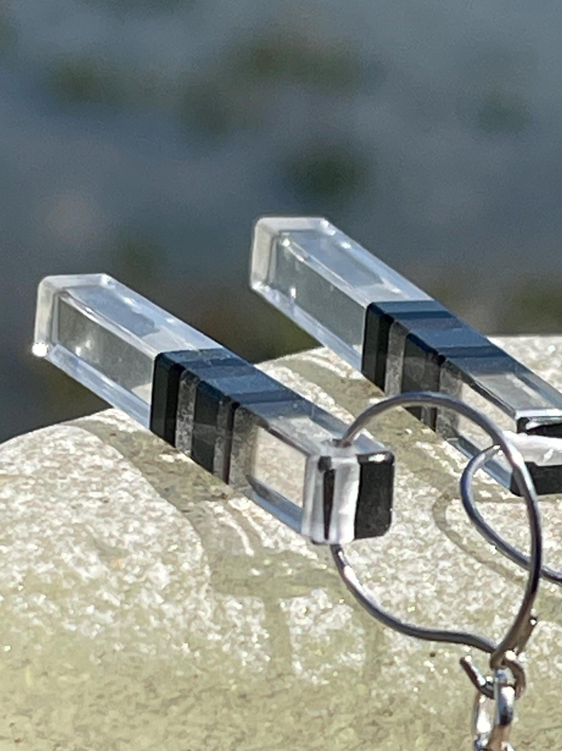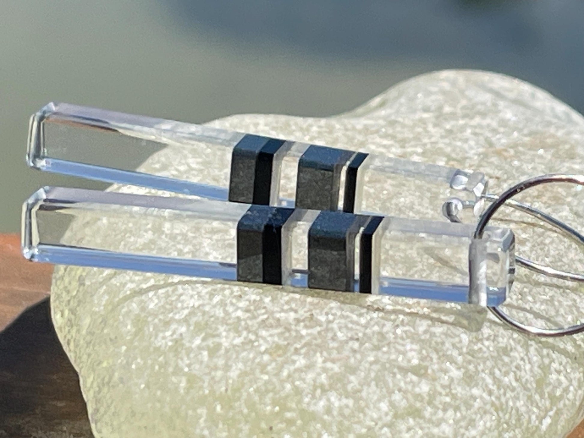 White Quartz, Hematite and Obsidian Gemstone Earrings.