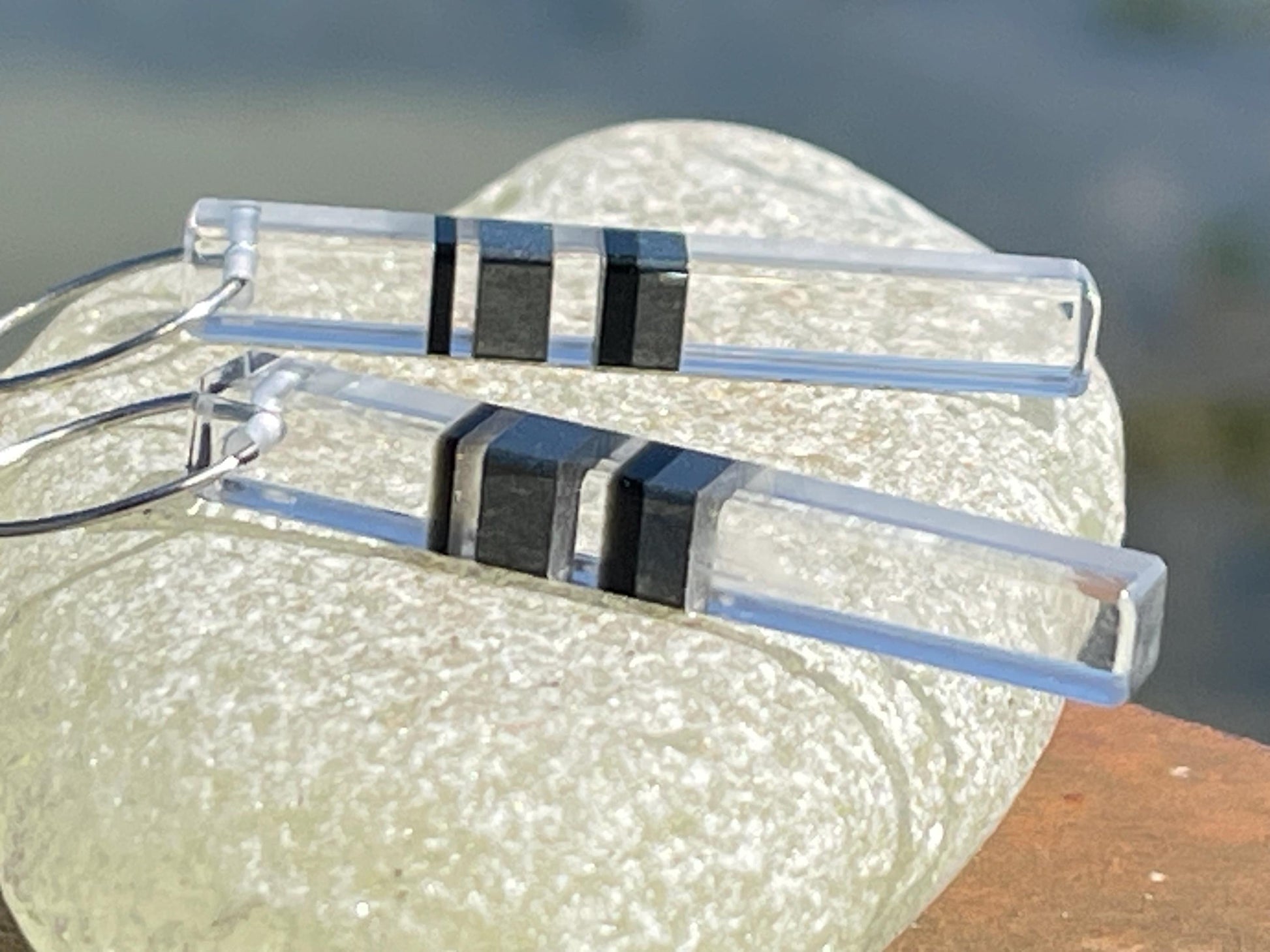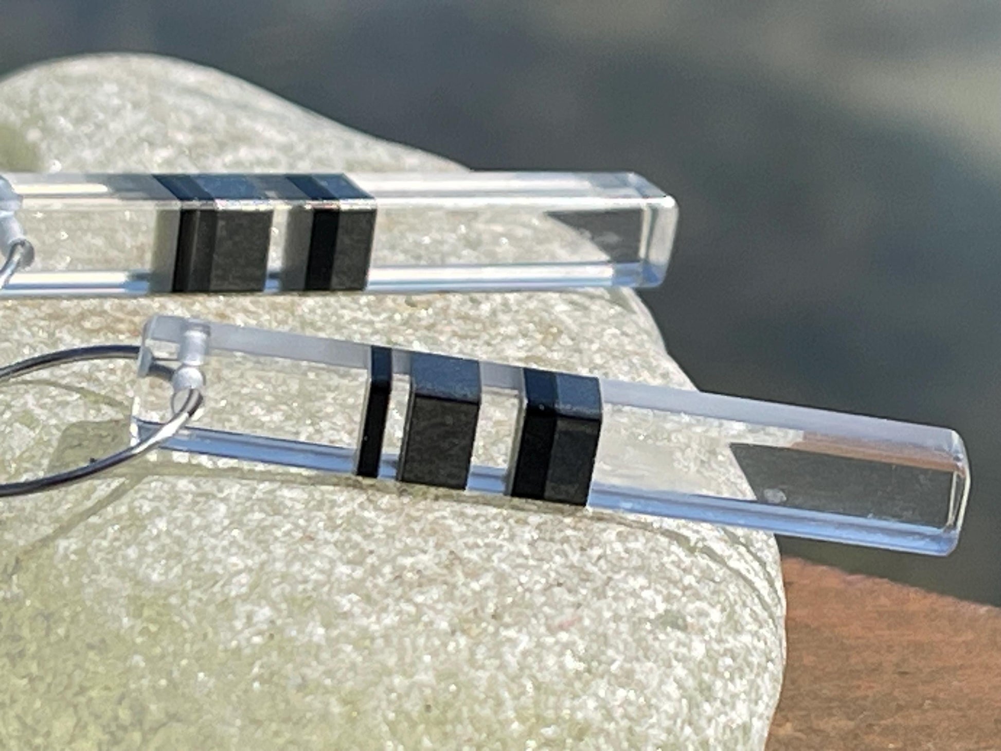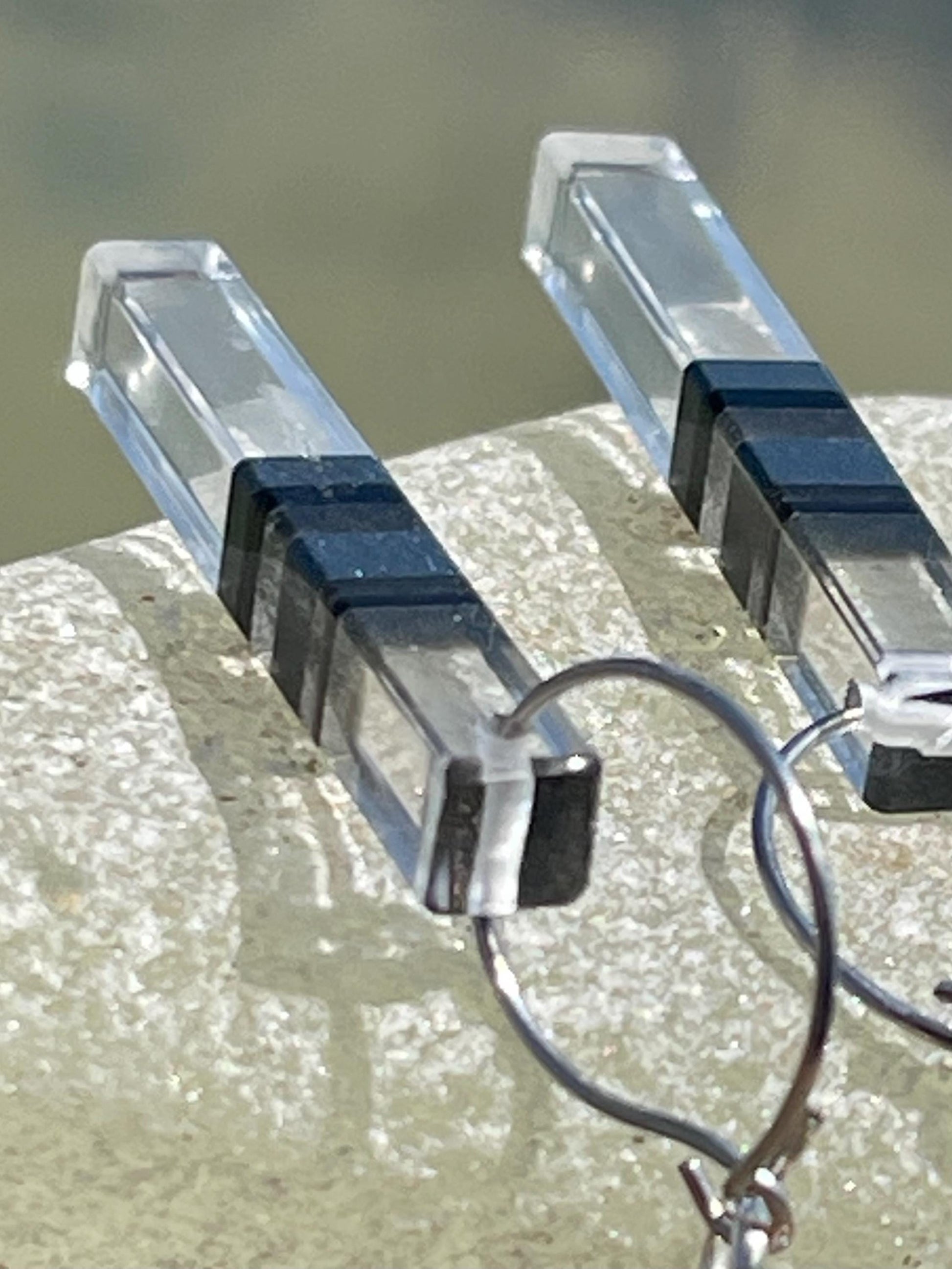 White Quartz, Hematite and Obsidian Gemstone Earrings.