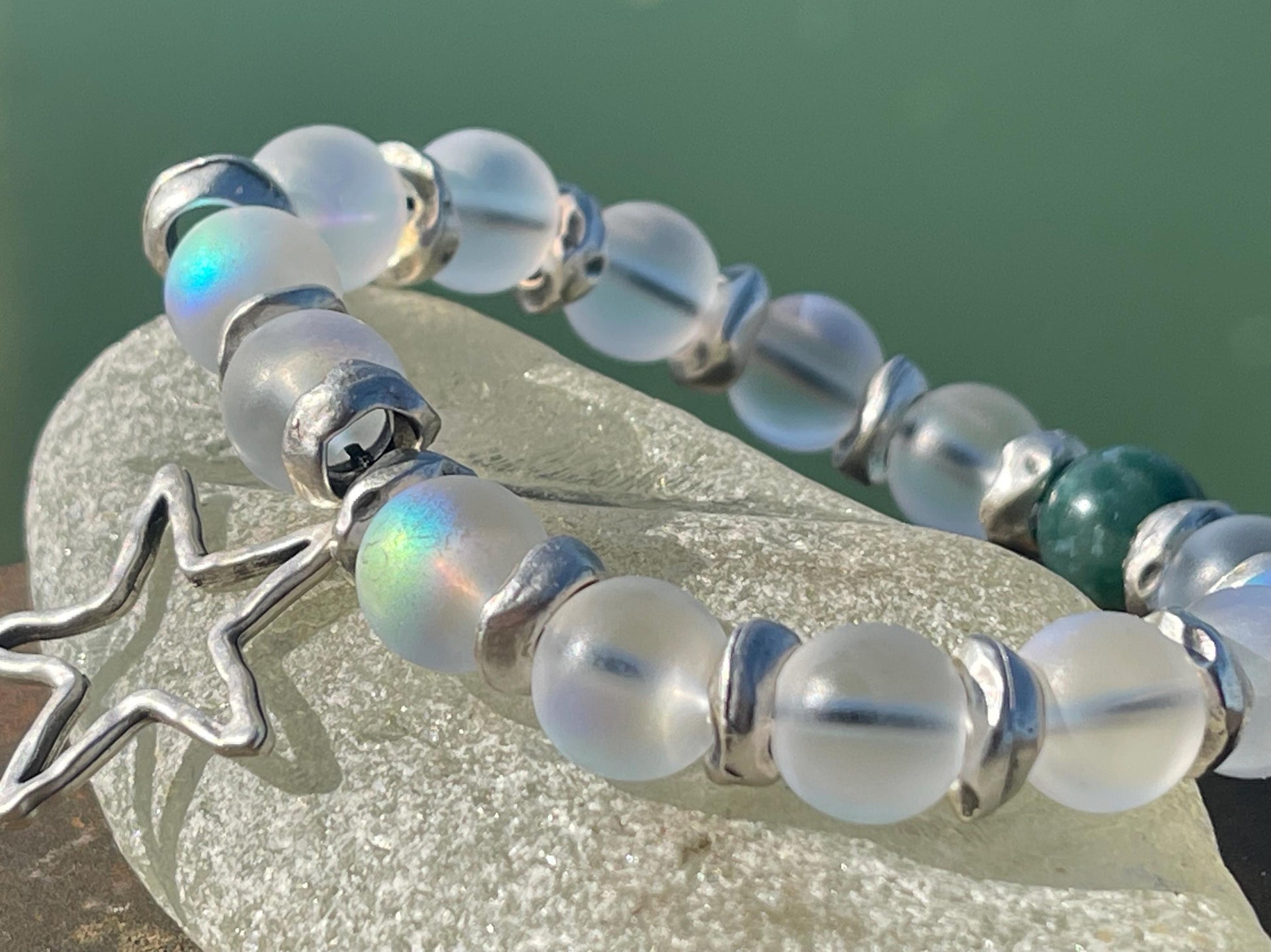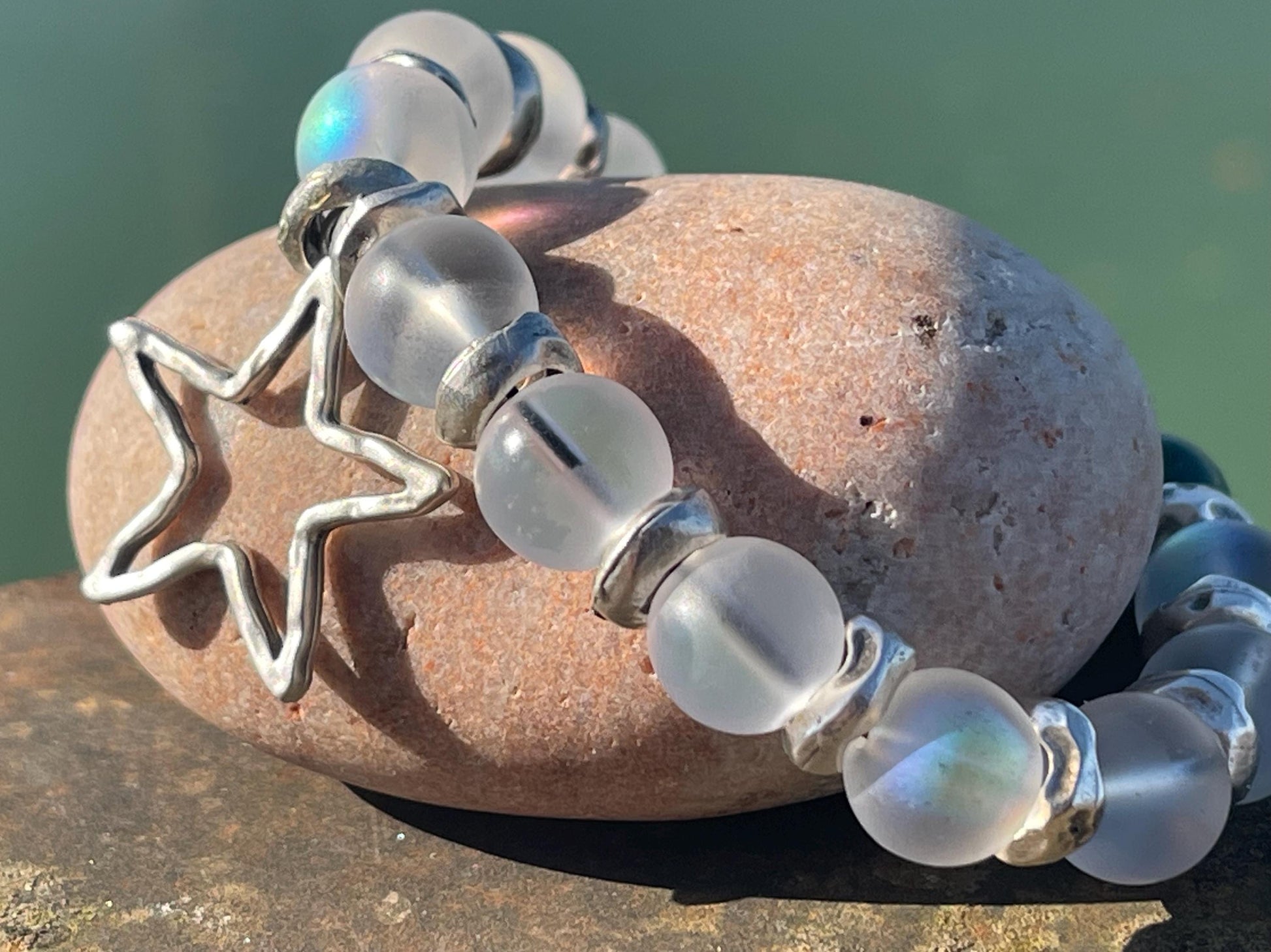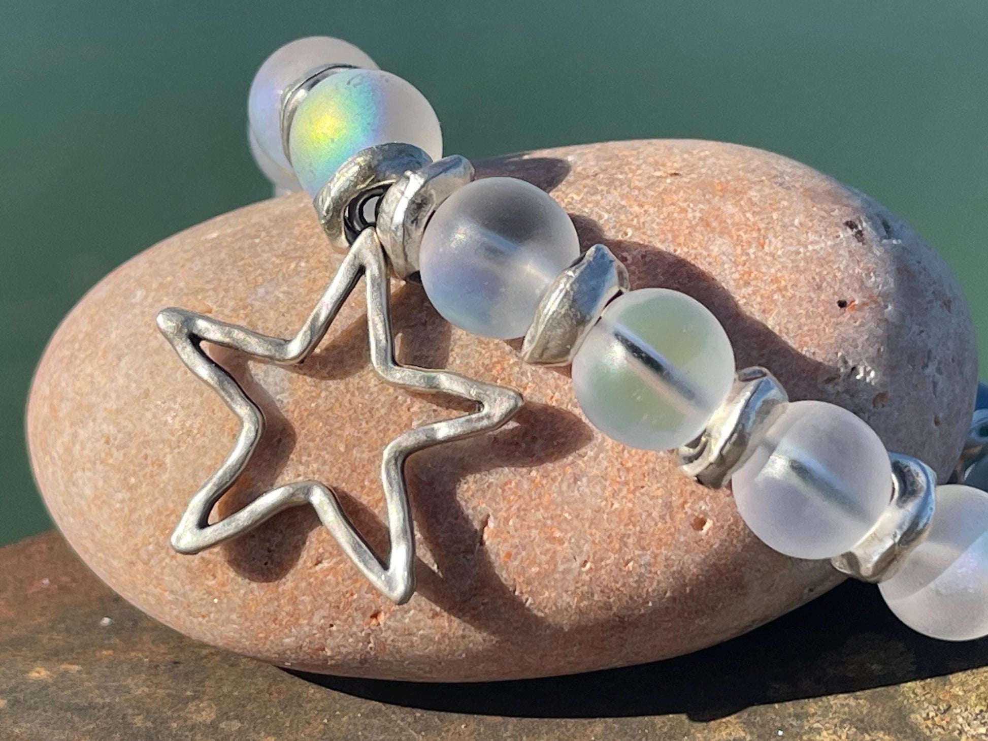 Rainbow bracelet, Christmas bracelet, beaded shimmery bracelet, star bracelet, handmade bracelet, glass bracelet, congratulations gift.