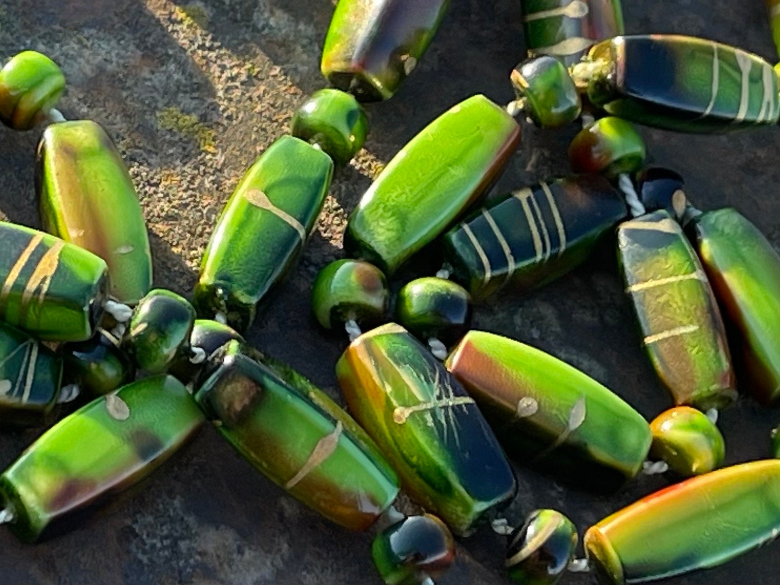 Ideal for people who (like me) keep losing their glasses! They are threaded on thick cotton and held on adjustable rubber tags.