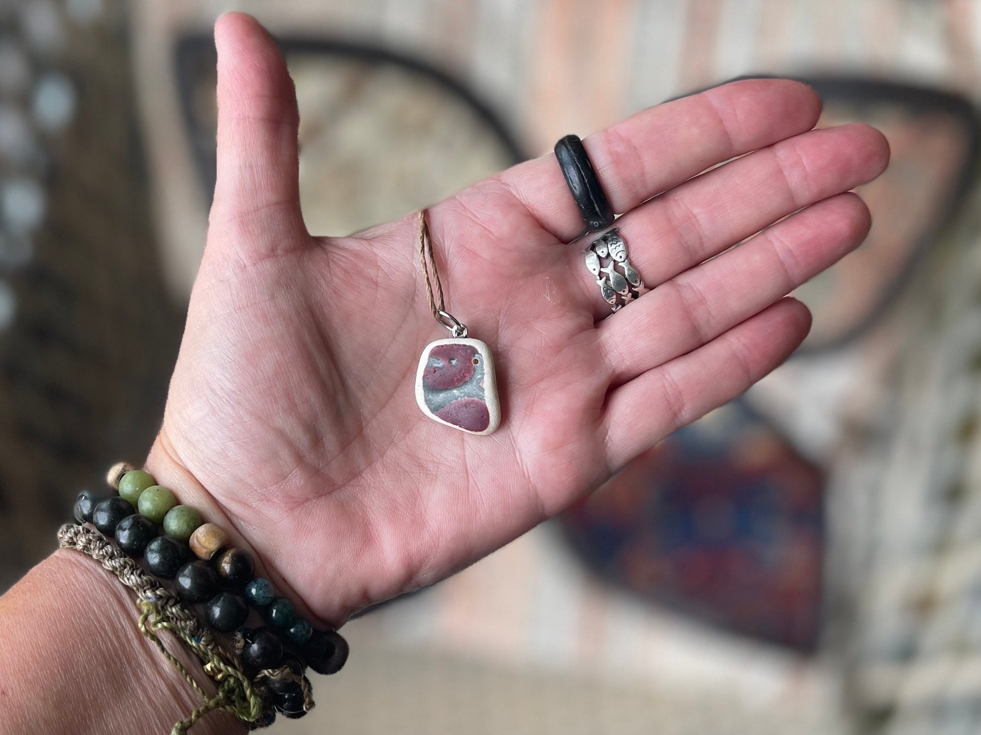Recycled necklace, beach pottery necklace, eco friendly gift for her. Necklace for a man, boho gift for him. Ethical jewellery, boho pendant