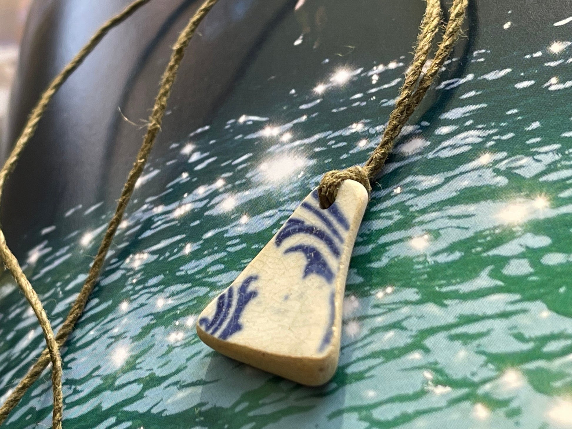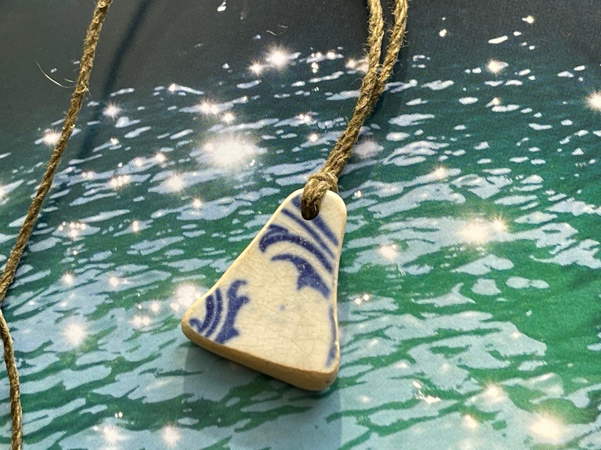 Recycled necklace, sea pottery necklace, eco friendly gift for her. Handmade necklace, boho gift for ocean lover. Ethical gift for a man