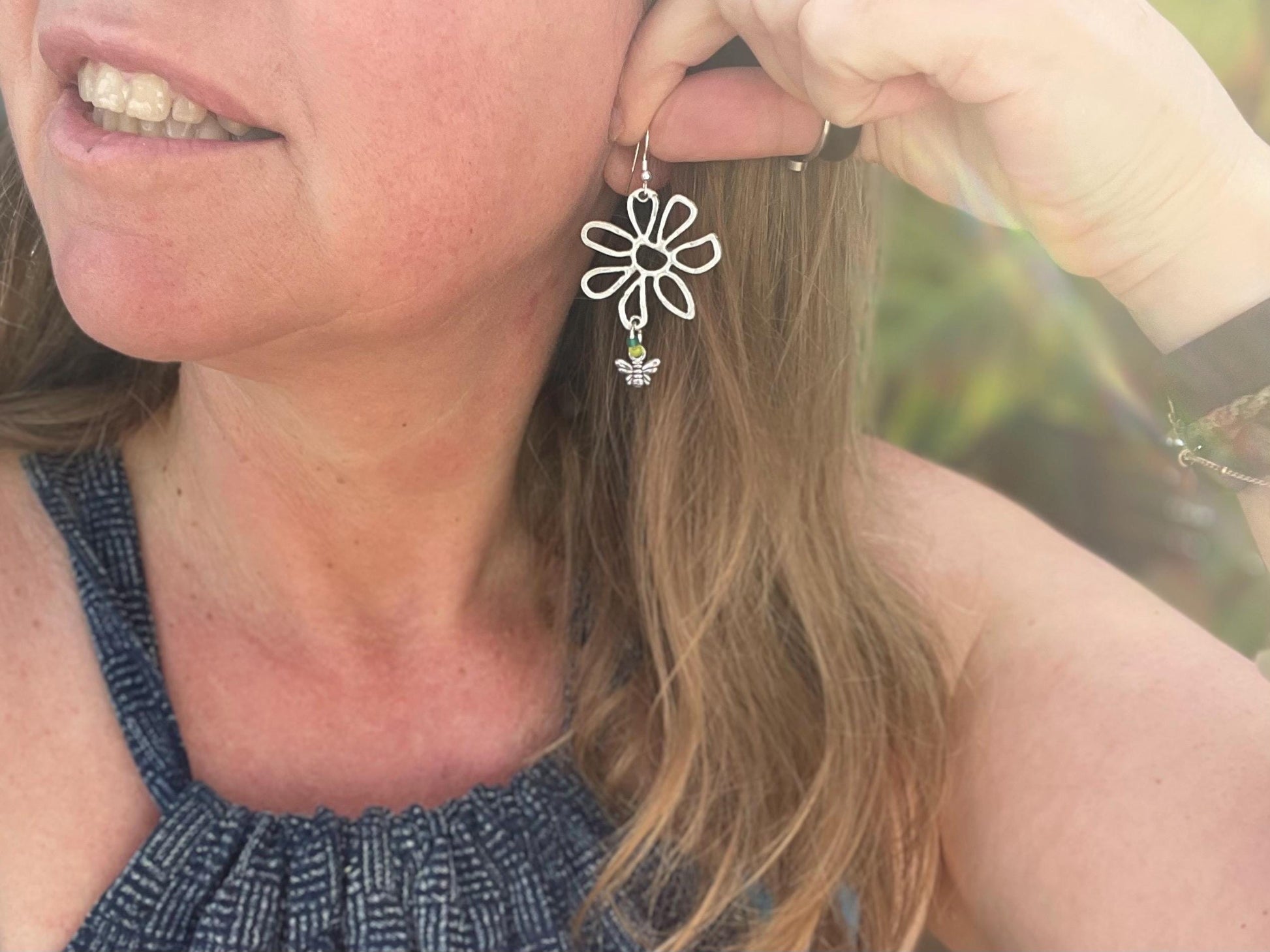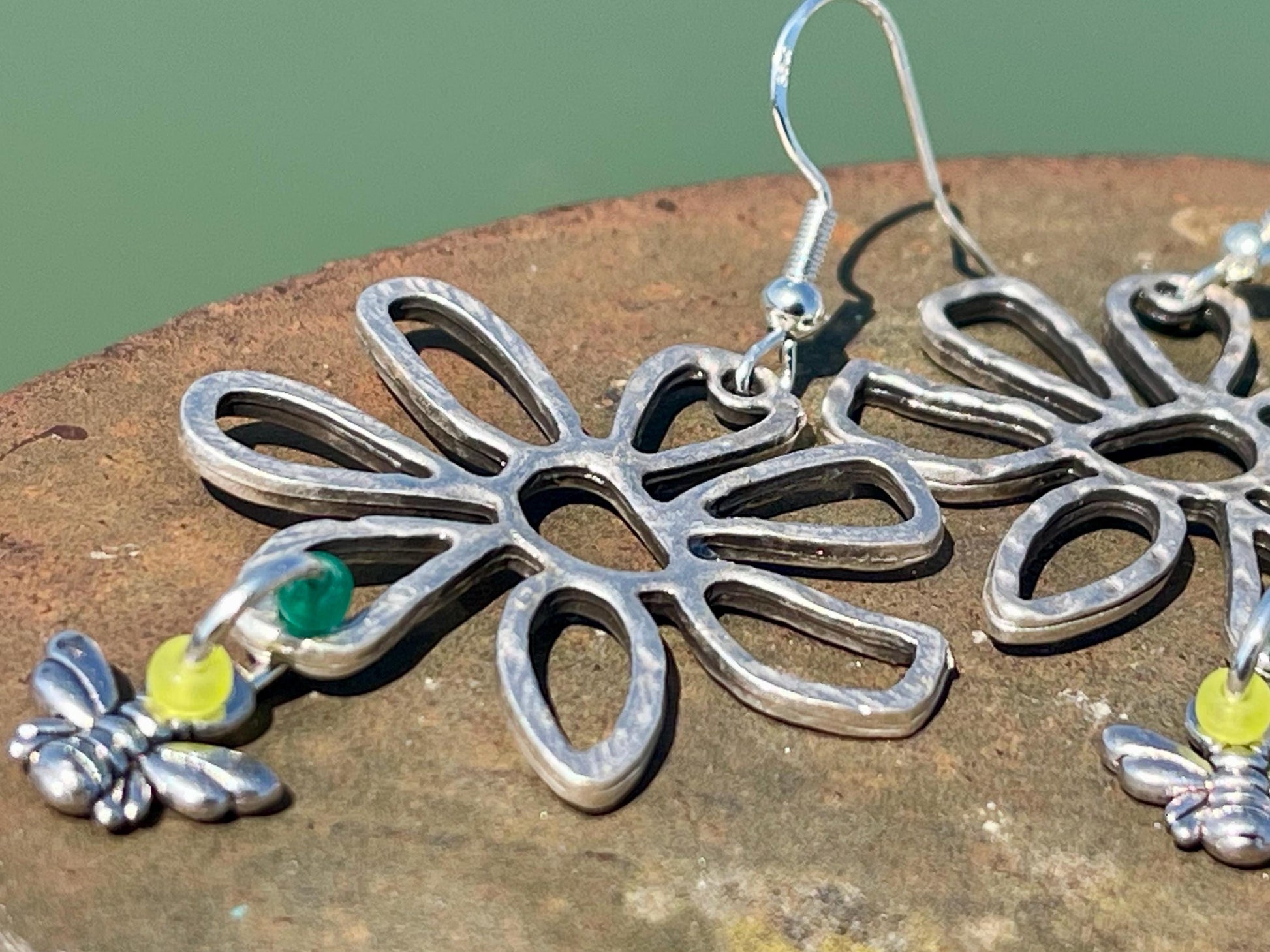 Flower and bee earrings.