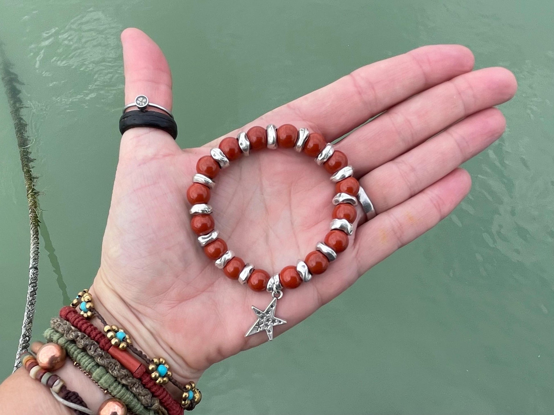 Red jasper bracelet, red jewellery, boho bracelet, Hippy bracelet, gift for her, red bracelet, handmade bracelet, Christmas star bracelet